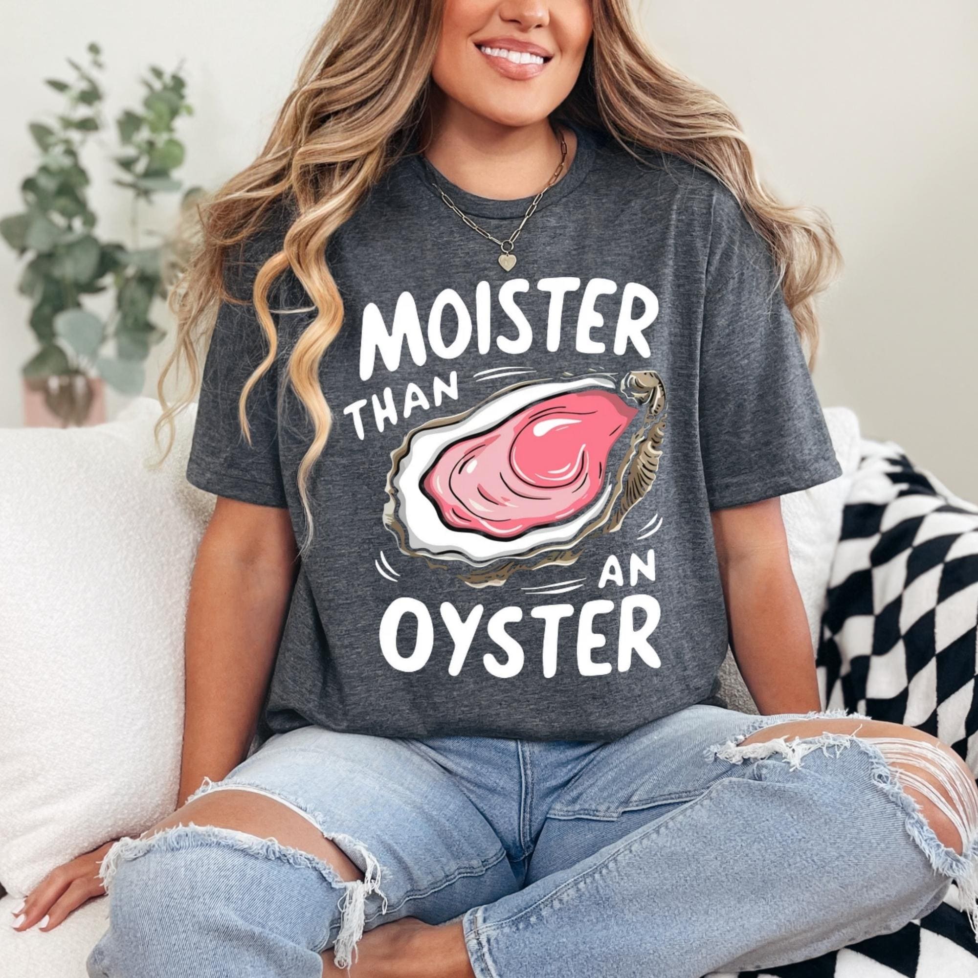 Moister Than An Oyster Shirt, Retro Funny Graphic Tee, Unique Humor T-Shirt, Personalized Gift, Trendy Casual Wear, Fun Apparel Tshirt