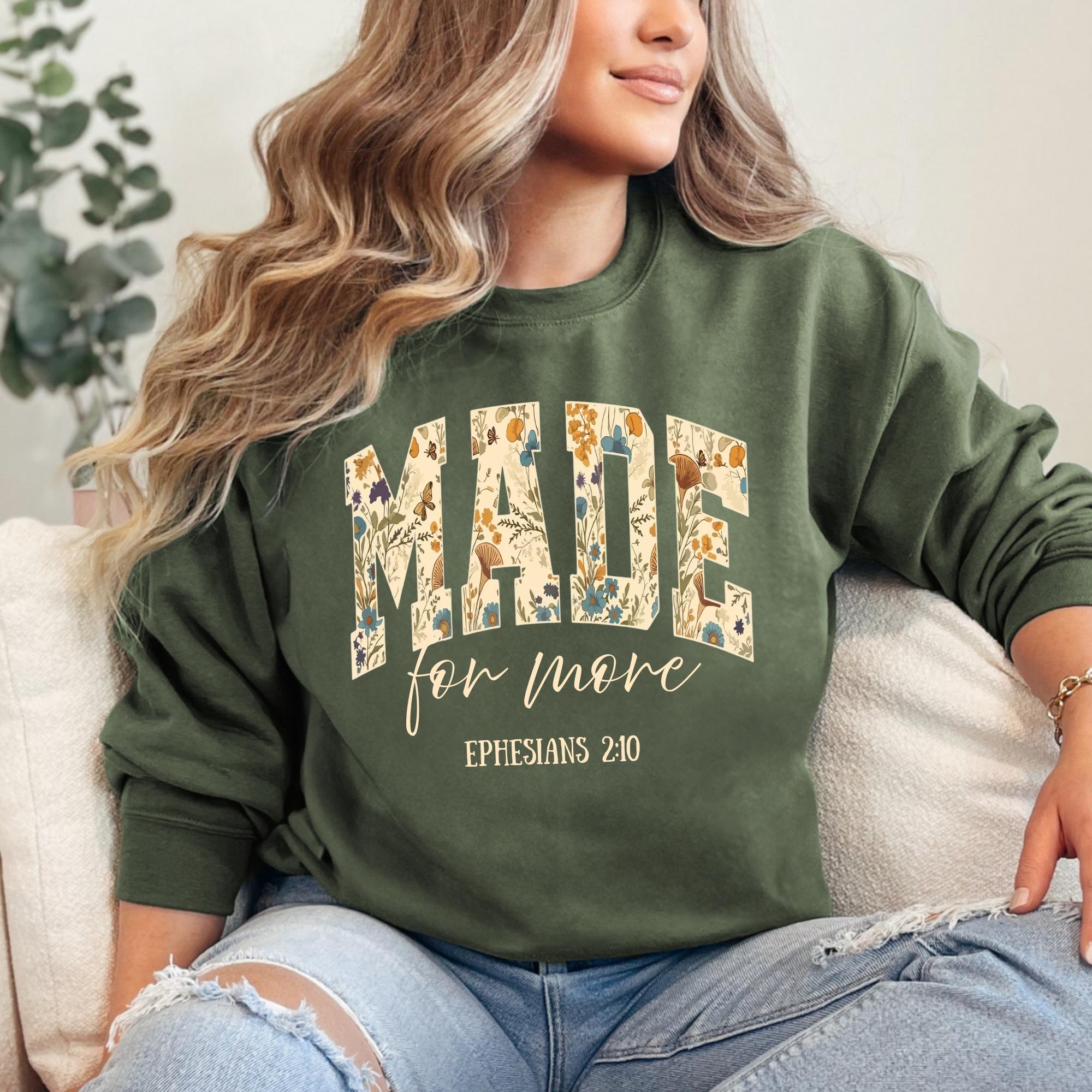 Made for more Sweatshirt, Ephesians 2:10 Shirt, Bible Verse Shirt, Jesus Tee, Woman Faith Tshirt,Cute Christian shirt for women,Gift for her