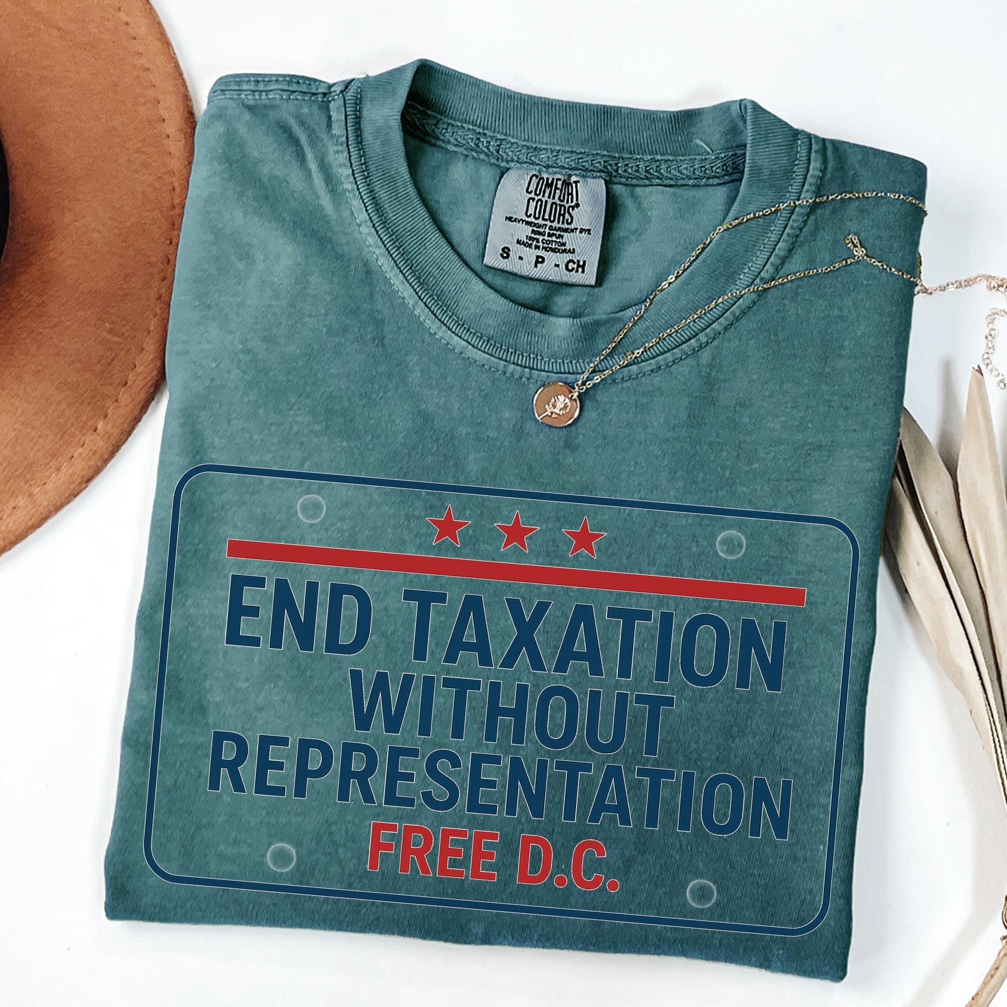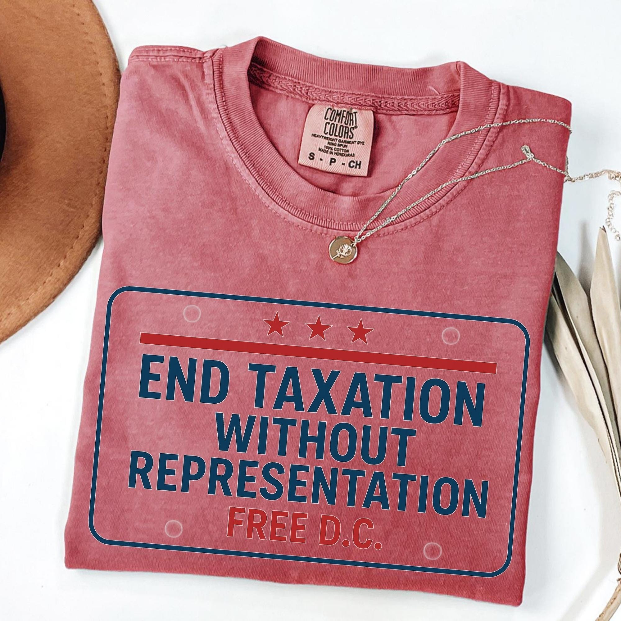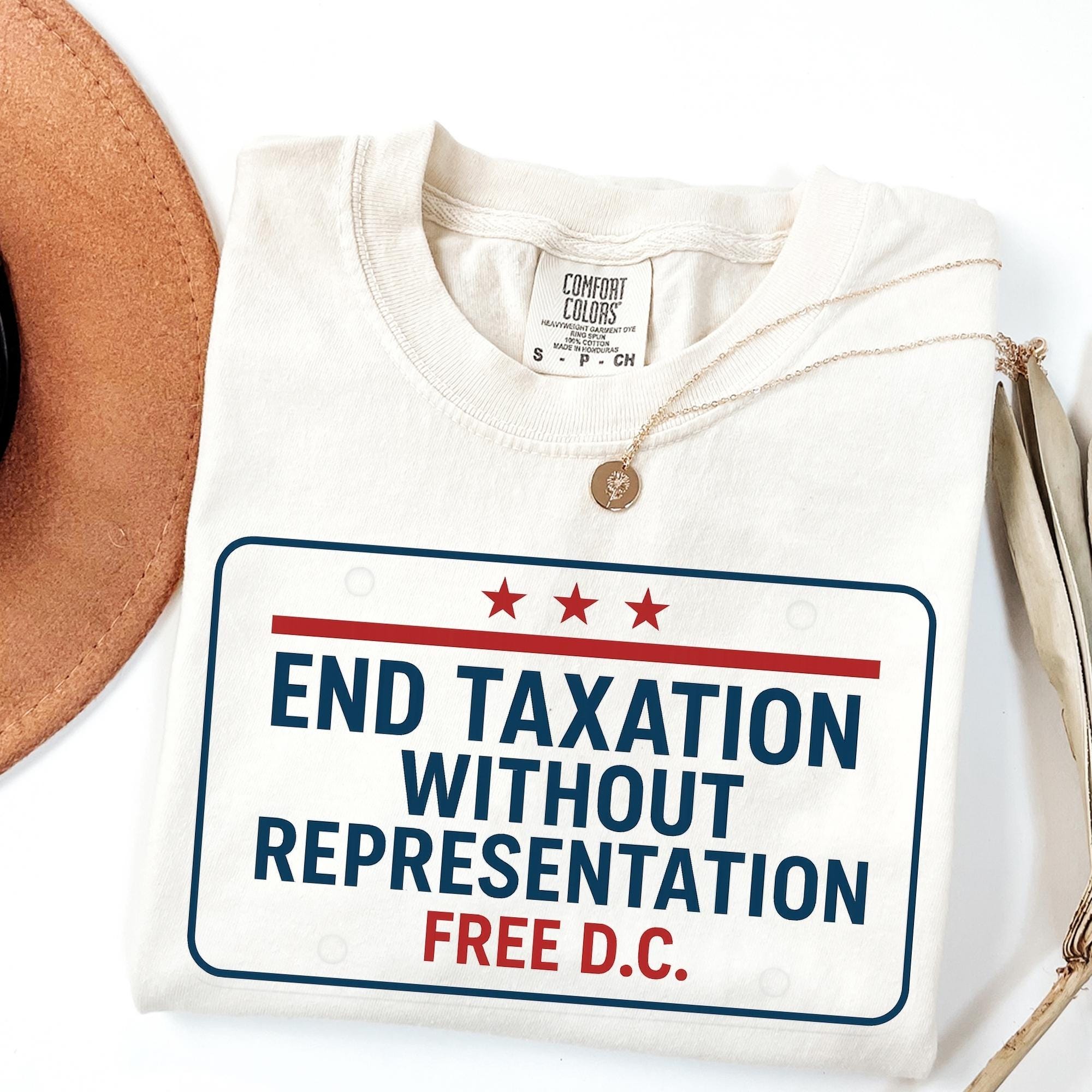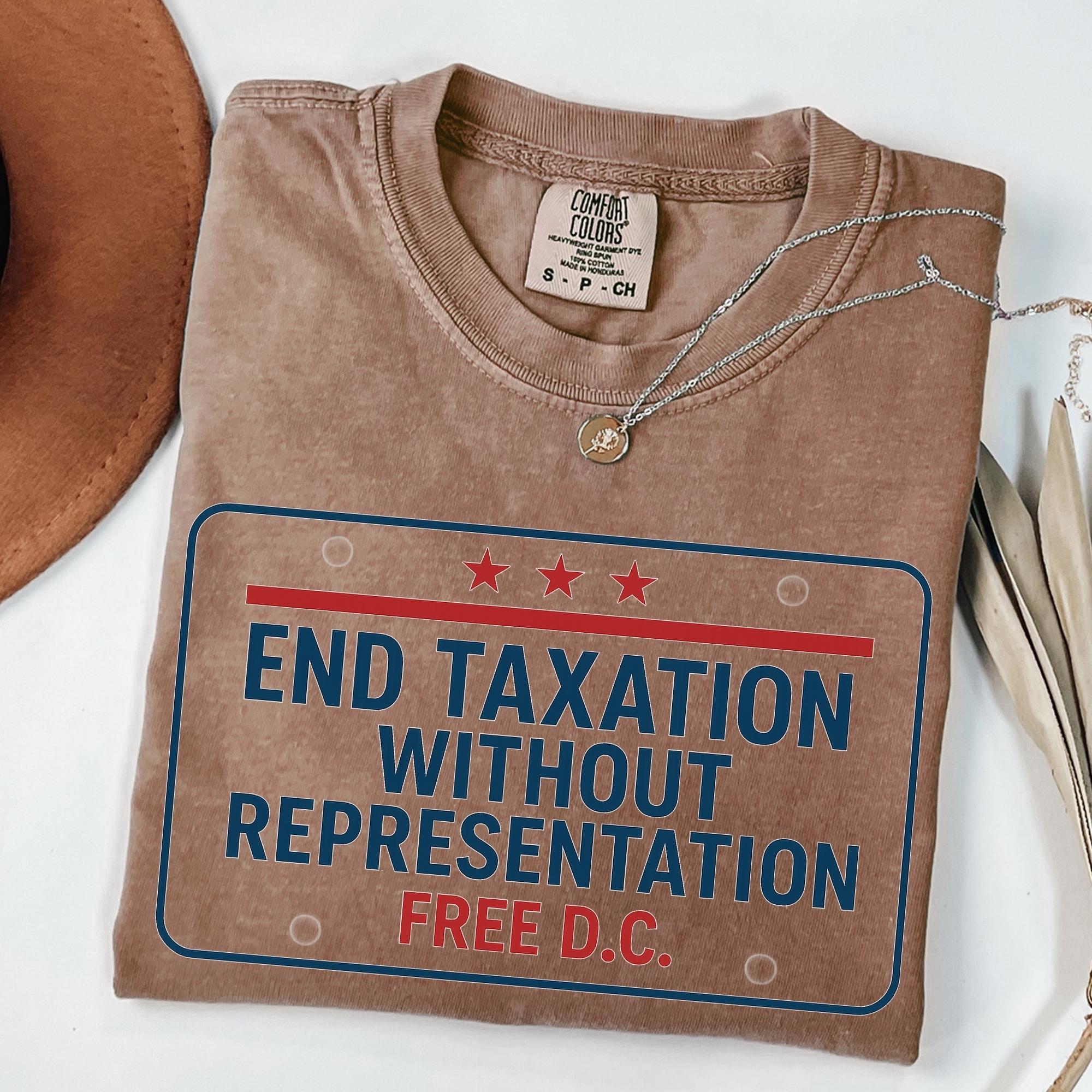 Free DC Protest Shirt – End Taxation Without Representation Tee, Political Activist Apparel, Washington DC Statehood T-Shirt and up for equality and representation with this Free DC protest shirt. Featuring the iconic slogan “End Taxation Without Representation”, this political activist t-shirt is perfect for rallies, protests, or everyday wear. Designed for those who support Washington DC statehood, democracy, and voting rights, this activist apparel makes a bold statement.
