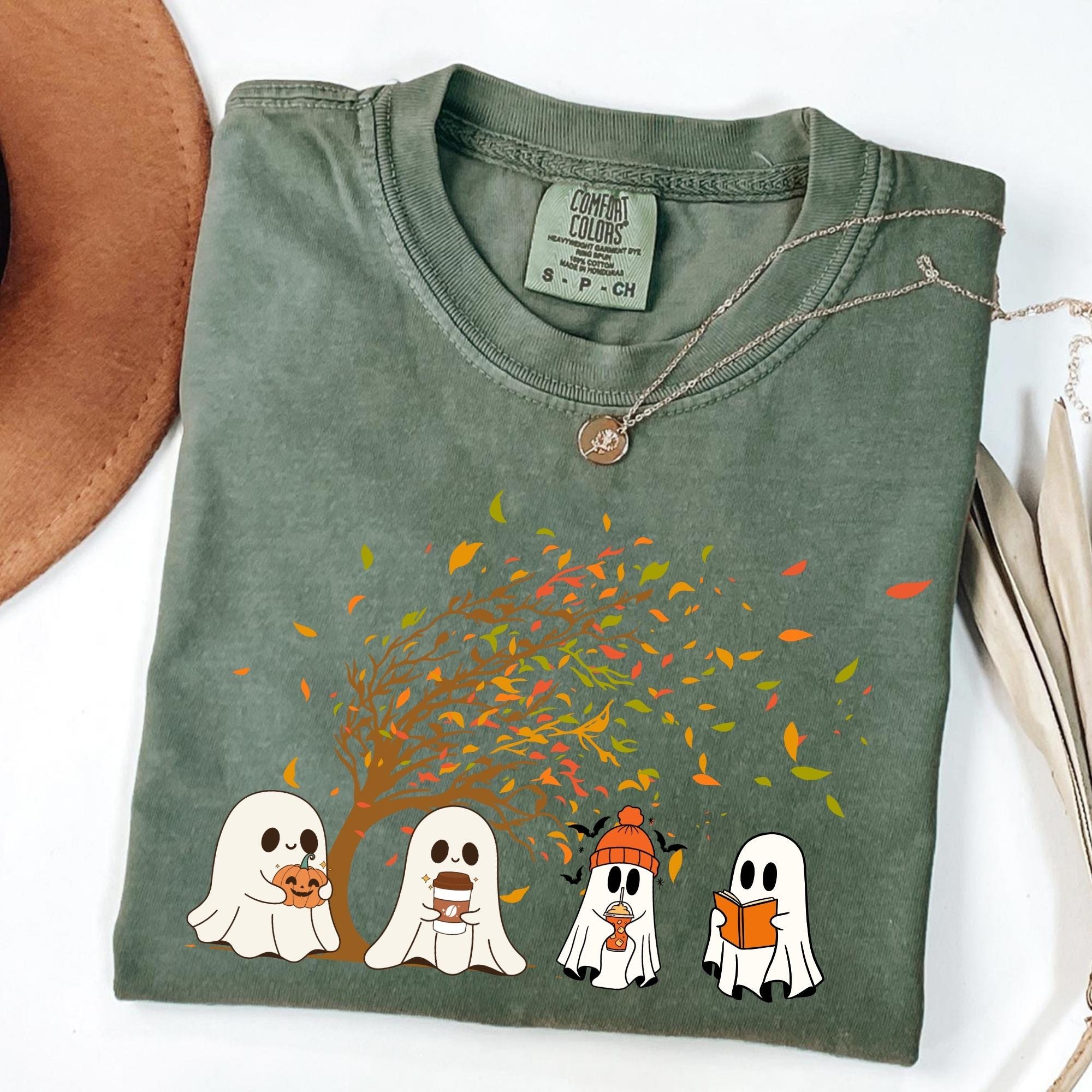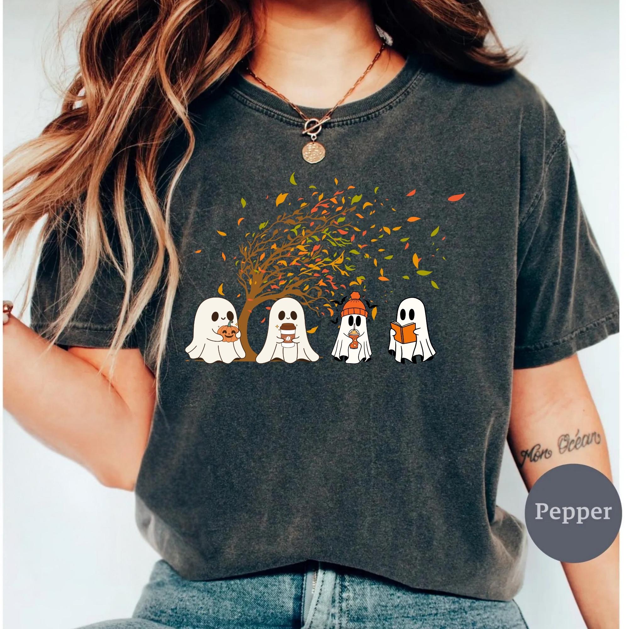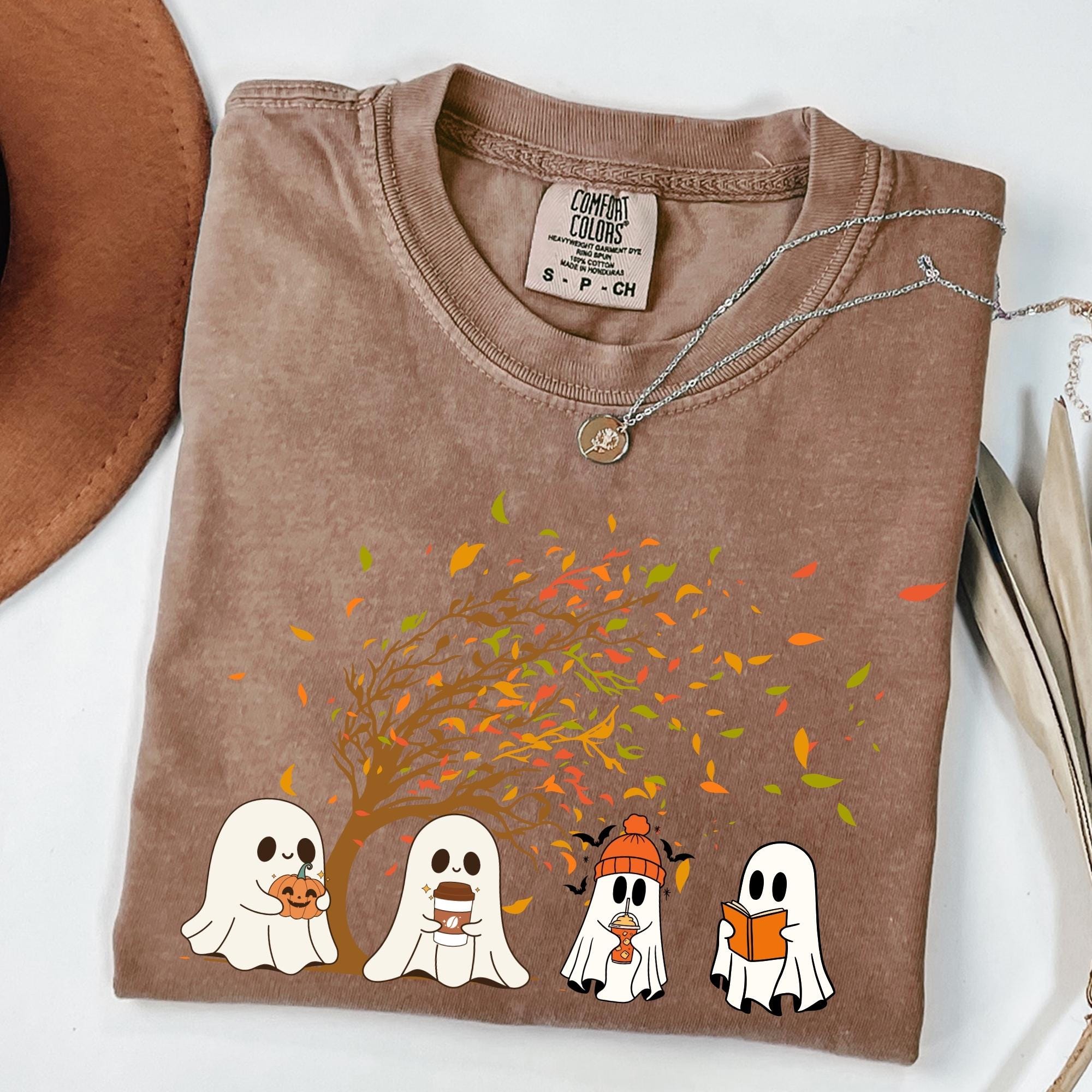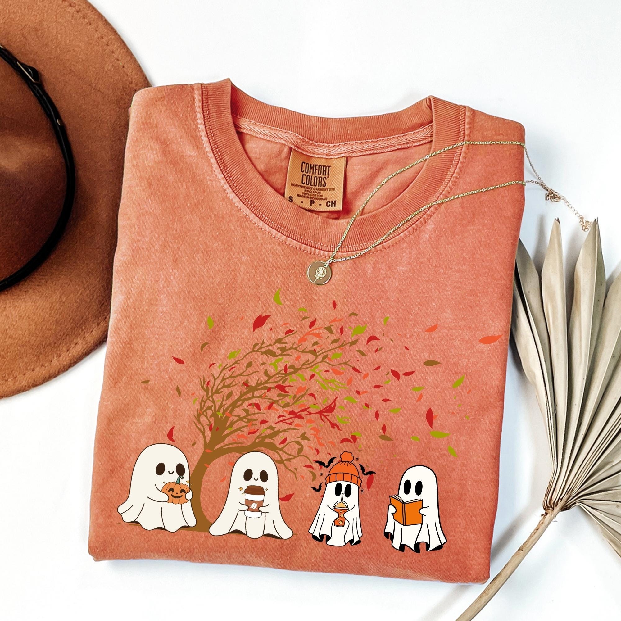Ghost Fall Comfort Colors shirt, Ghost Pumpkin Shirt, Spooky Season Shirt, Halloween Lover Gifts, Ghost and Pumpkin Crewneck, Autumn Shirt