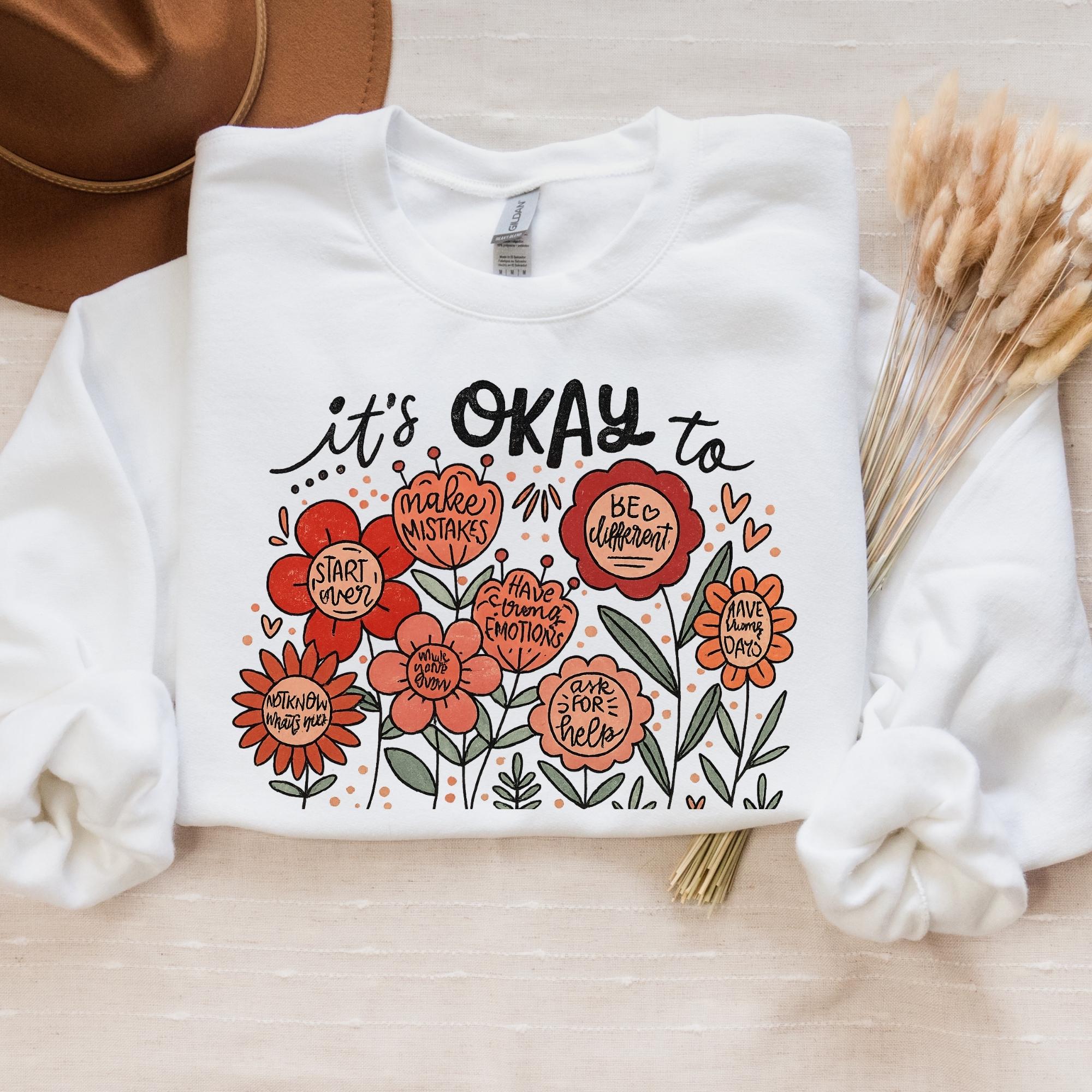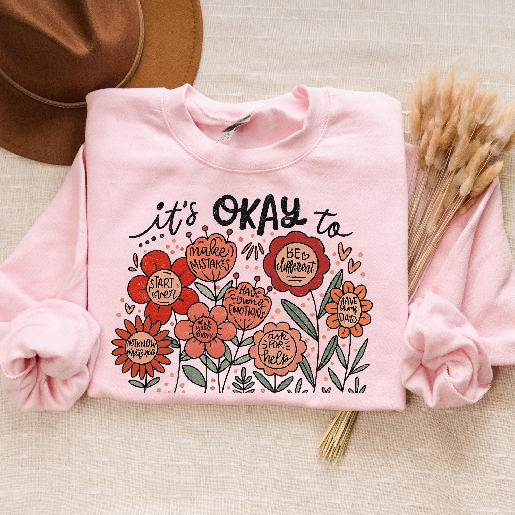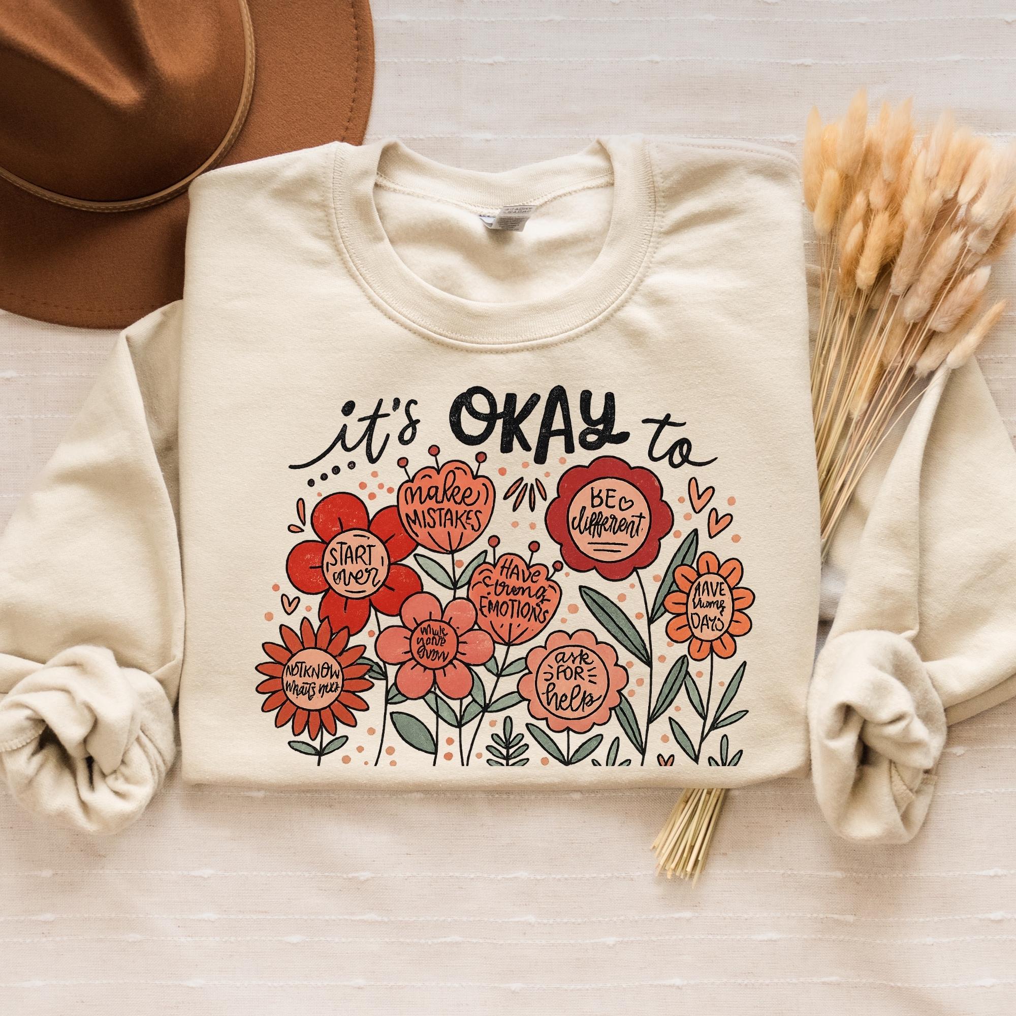 It's okay to boho floral Sweatshirt, flowers shirt, motivational Shirt, inspirational shirt,kindness tee,mental health tee, affirmations tee
