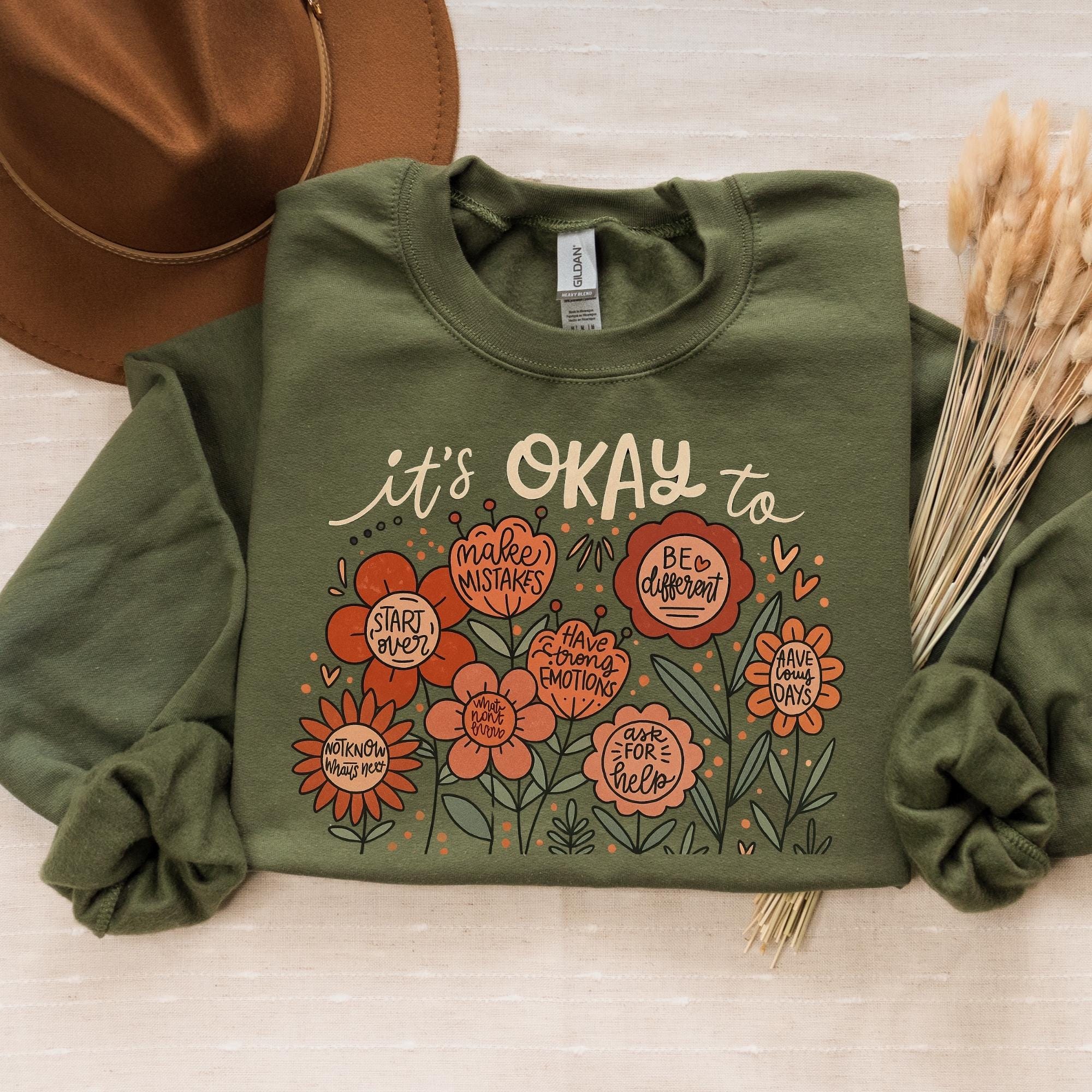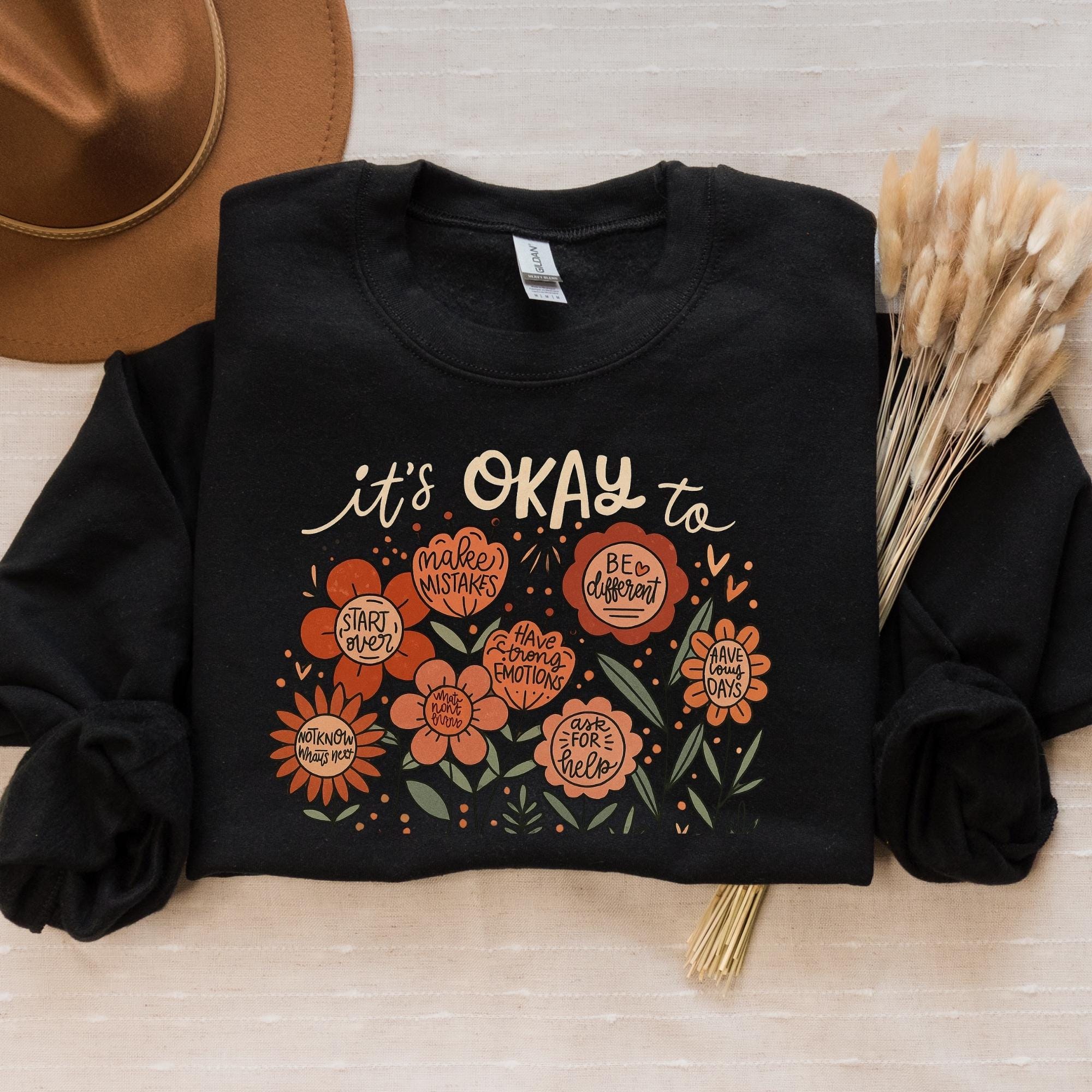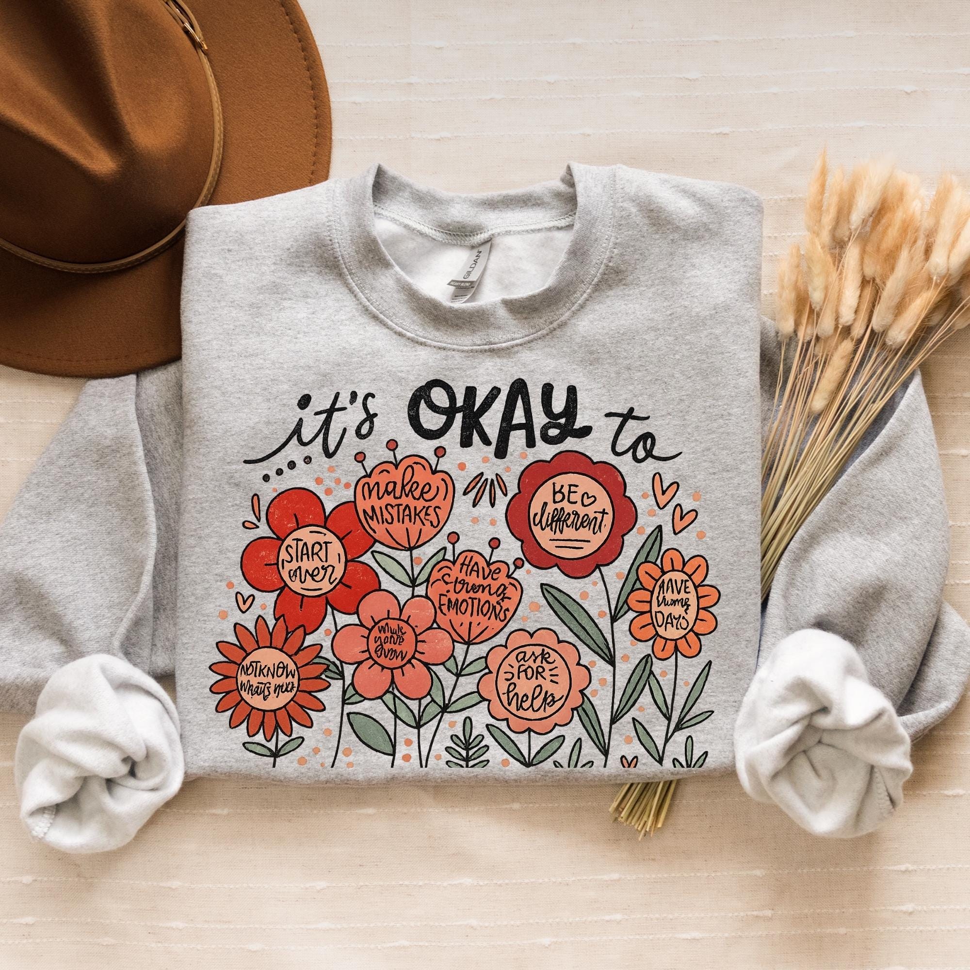 It's okay to boho floral Sweatshirt, flowers shirt, motivational Shirt, inspirational shirt,kindness tee,mental health tee, affirmations tee
