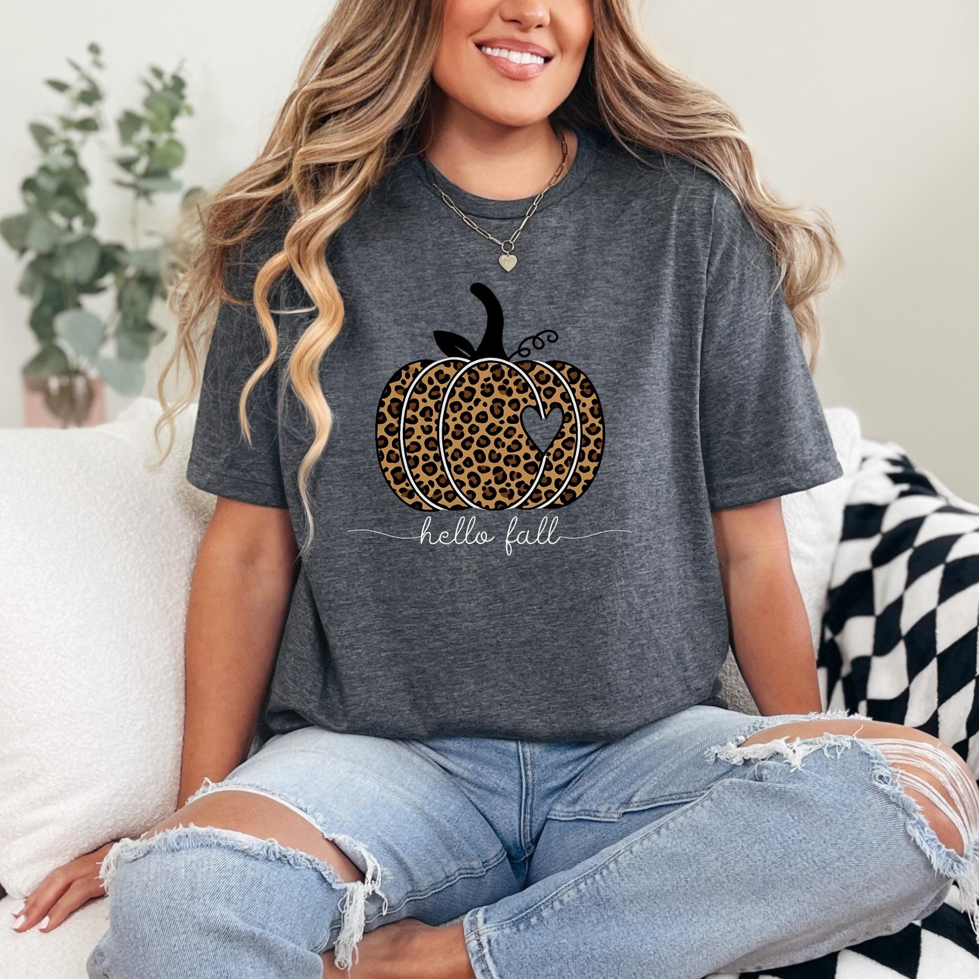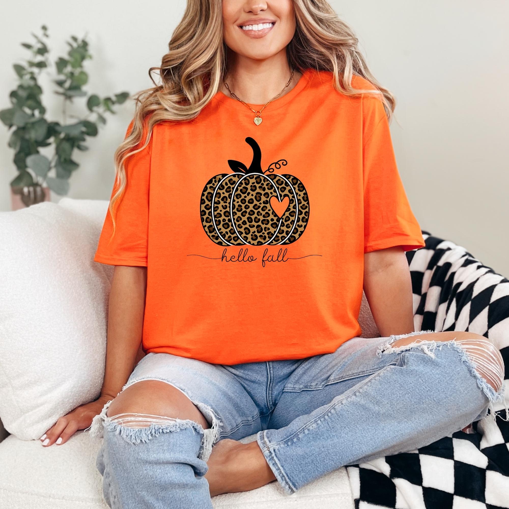 Leopard Pumpkin Shirt, Hello Fall Shirt, Cheetah Pumpkin Shirt,Thanksgiving, Thankful Shirt,Fall Shirt, Hello Pumpkin,Family Matching