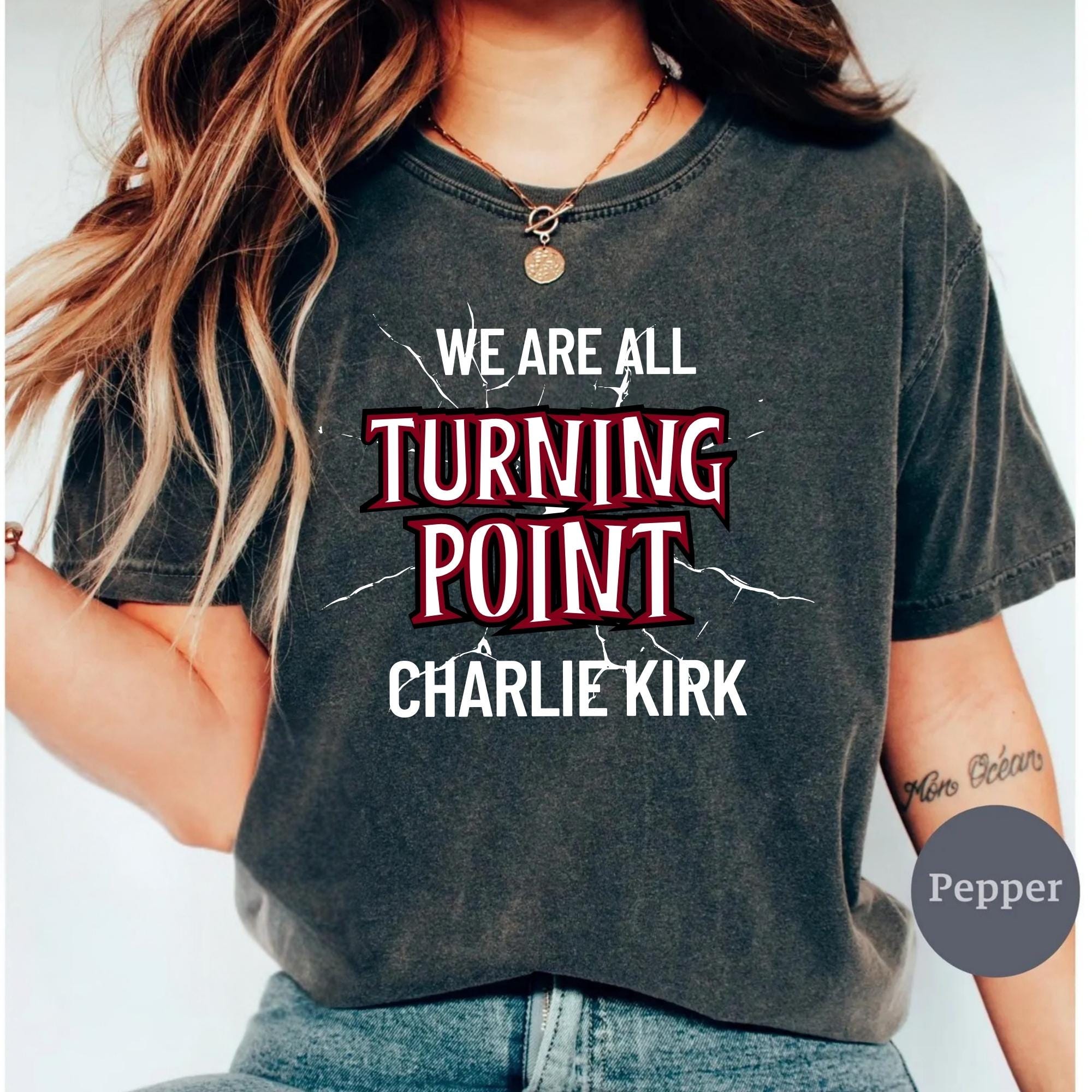 Stand out with this “We Are All Turning Point” graphic tee featuring bold typography and a powerful message. Perfect for political events, protests, activism, or anyone who wants to make a statement. Comfortable unisex fit makes it ideal for everyday wear. Pray For Charlie Kirk, Turning Point, We Are All Charlie Kirk, A Moment Of Silence For Charlie Kirk, Charlie Kirk Shirt