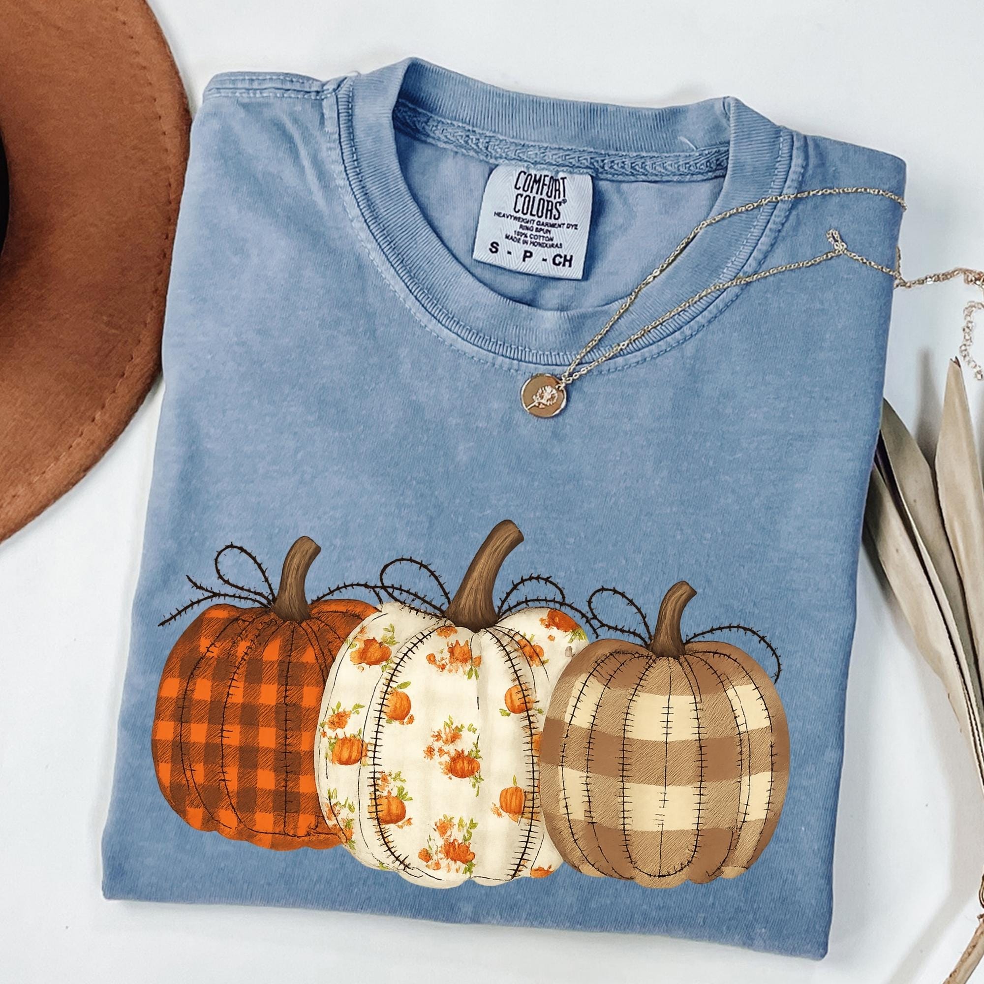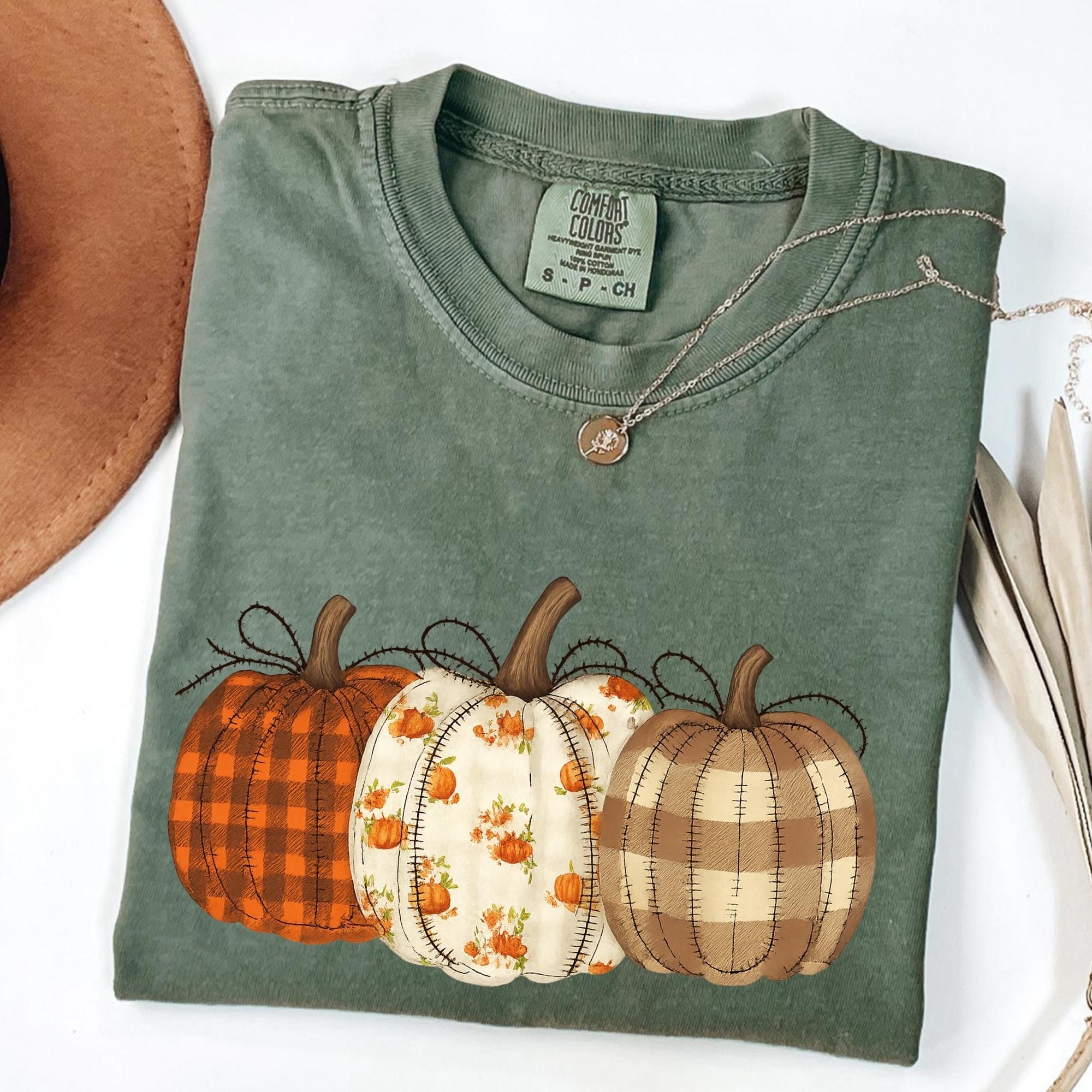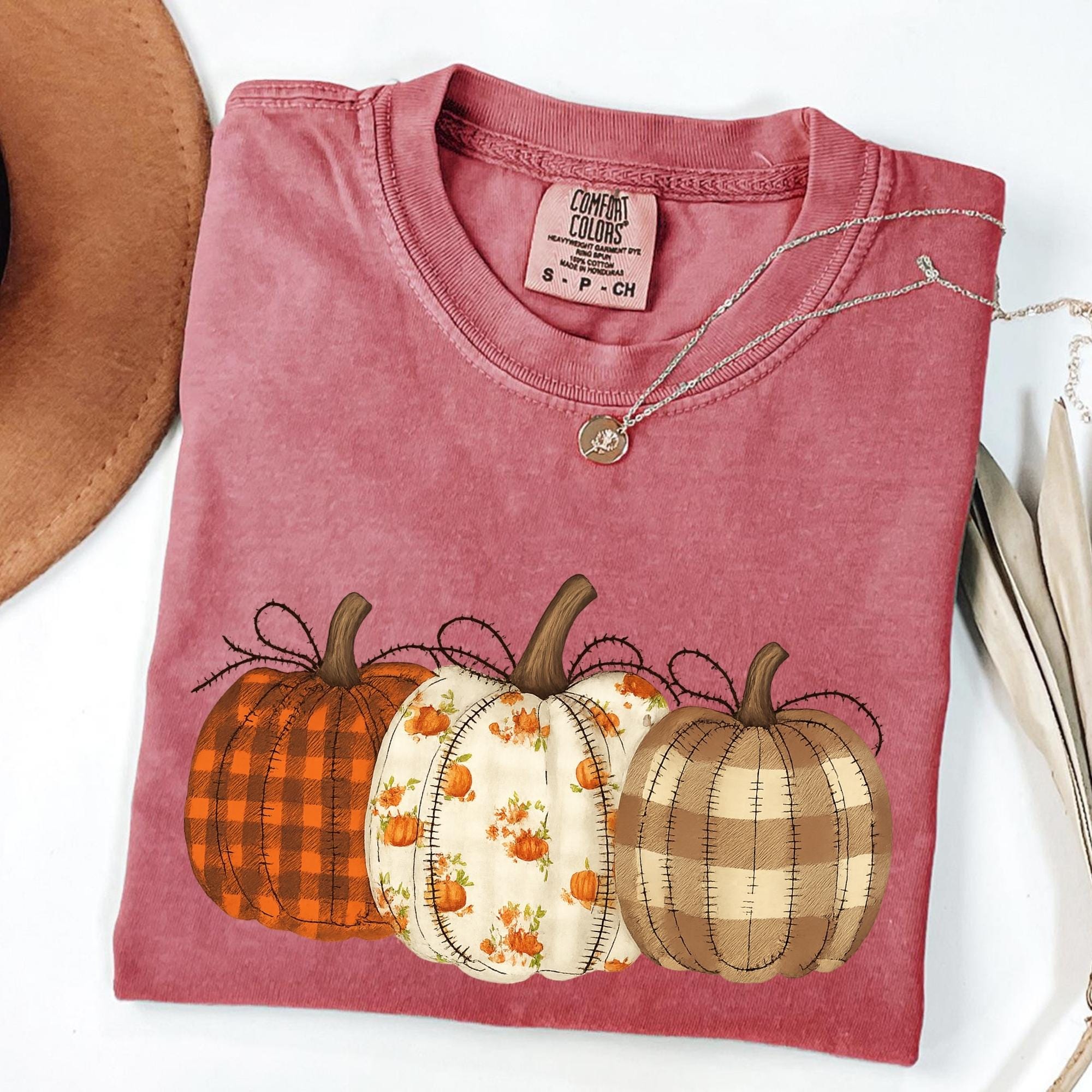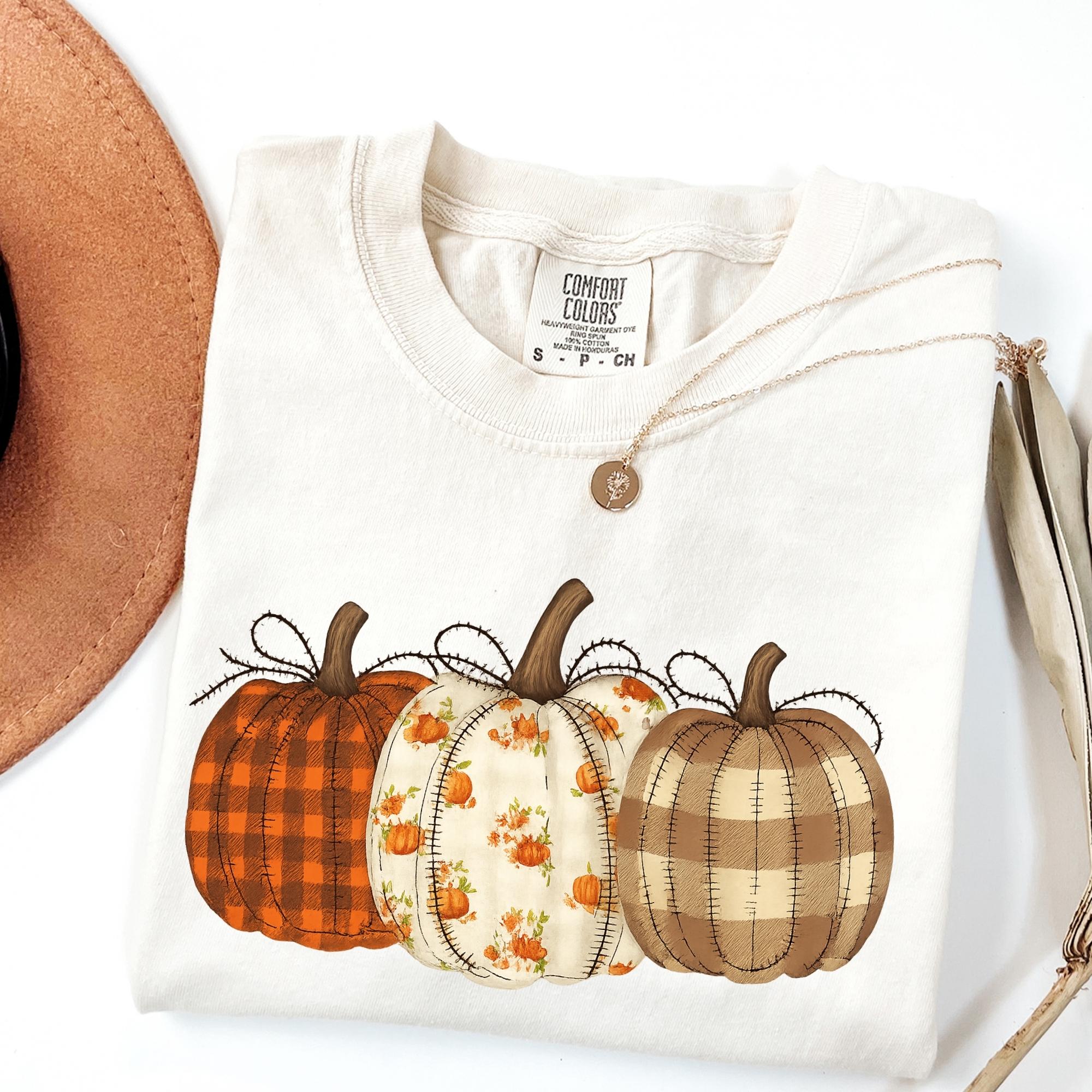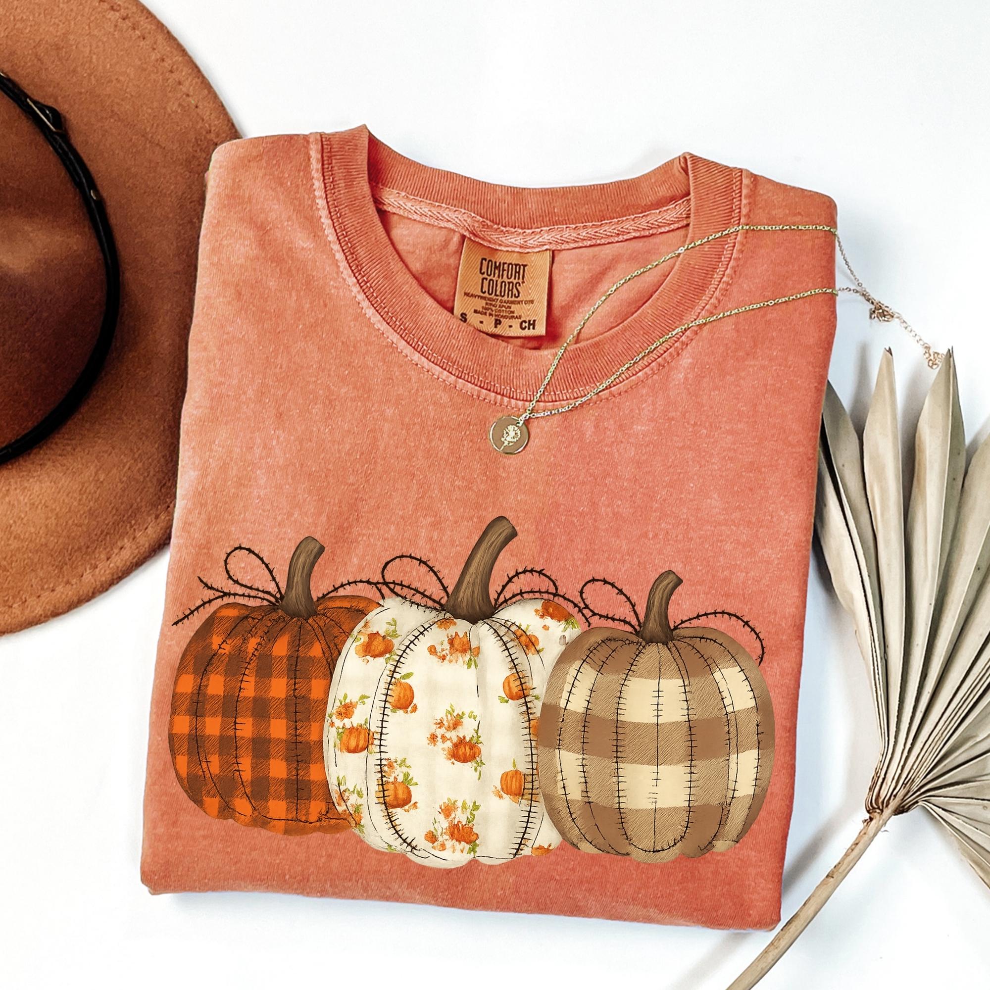 Comfort Colors® Fall Pumpkin T-Shirt, Autumn Fall Shirt, Thanksgiving Shirt, Pumpkins Shirt, Checkered Pumpkin Shirt
