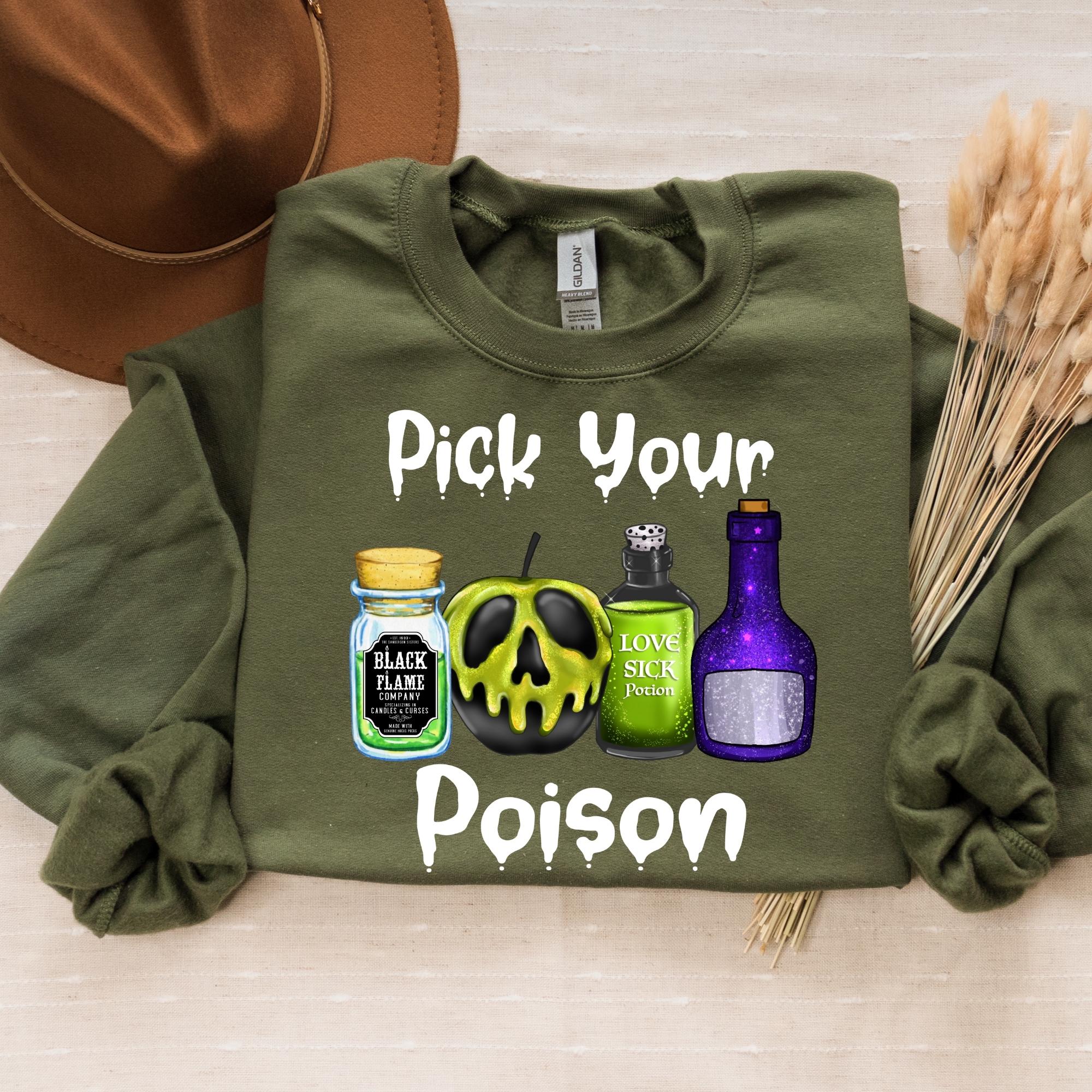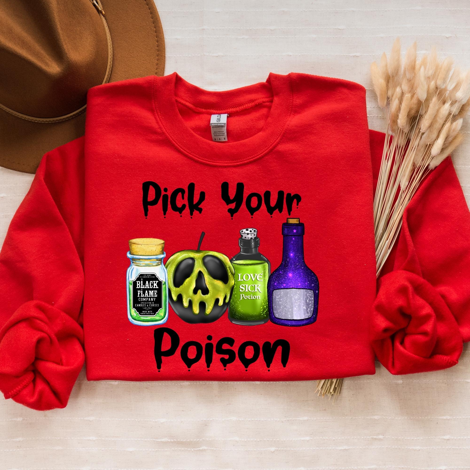 Pick Your Poison Vintage Sweatshirt, Princess Halloween Sweatshirt, Kuzco Poison Apple Tee, Spooky Season, Villain Cartoon