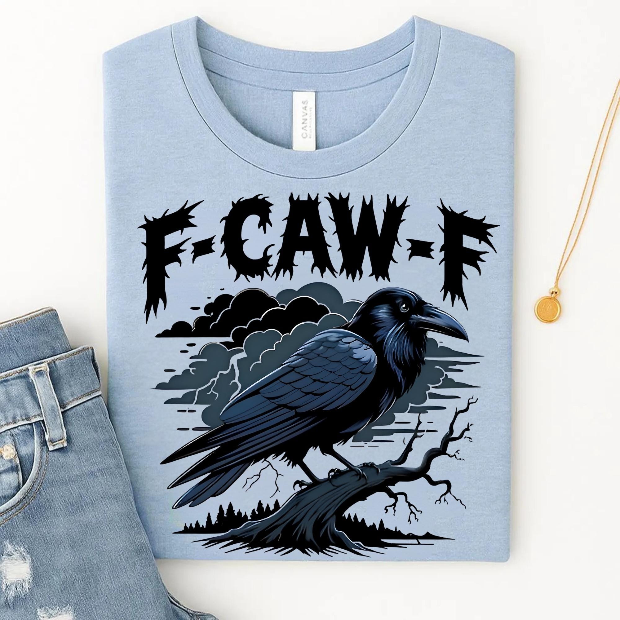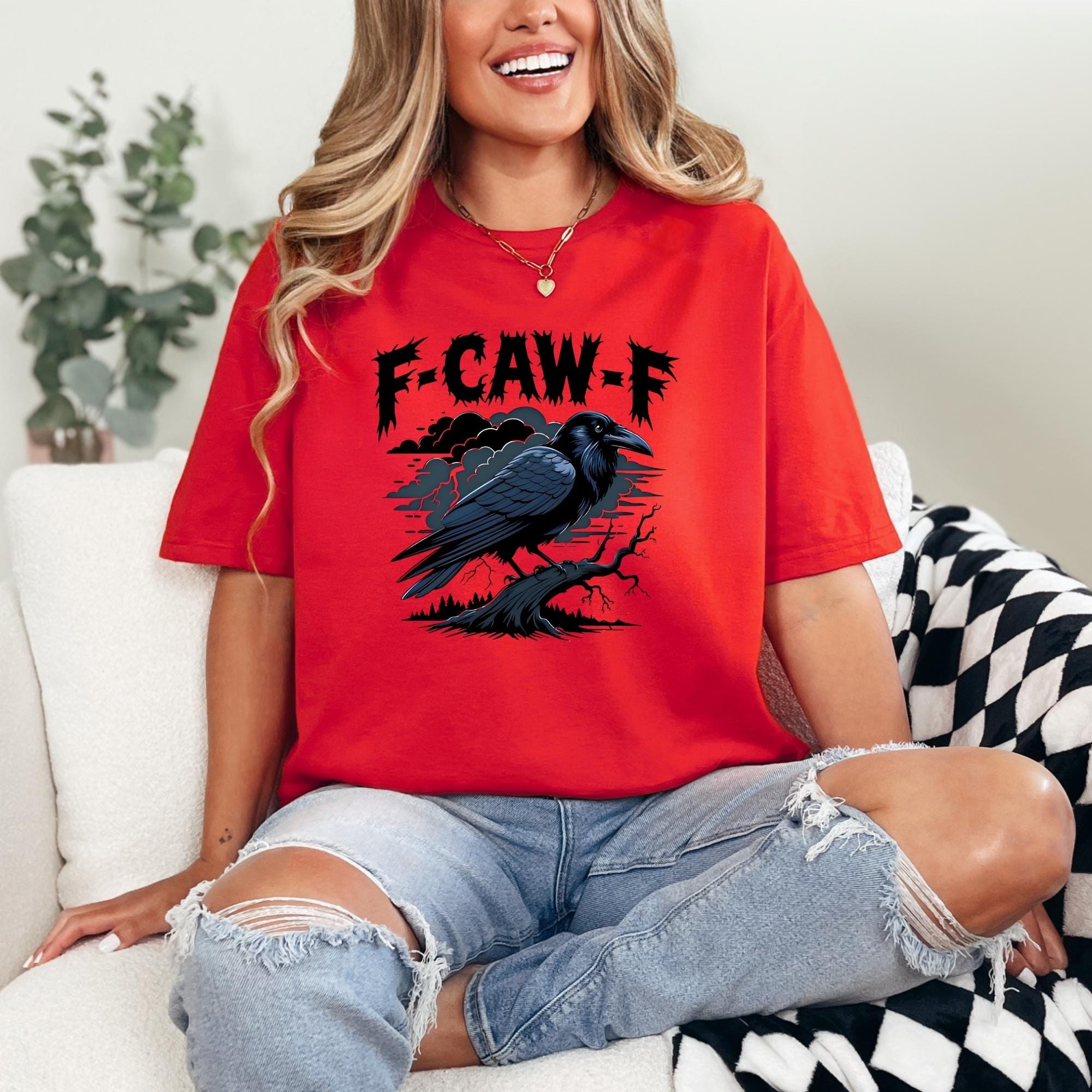 F-Caw-F Funny Crow Shirt, Black Crow Moonlit Raven Unisex T-shirt, Funny Sassy Raven Lover Gift, Autumn Style, Nature-Inspired, Raven Tshirt
