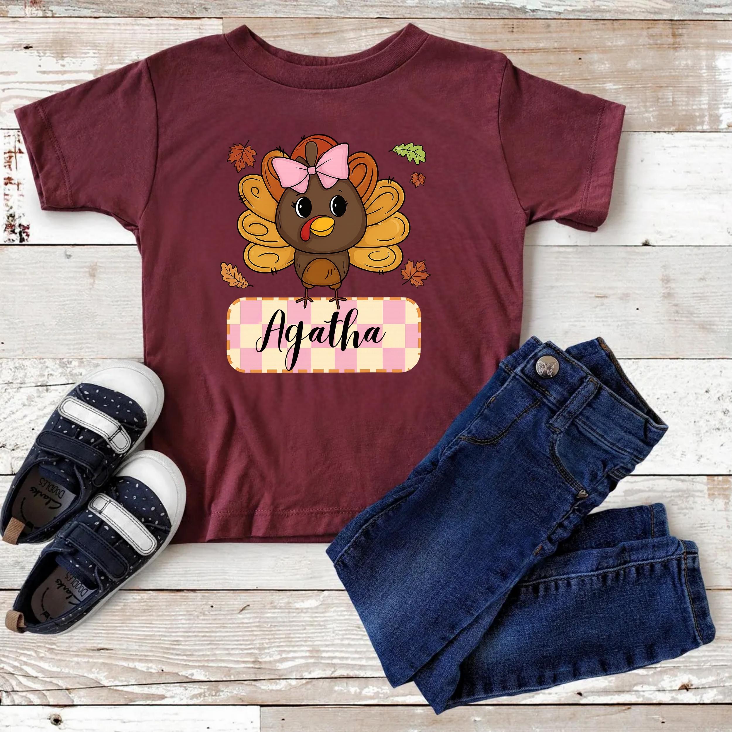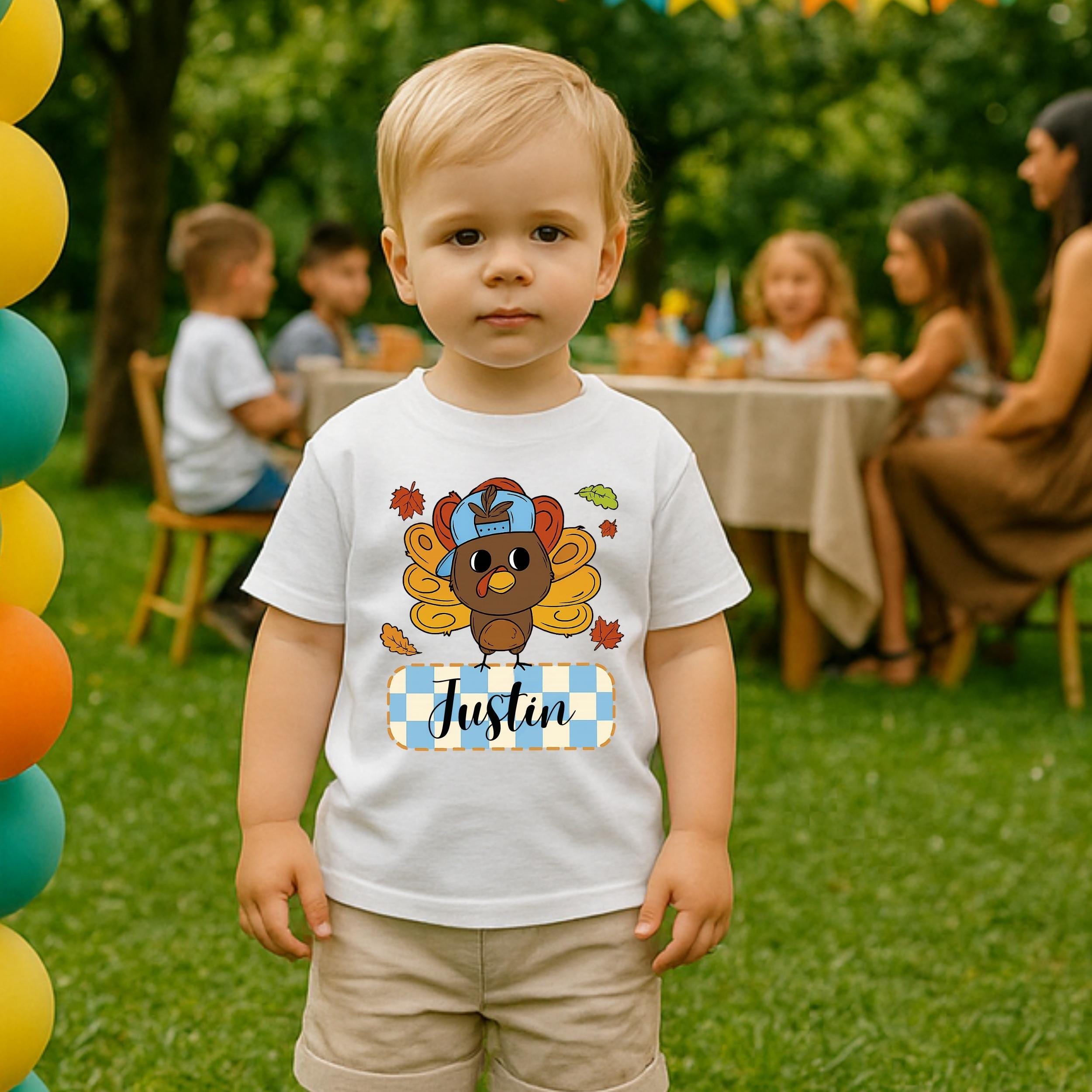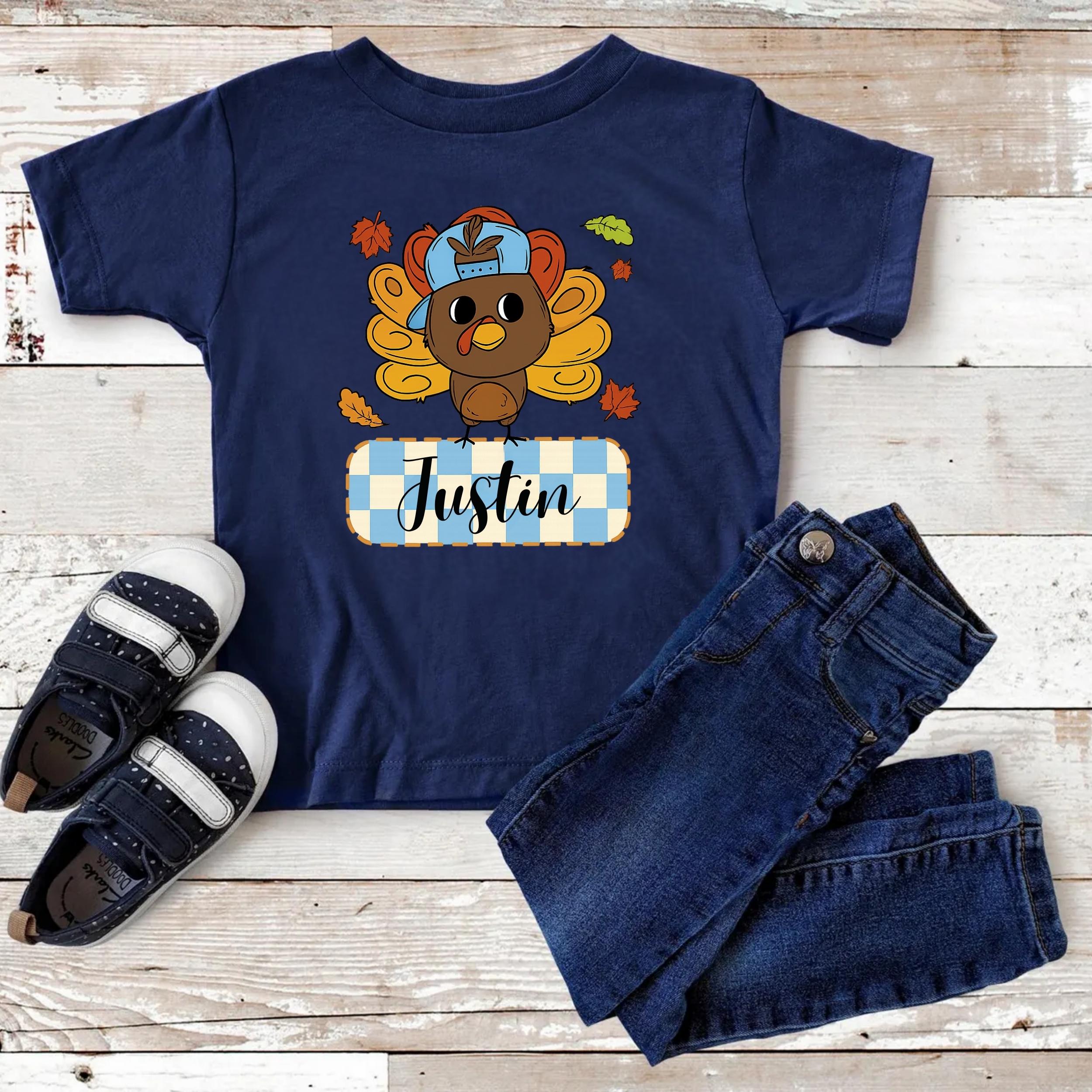 Football Custom Name Toddler Shirt - Personalized Turkey Natural Kids Shirt - Thanksgiving Kids Shirt
