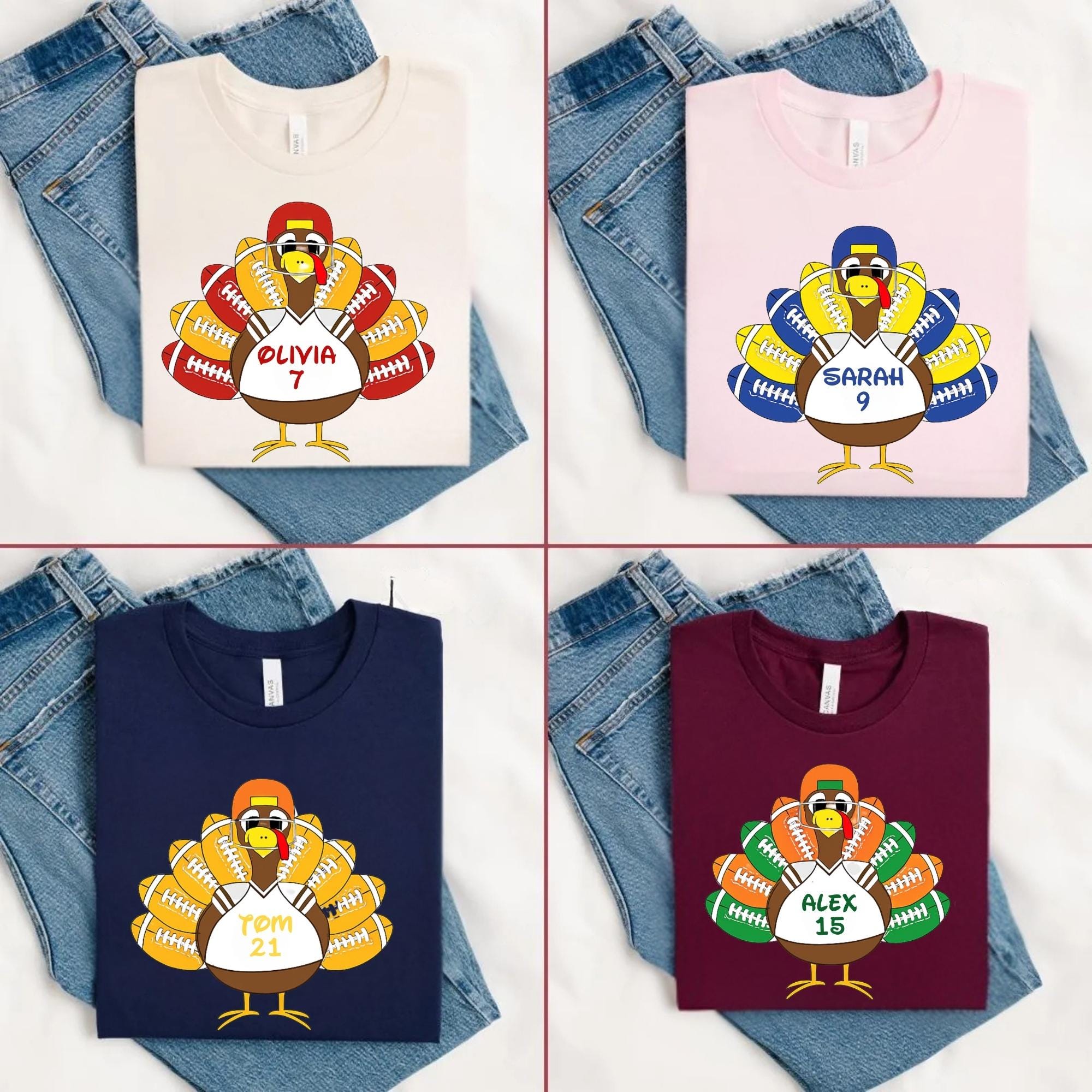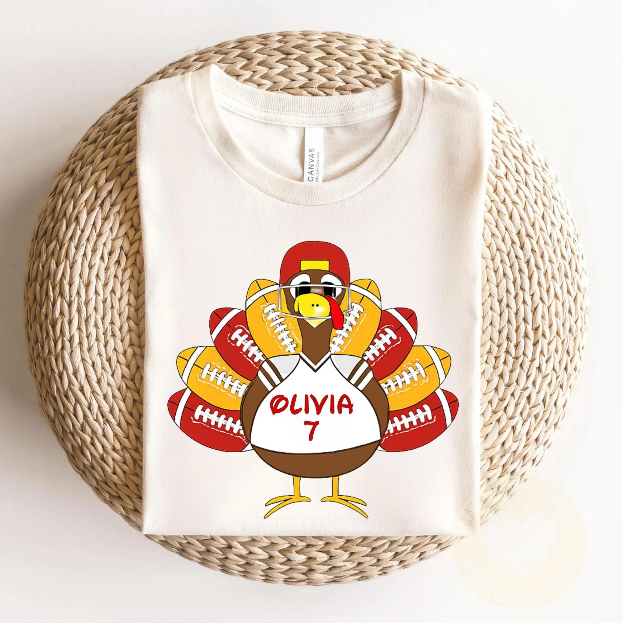 Football Custom Name and Number Shirt, Personalized Turkey Football Shirt, Thanksgiving Football Shirt, Fall Football Shirt