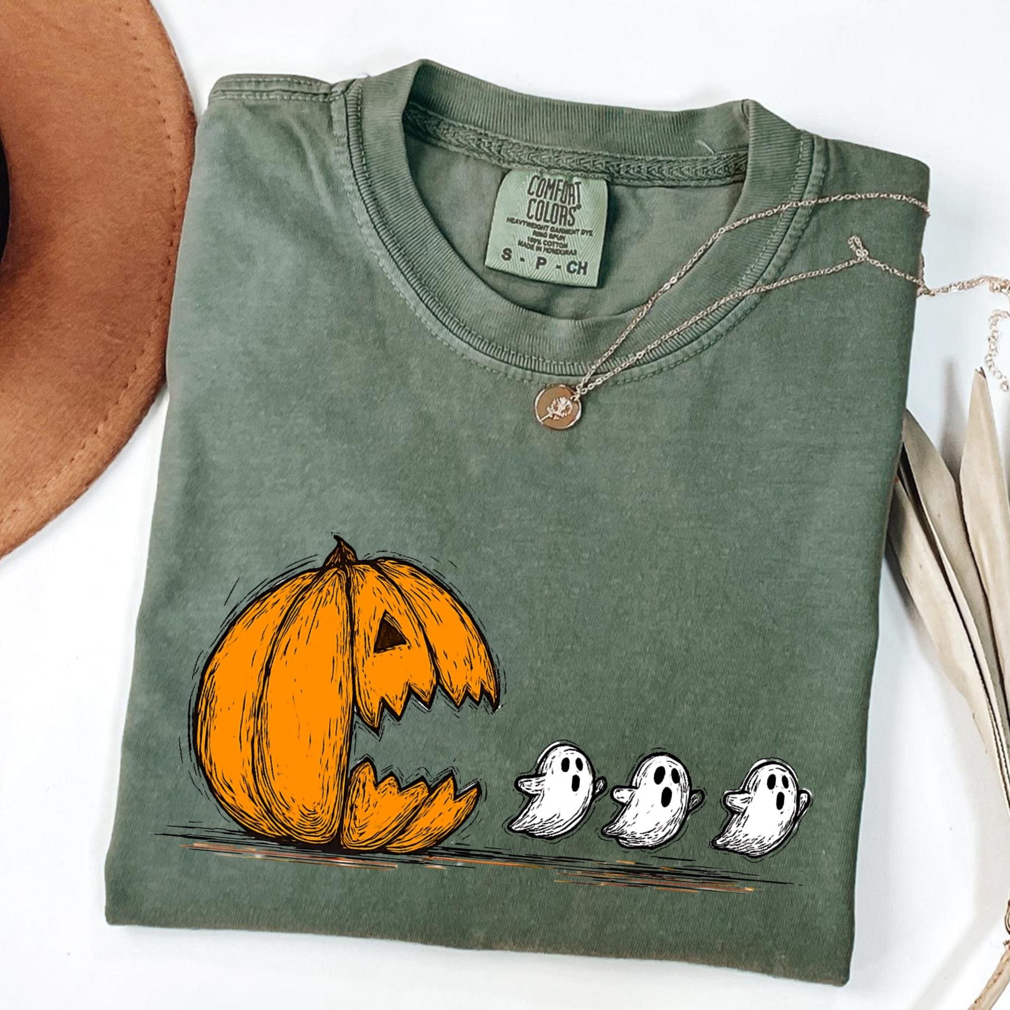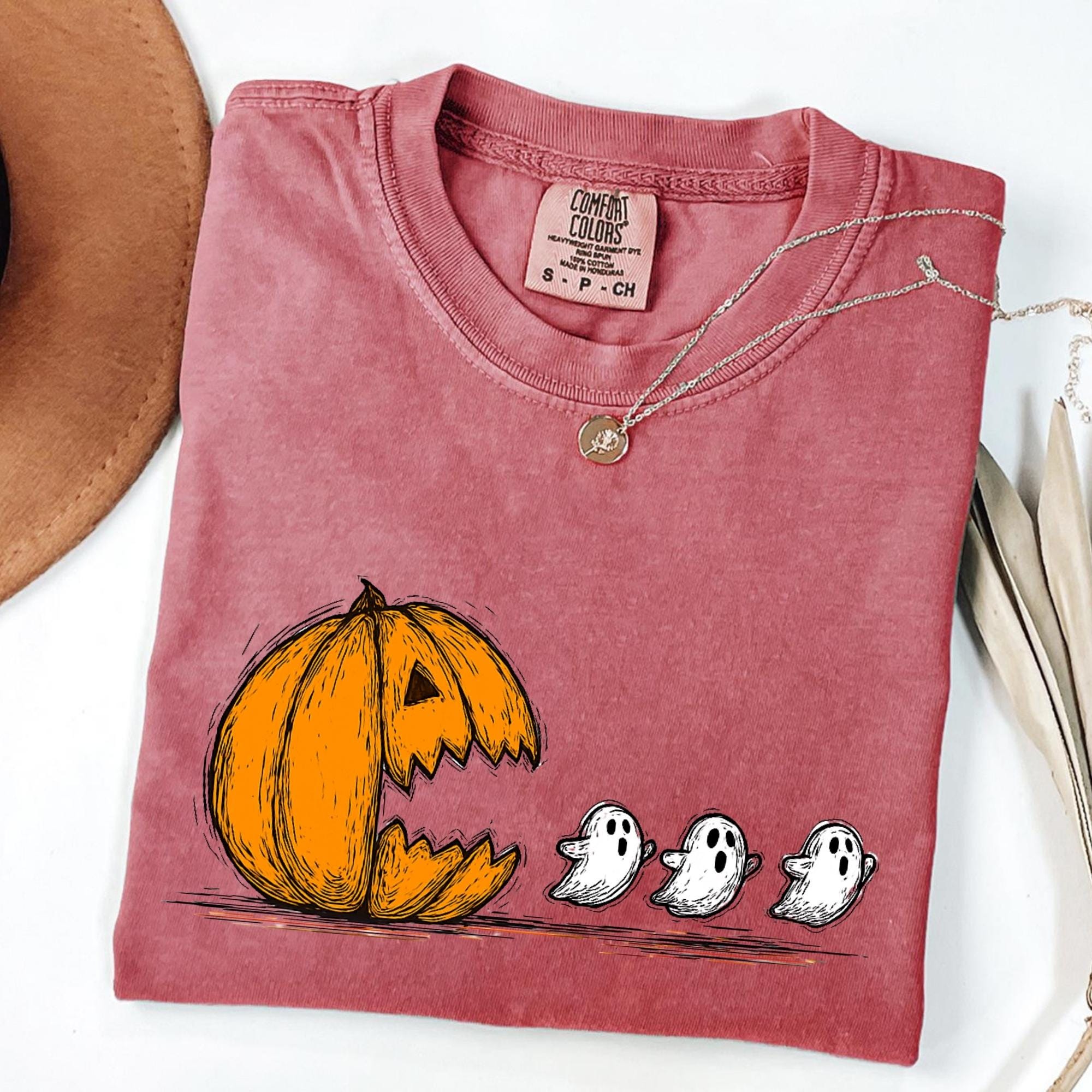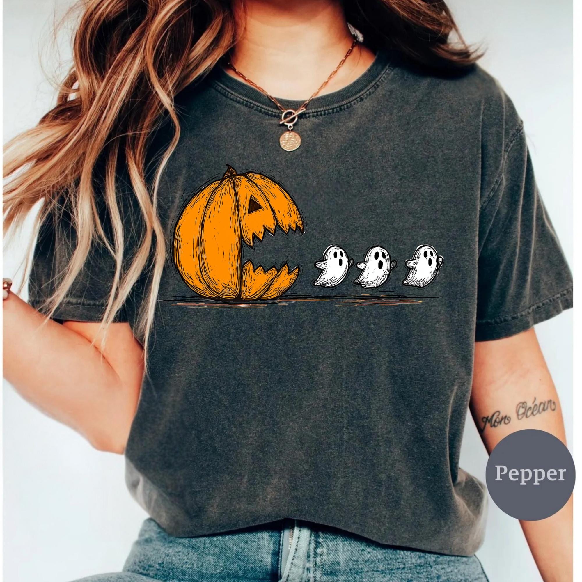 Halloween Pumpkin Eat Ghost Shirt, Funny Halloween Shirt, Halloween Gamer Gift, Halloween Party Tee, Pumpkin Pac Man Shirt, Spooky Ghost Tee