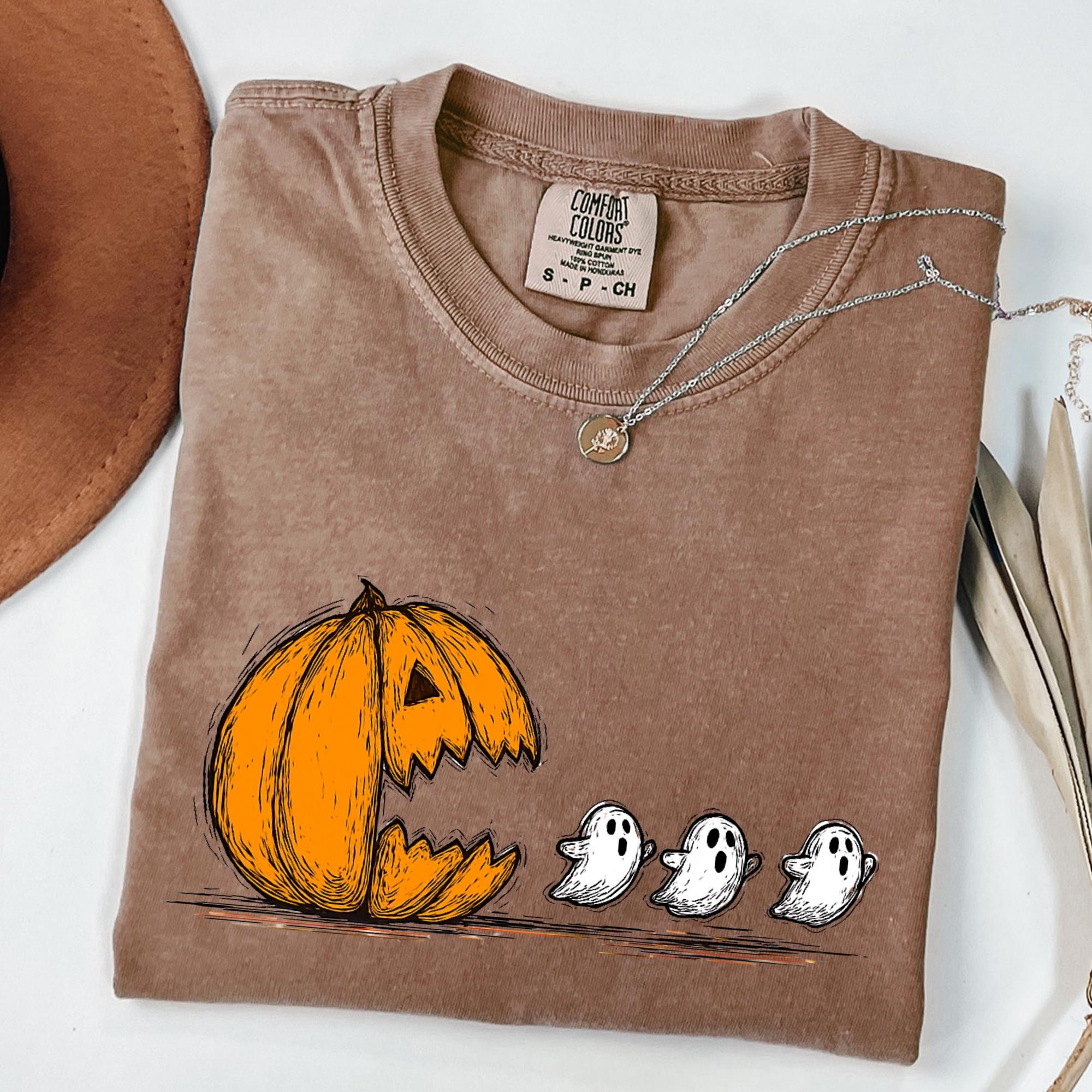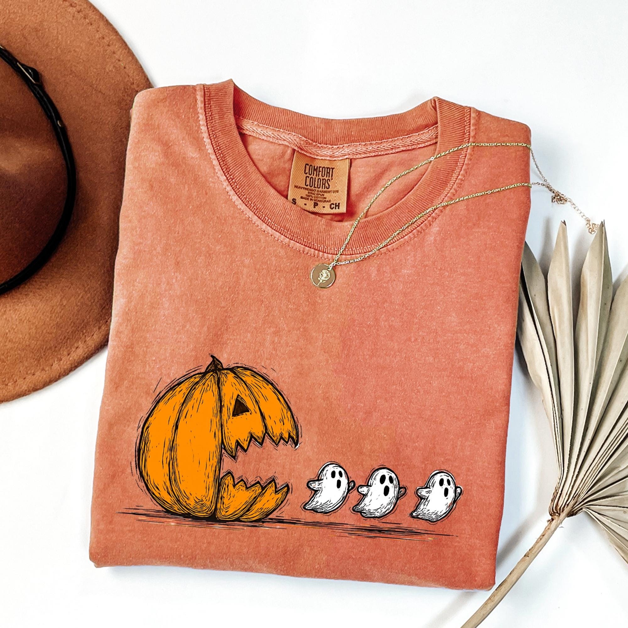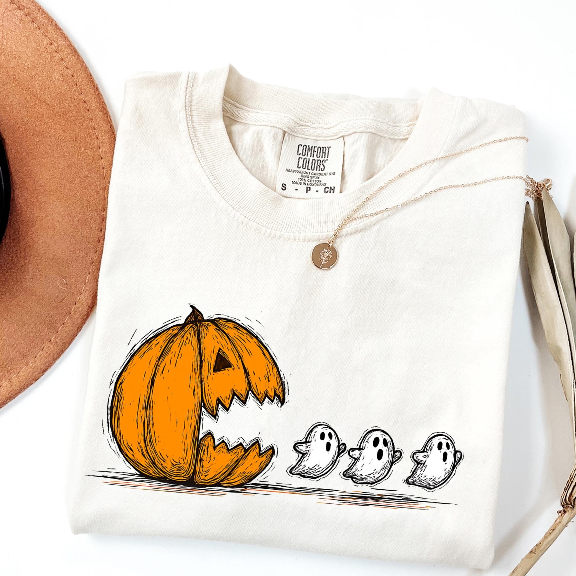 Halloween Pumpkin Eat Ghost Shirt, Funny Halloween Shirt, Halloween Gamer Gift, Halloween Party Tee, Pumpkin Pac Man Shirt, Spooky Ghost Tee