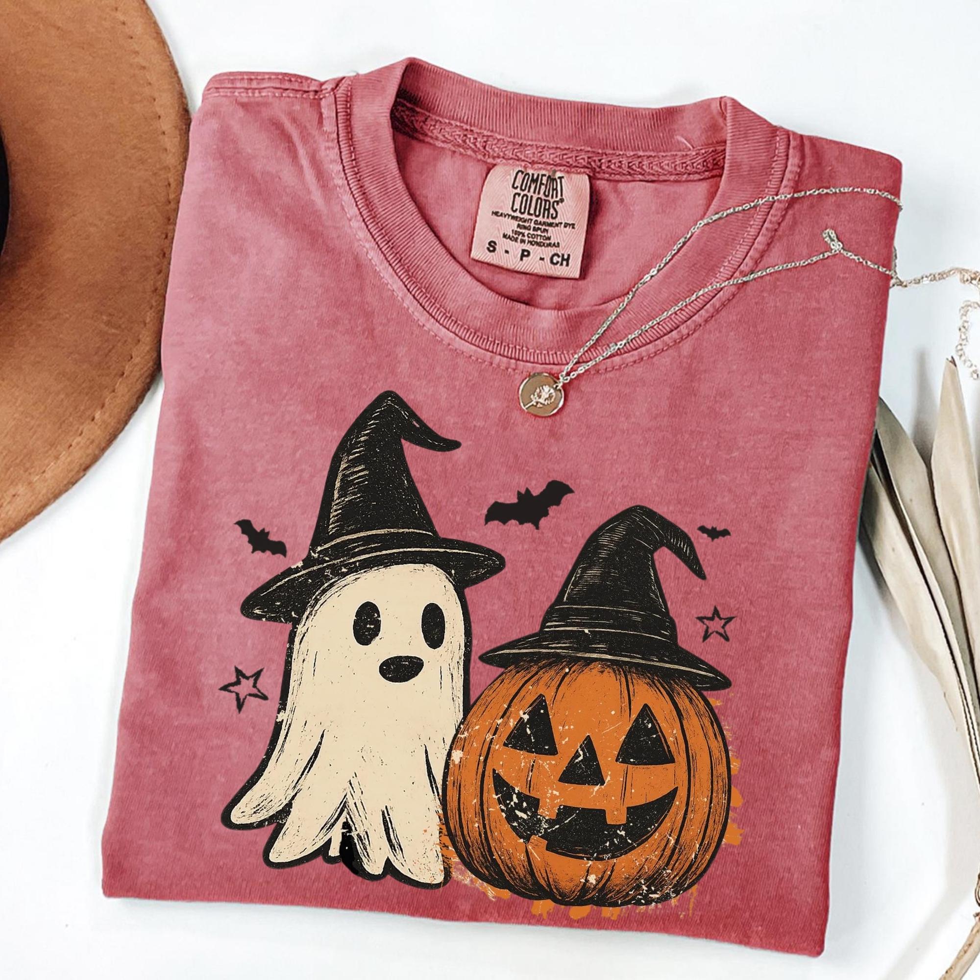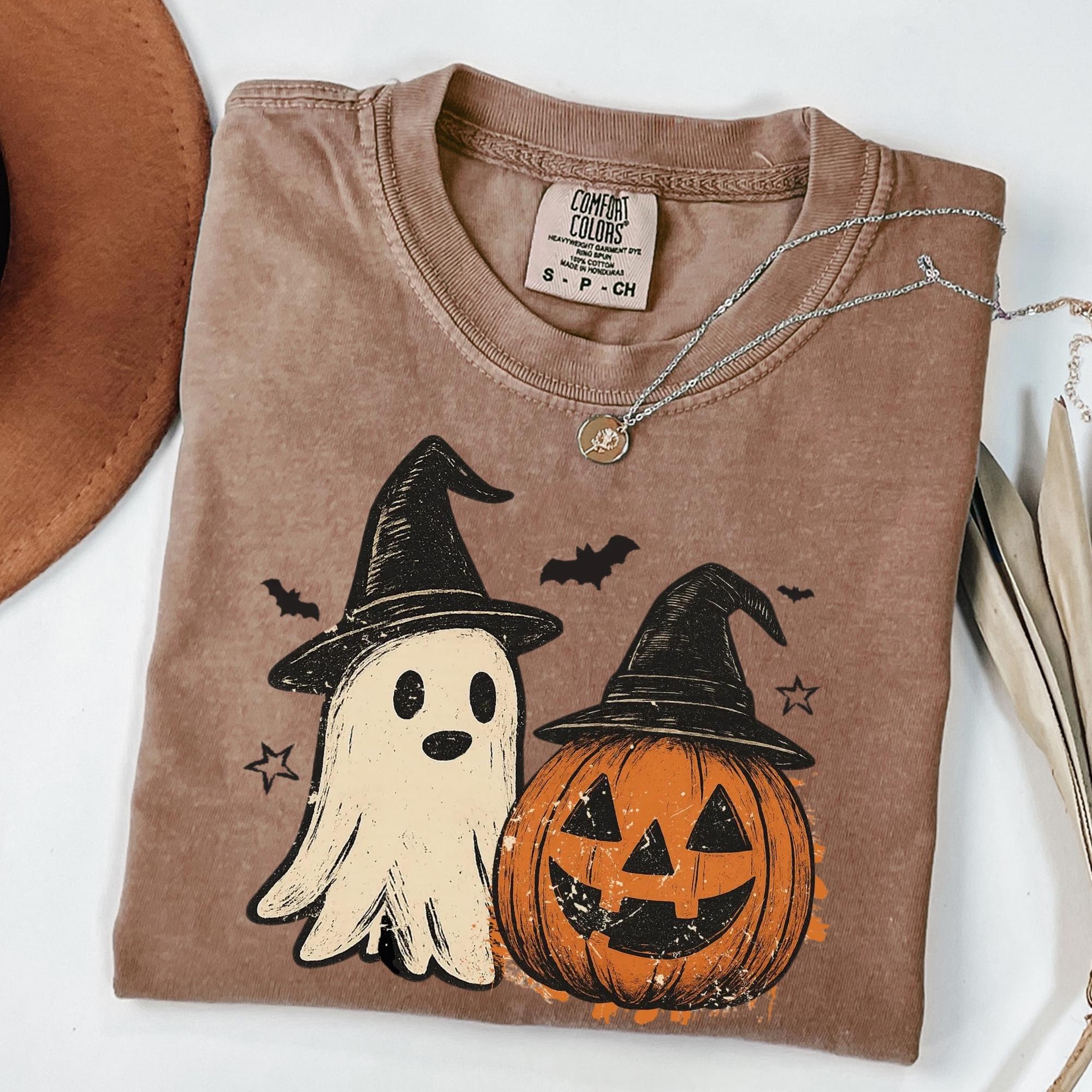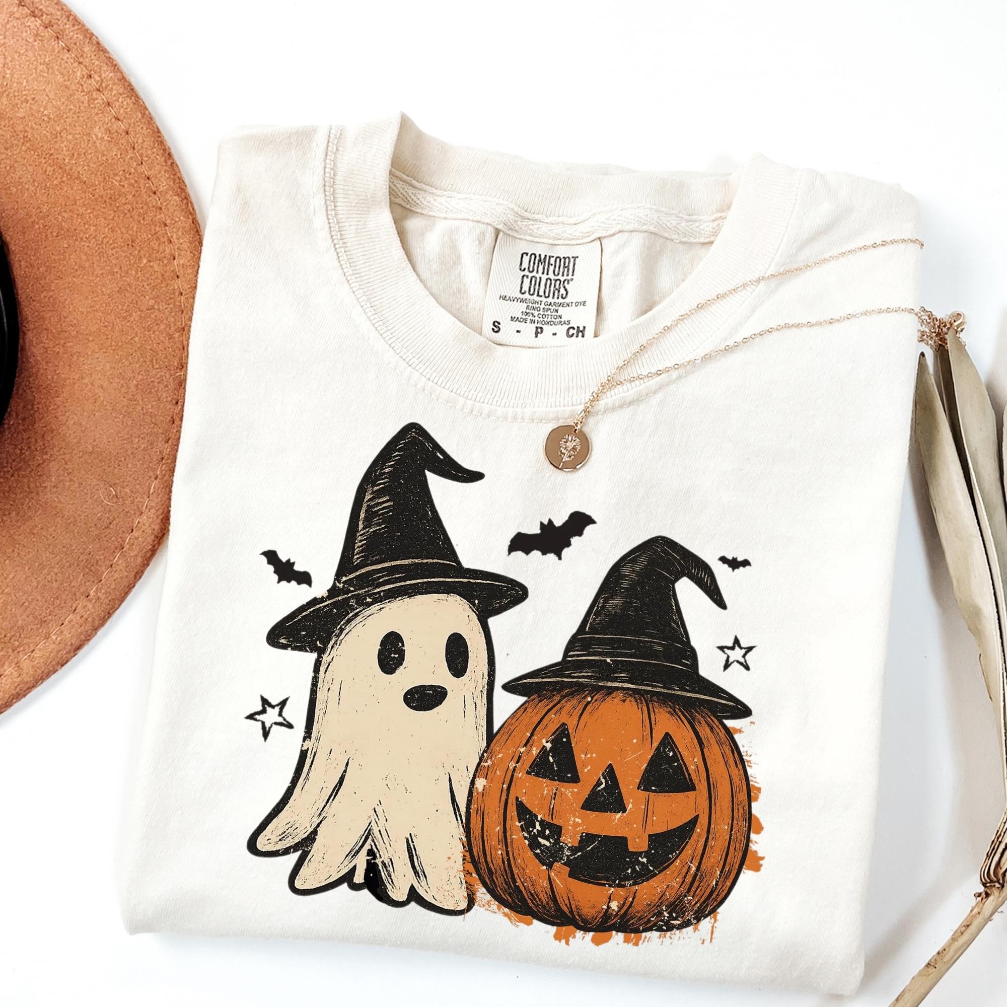 Spooky Ghost Halloween Comfort Colors Shirt, Preppy Floral Pumpkin Tee, Spooky Season T-Shirt, Ghost Aesthetic Tee Floral Patchwork Shirt