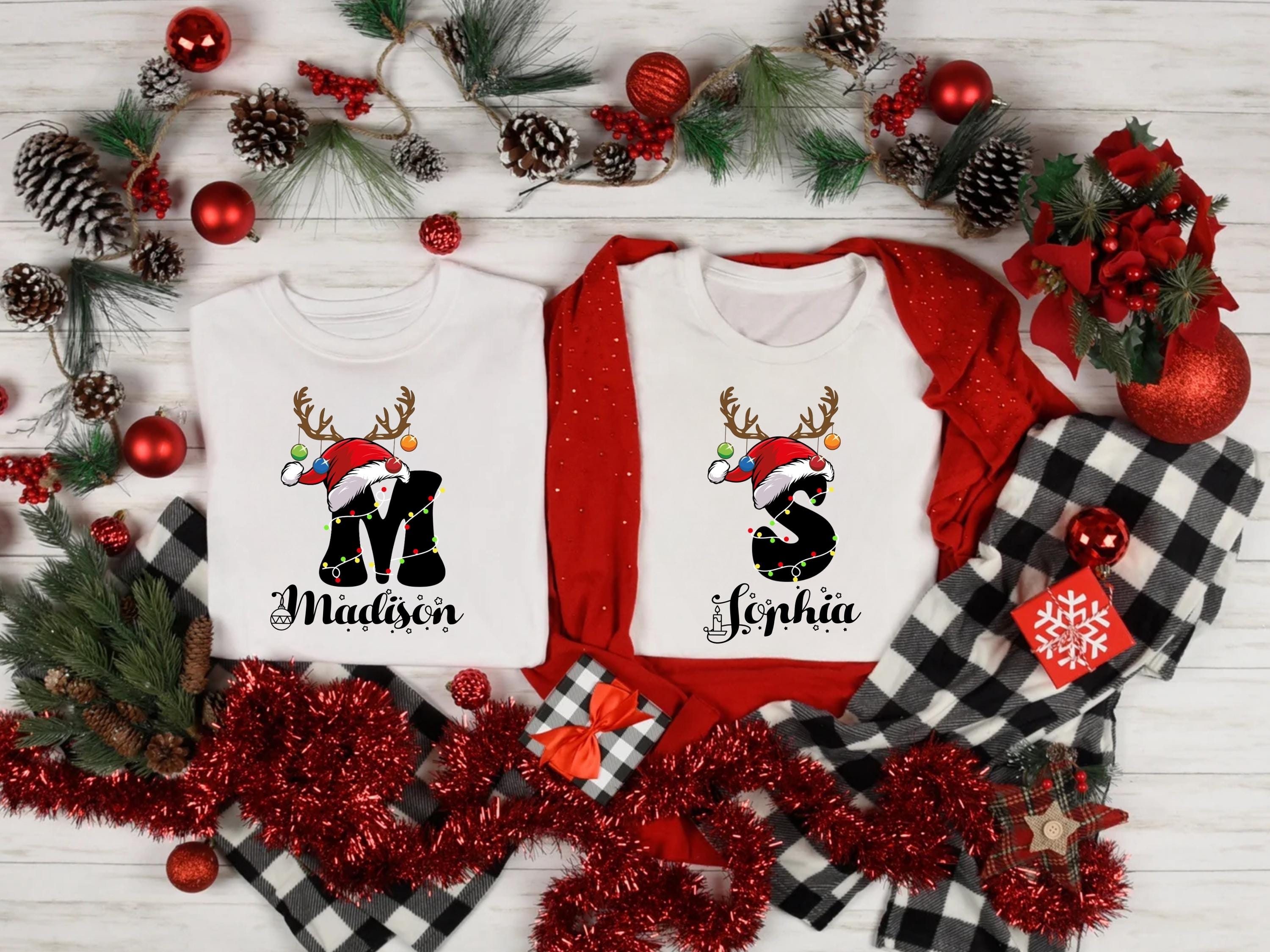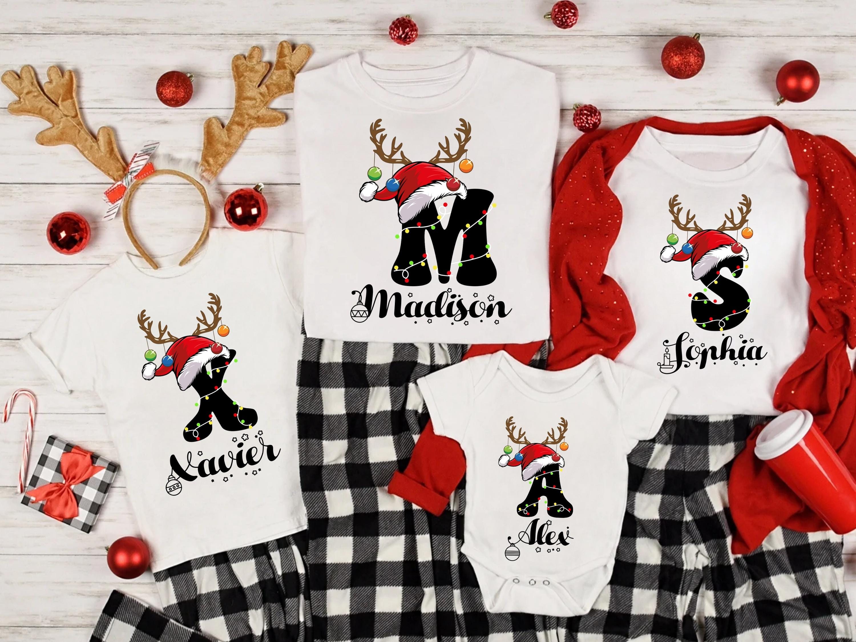 Monogrammed Family Christmas T-Shirt: Personalized Holiday Shirt, Familia Christmas Name Shirts, Xmas names tees