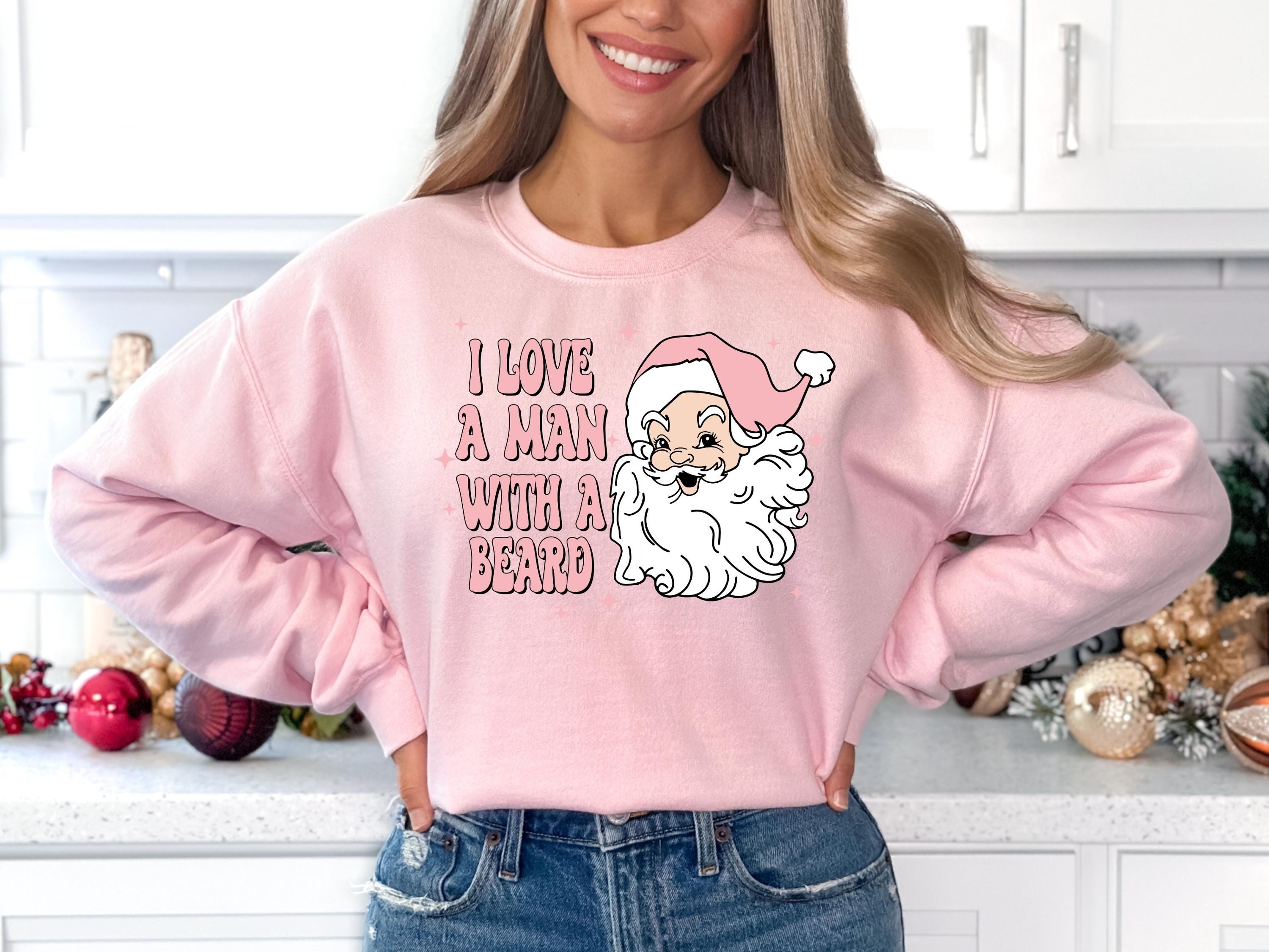 Pink Santa Retro Christmas T-Shirts Sweatshirts for Women Pink Christmas Matching Family Sweaters Pink Vintage Holiday Crewneck Group Party