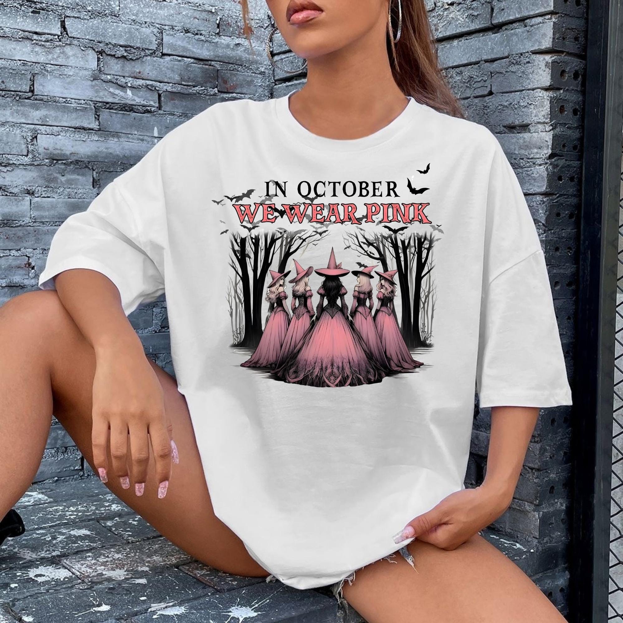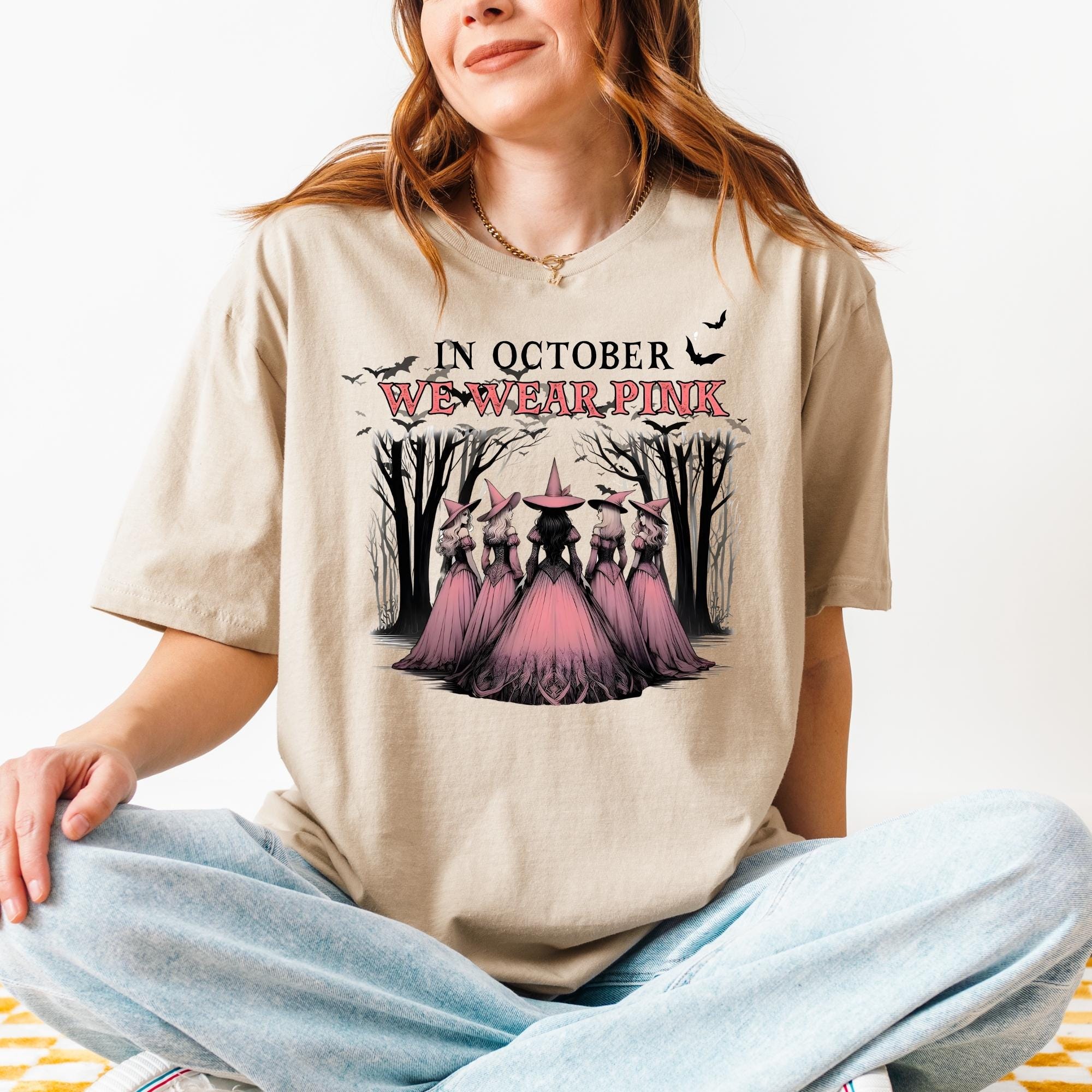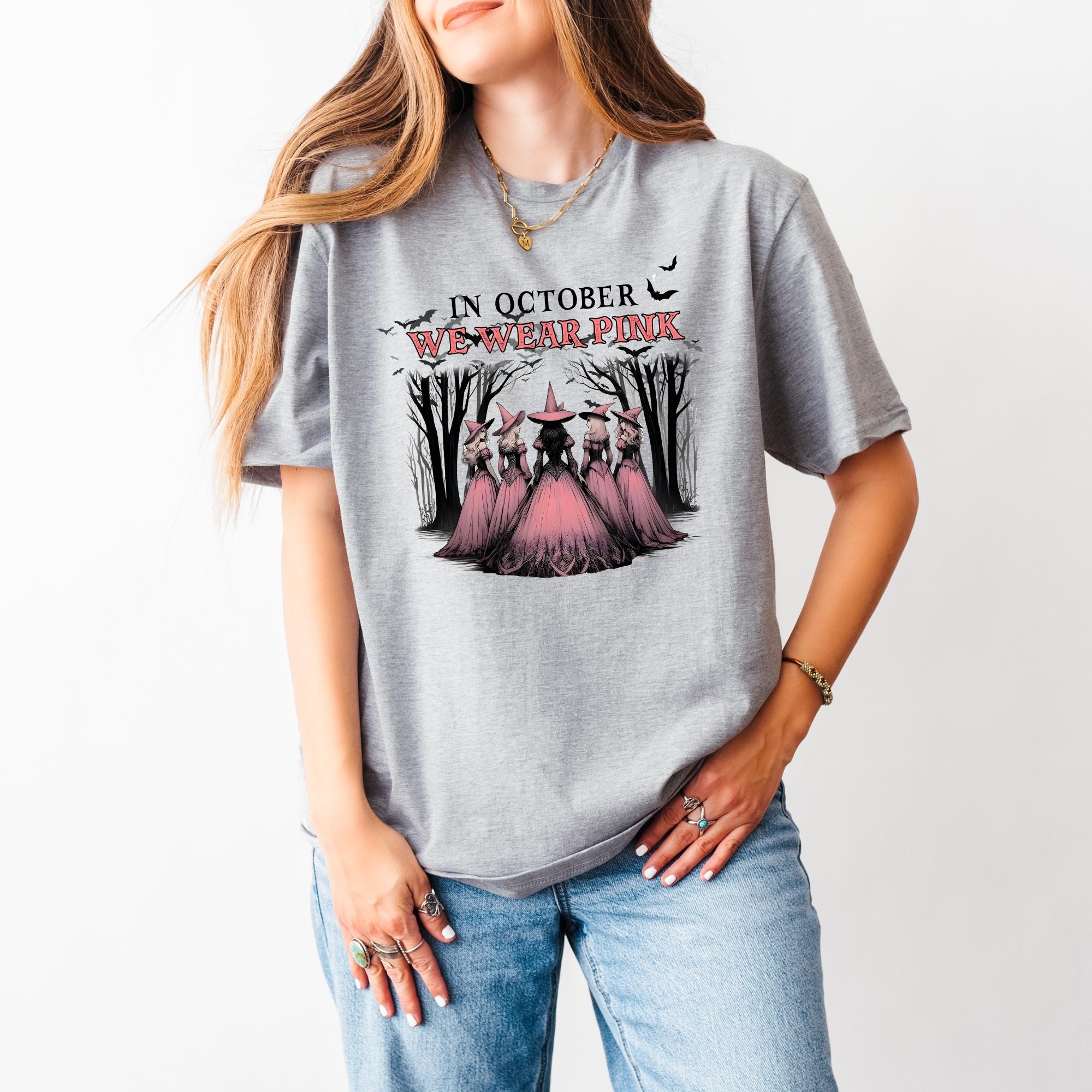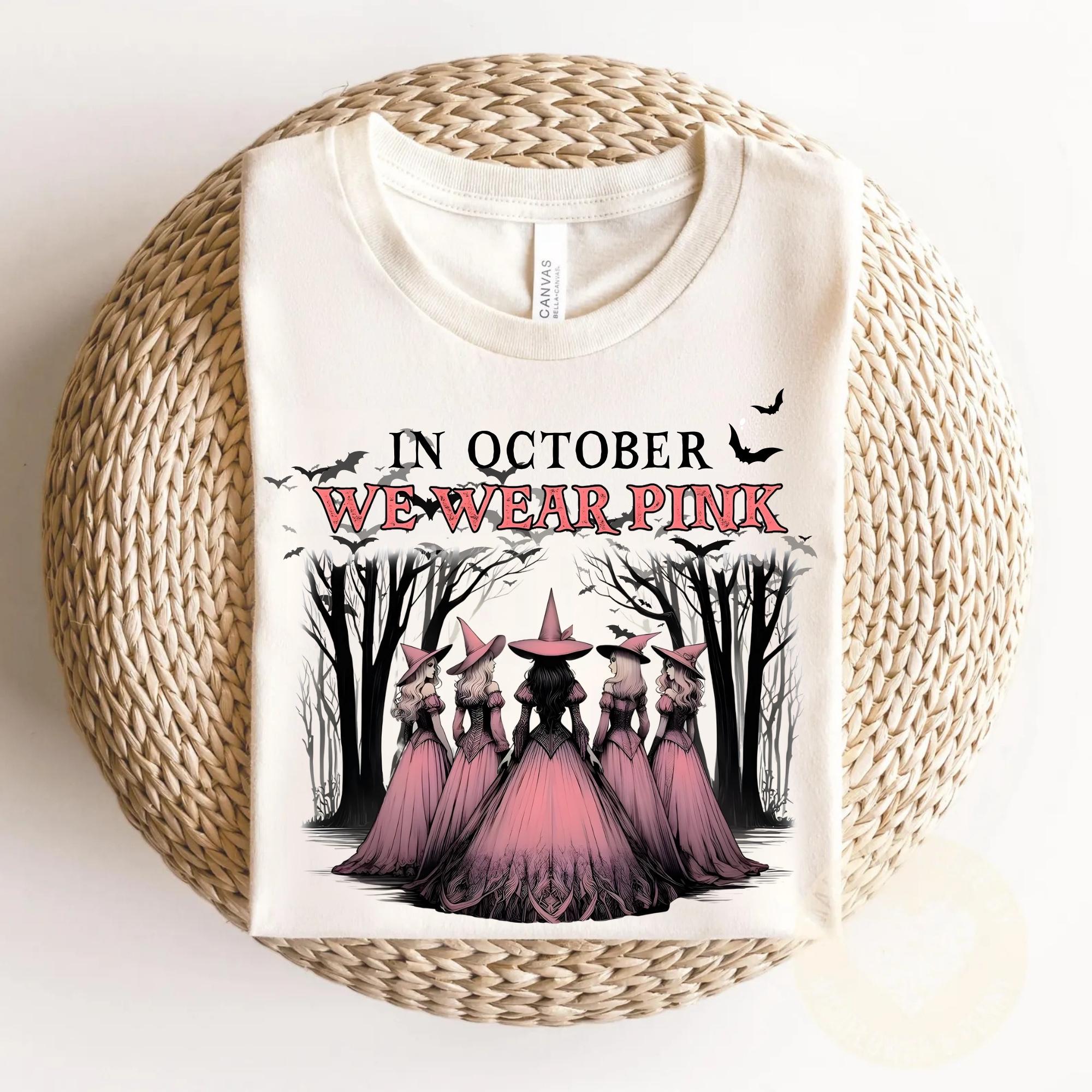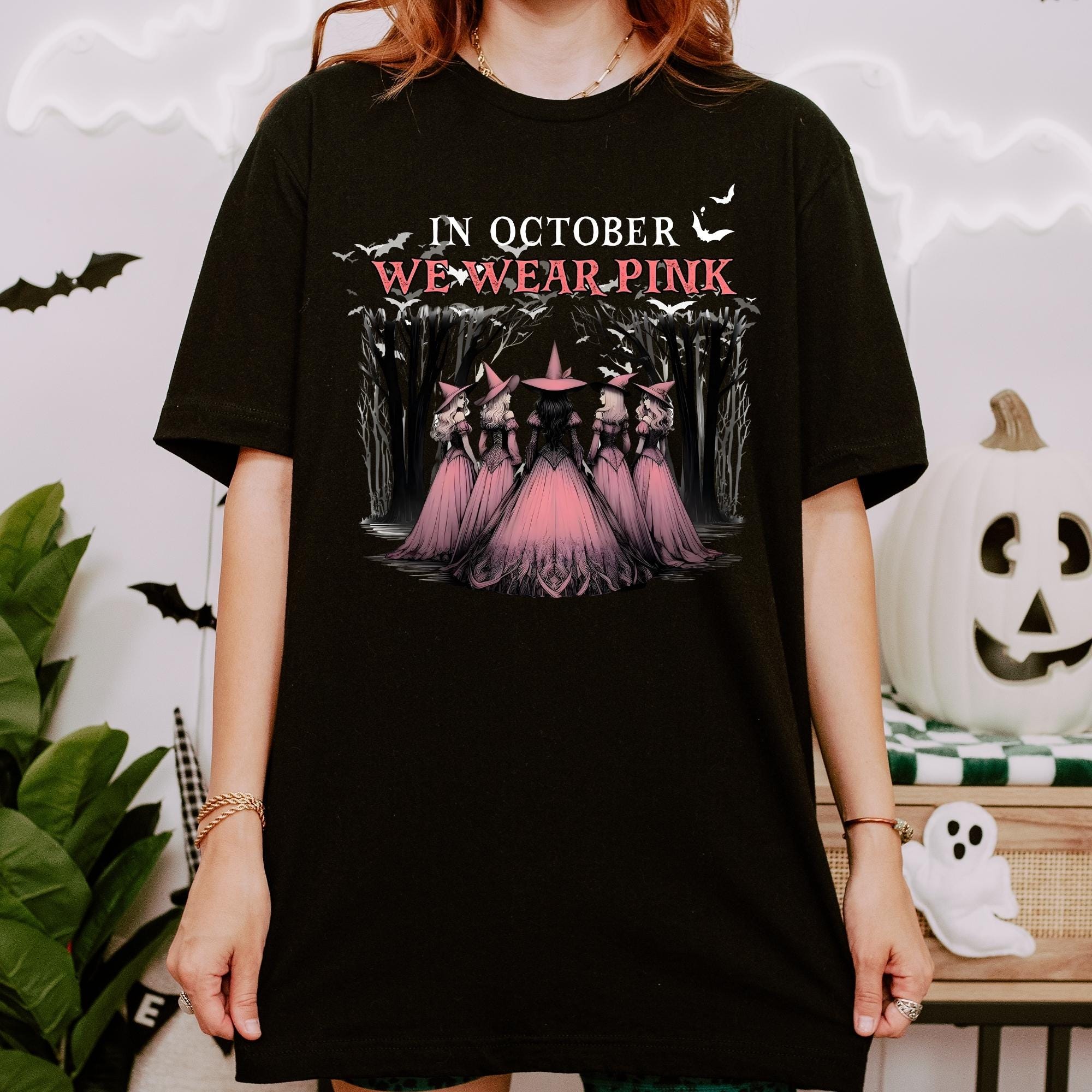 In October We Wear Pink Shirt, Halloween Breast Cancer Awareness Tee, Halloween Witch Sweat, Witches Pink Month T-Shirt, We Wear Pink Shirt