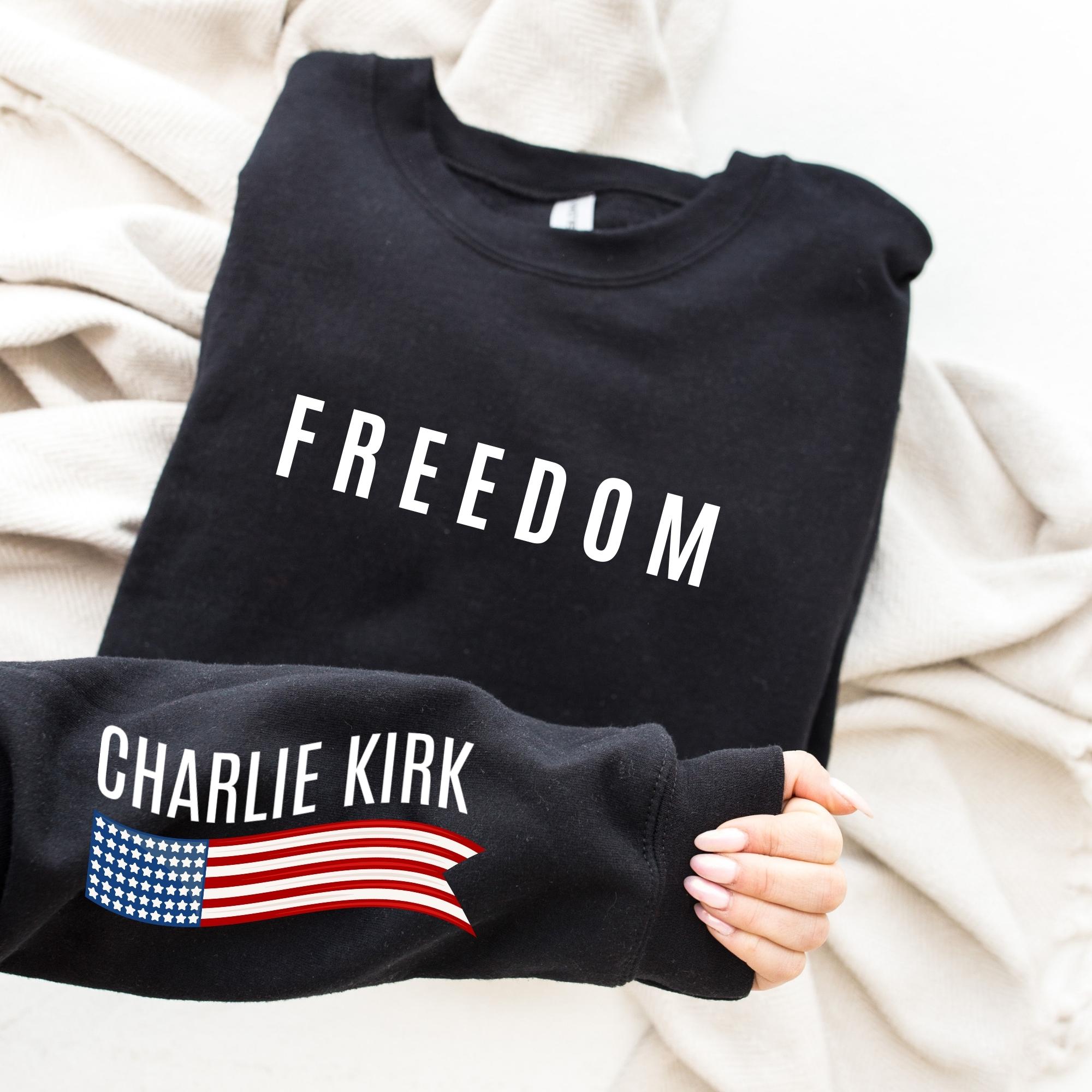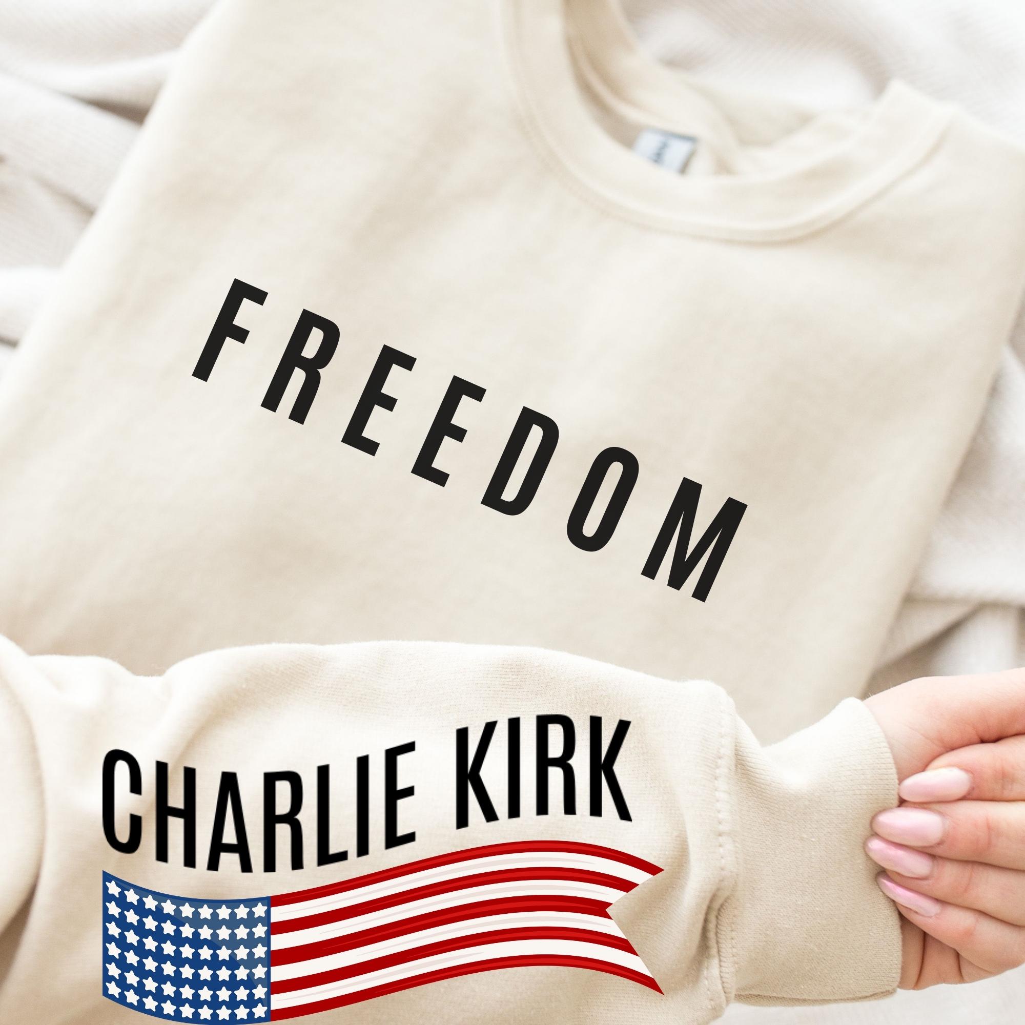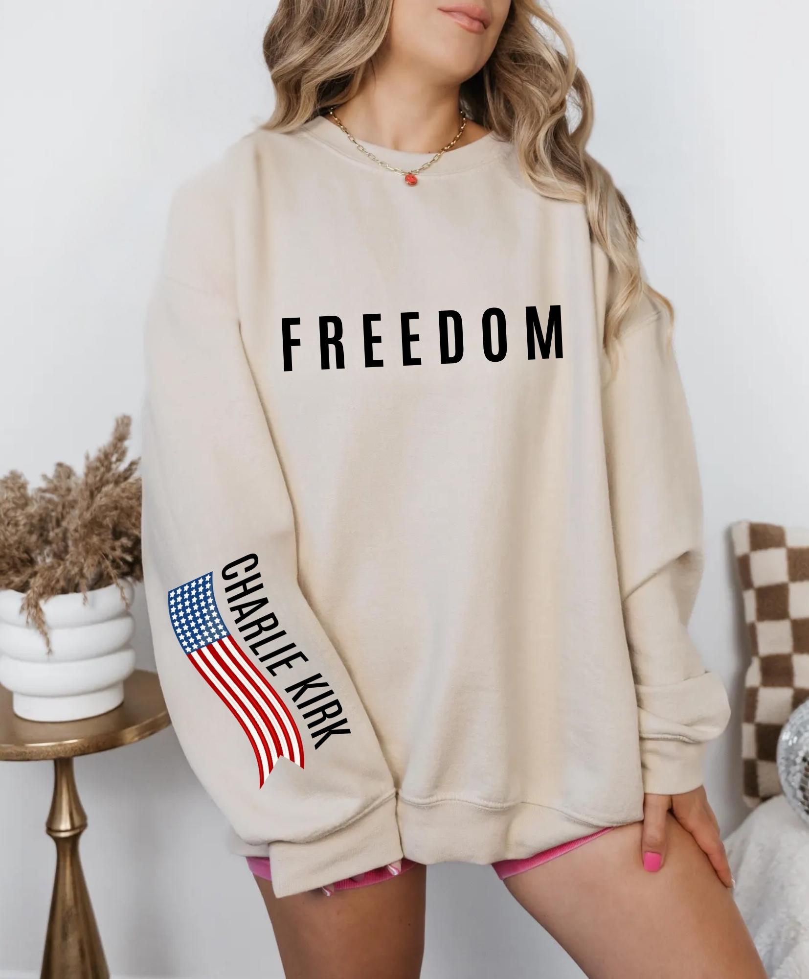 Sleeve Design Charlie Kirk Freedom Sweatshirt, USA Flag Hoodie, Charlie Kirk Sweatshırt, Political Sweatshirt