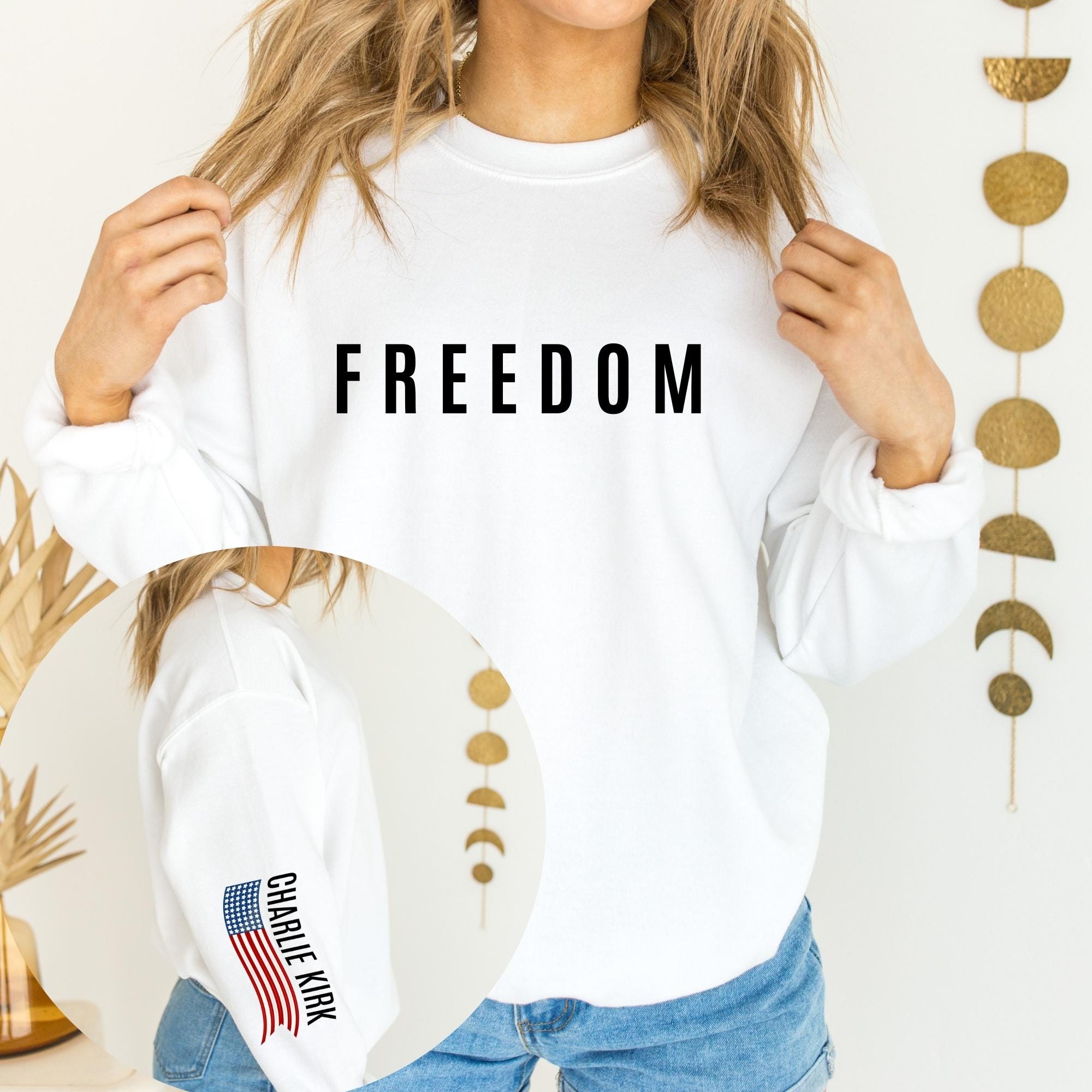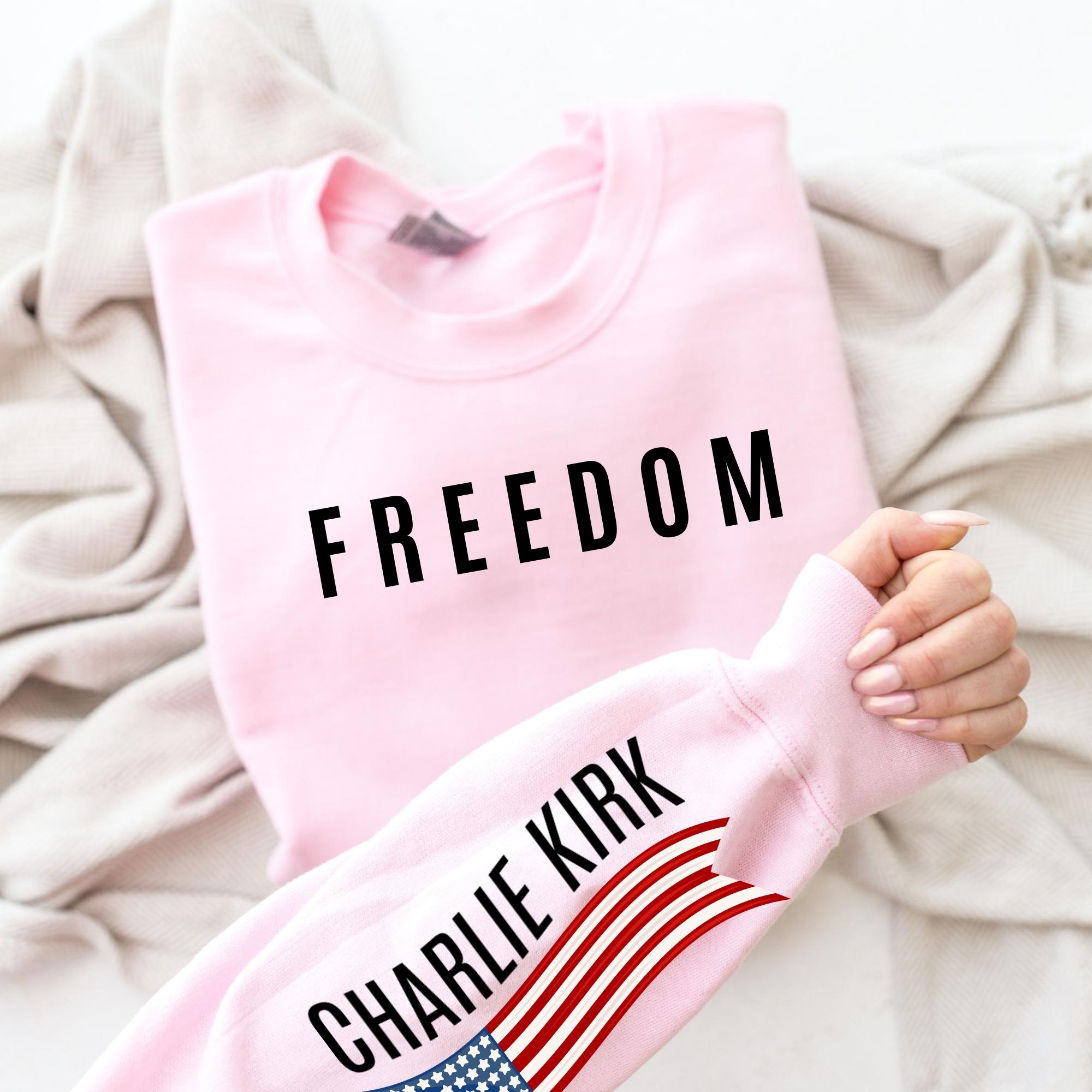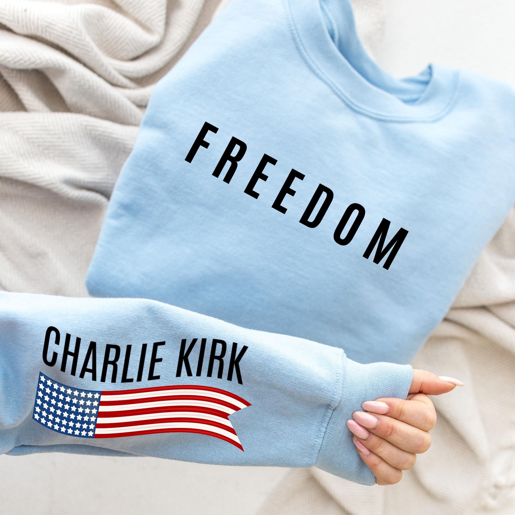 Sleeve Design Charlie Kirk Freedom Sweatshirt, USA Flag Hoodie, Charlie Kirk Sweatshırt, Political Sweatshirt