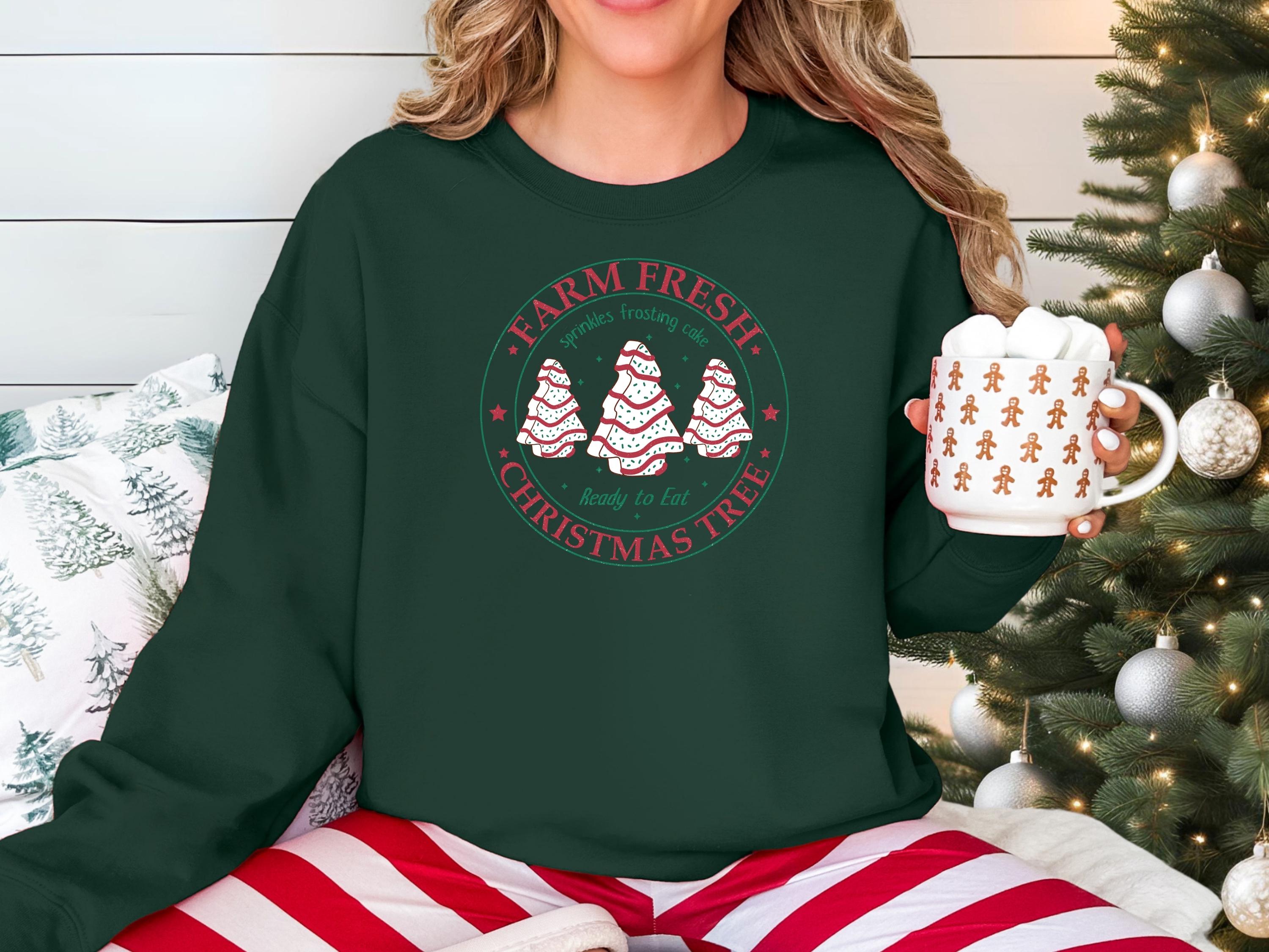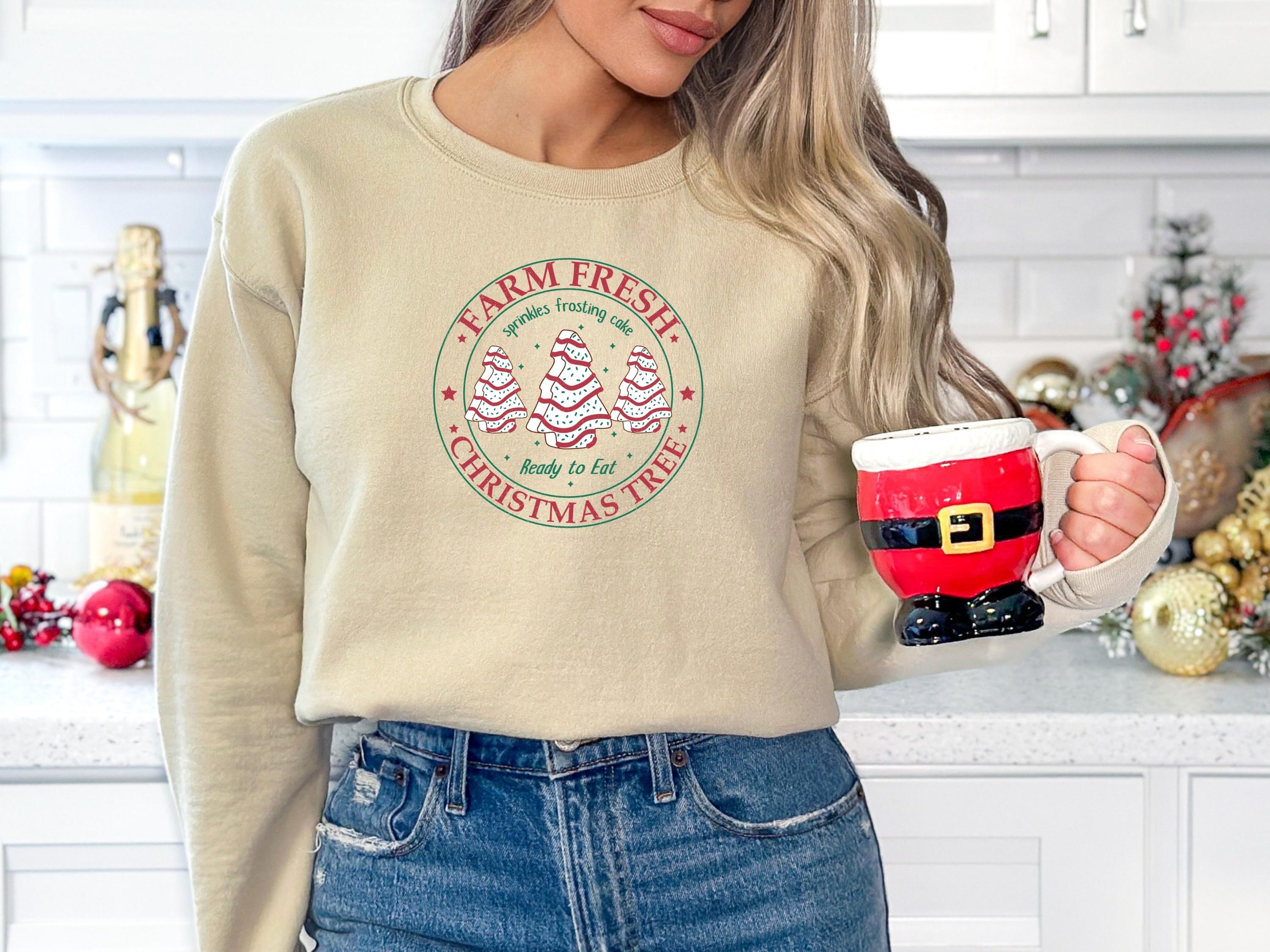 Farm Fresh Christmas Tree Sweatshirt, Christmas Tree Cake Hoodie, Christmas Cake Sweatshirt, Christmas Crewneck, Christmas Shirt For Women