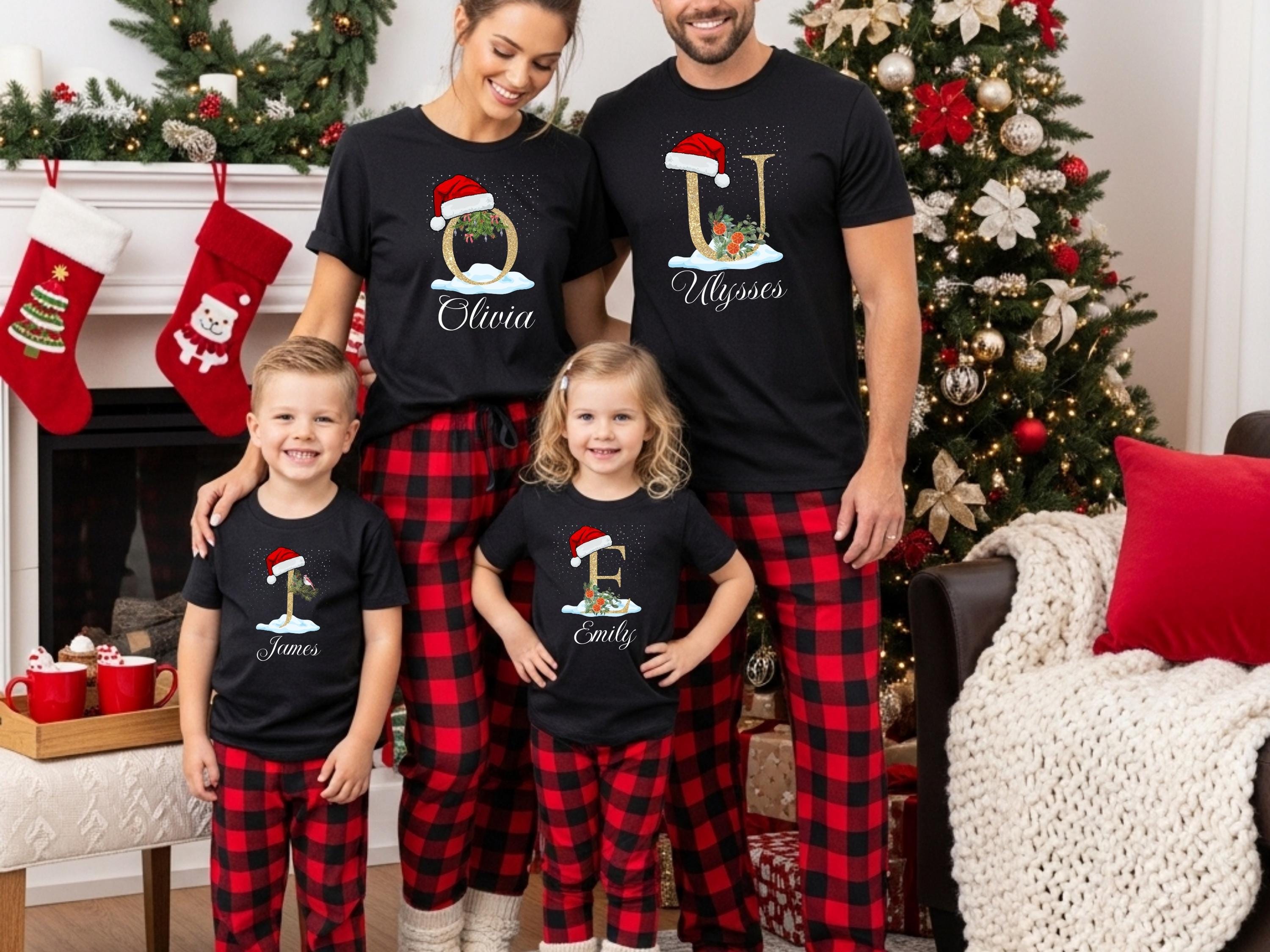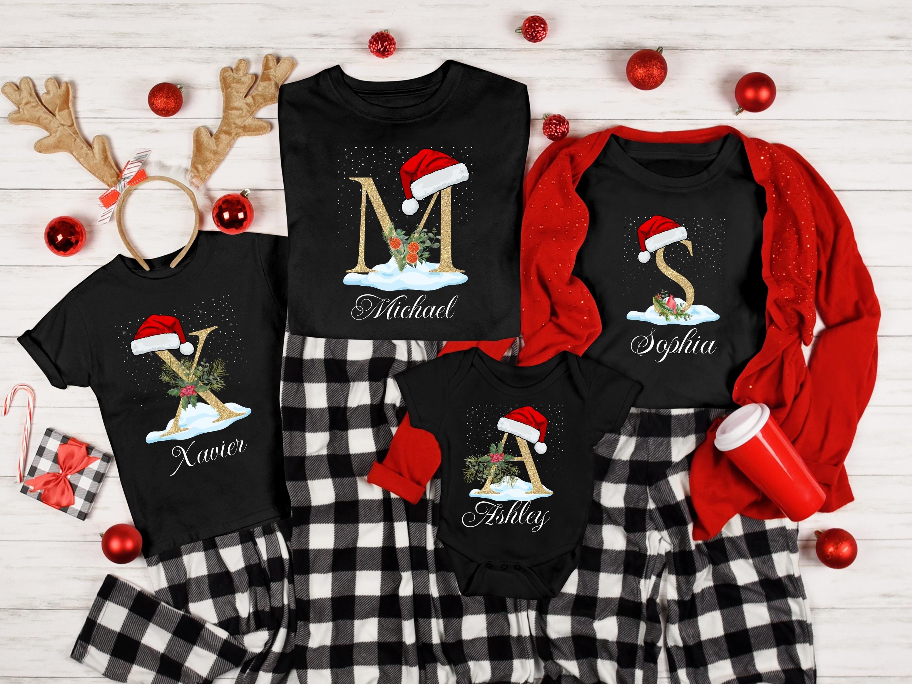 Family Christmas Shirt, Christmas Name Custom Shirt, Funny Family Xmas Pjs, Christmas Custom Letter Shirt, Personalized Christmas Family Tee