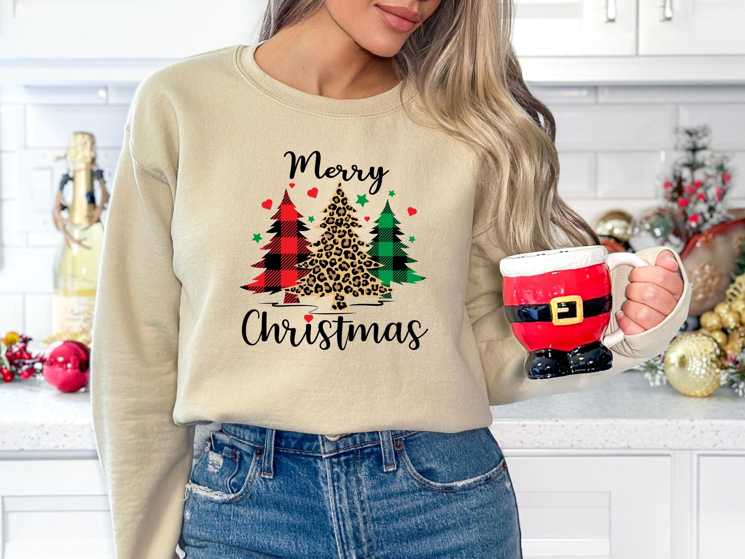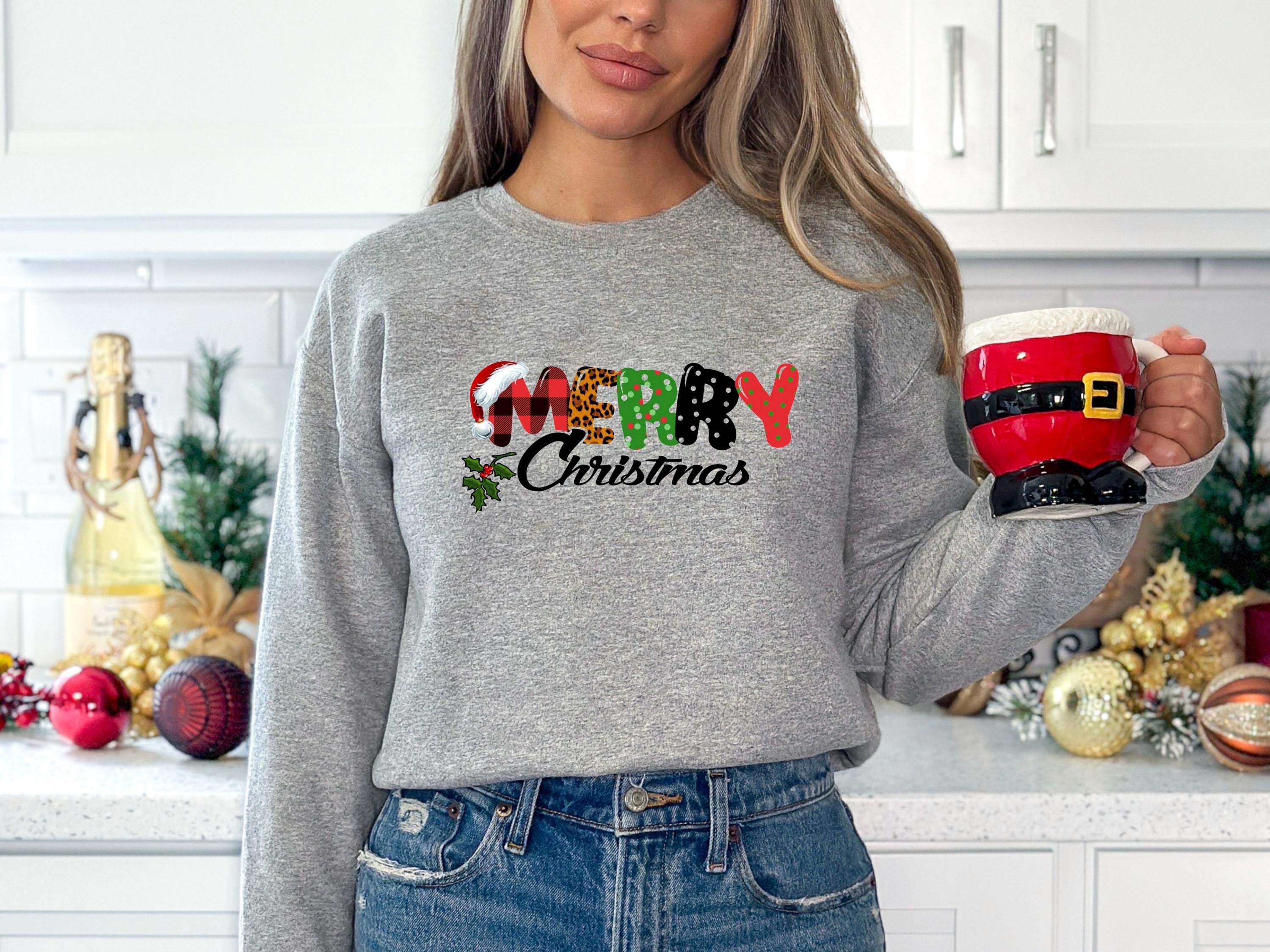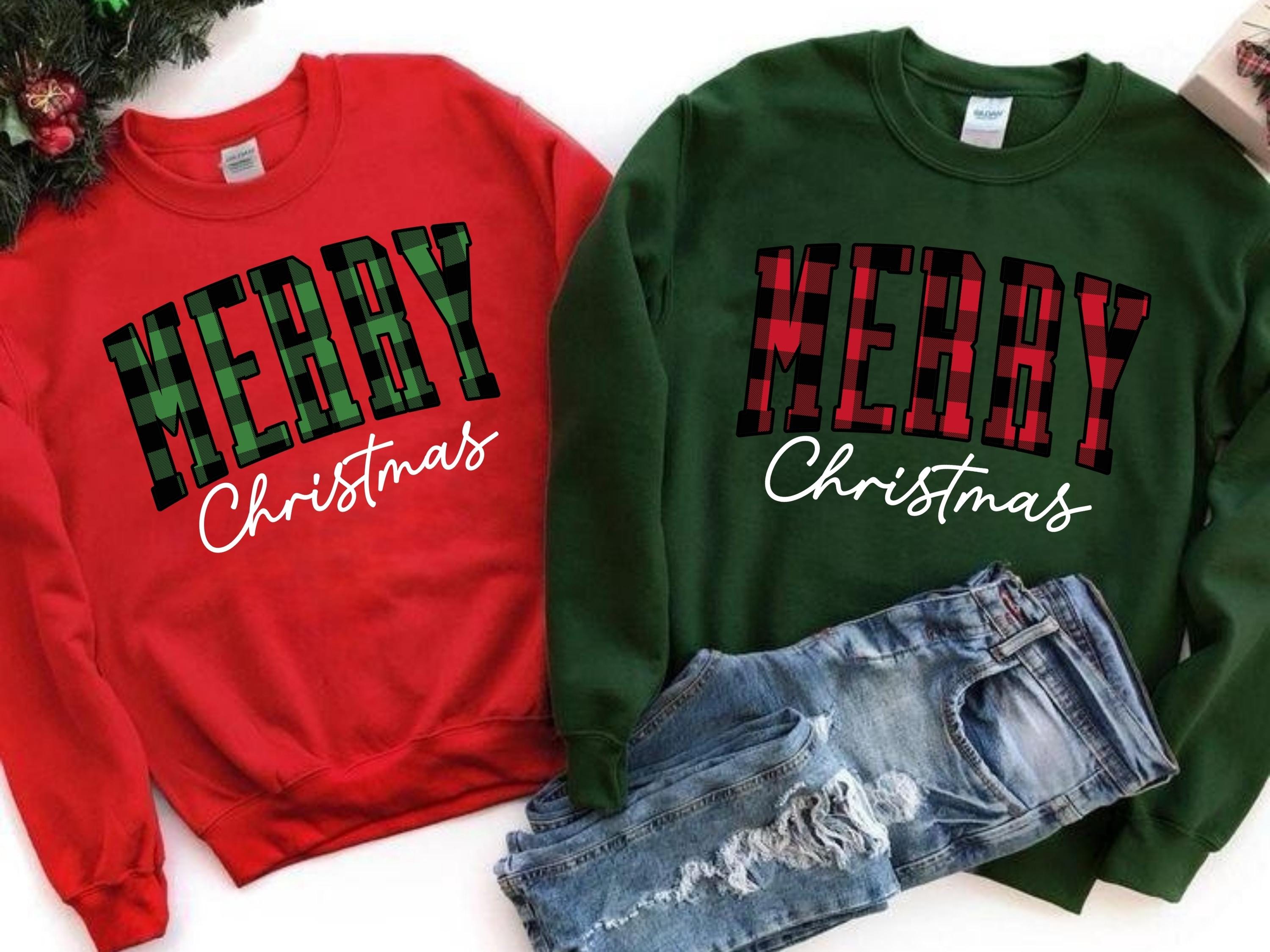 Merry Christmas Sweatshirt, Buffalo Plaid Sweater, Christmas Family crewneck, Xmas Gift Idea, Woman Xmas Shirt, Cute Winter Holiday Sweater