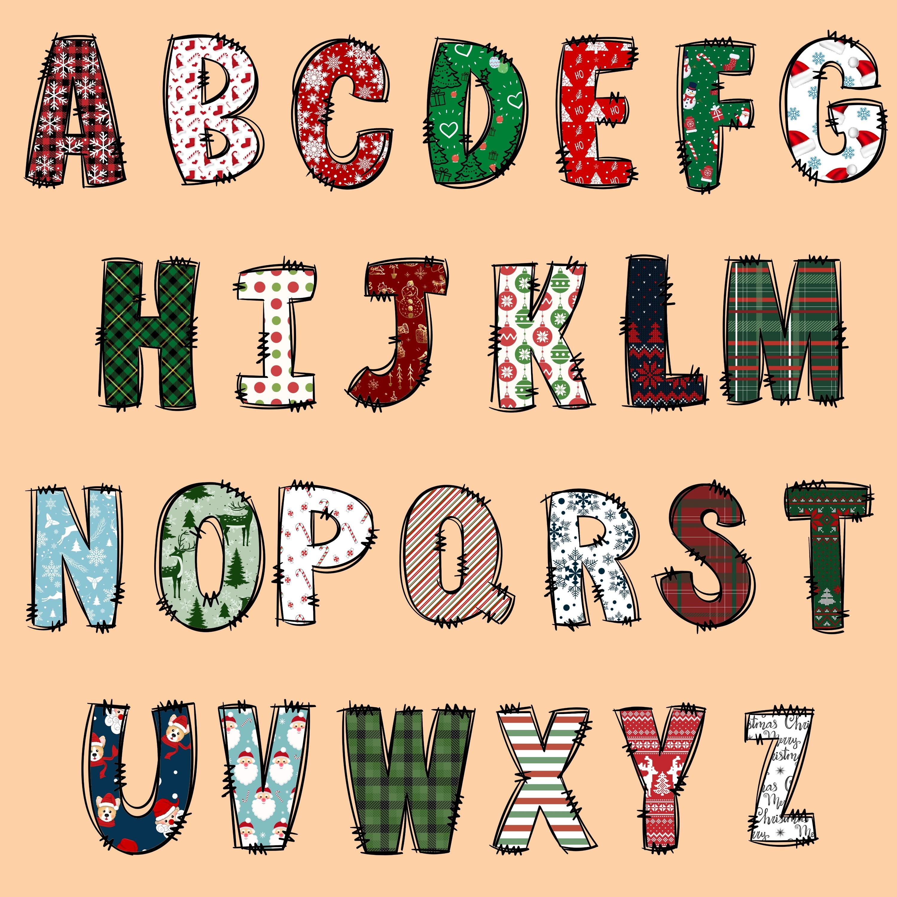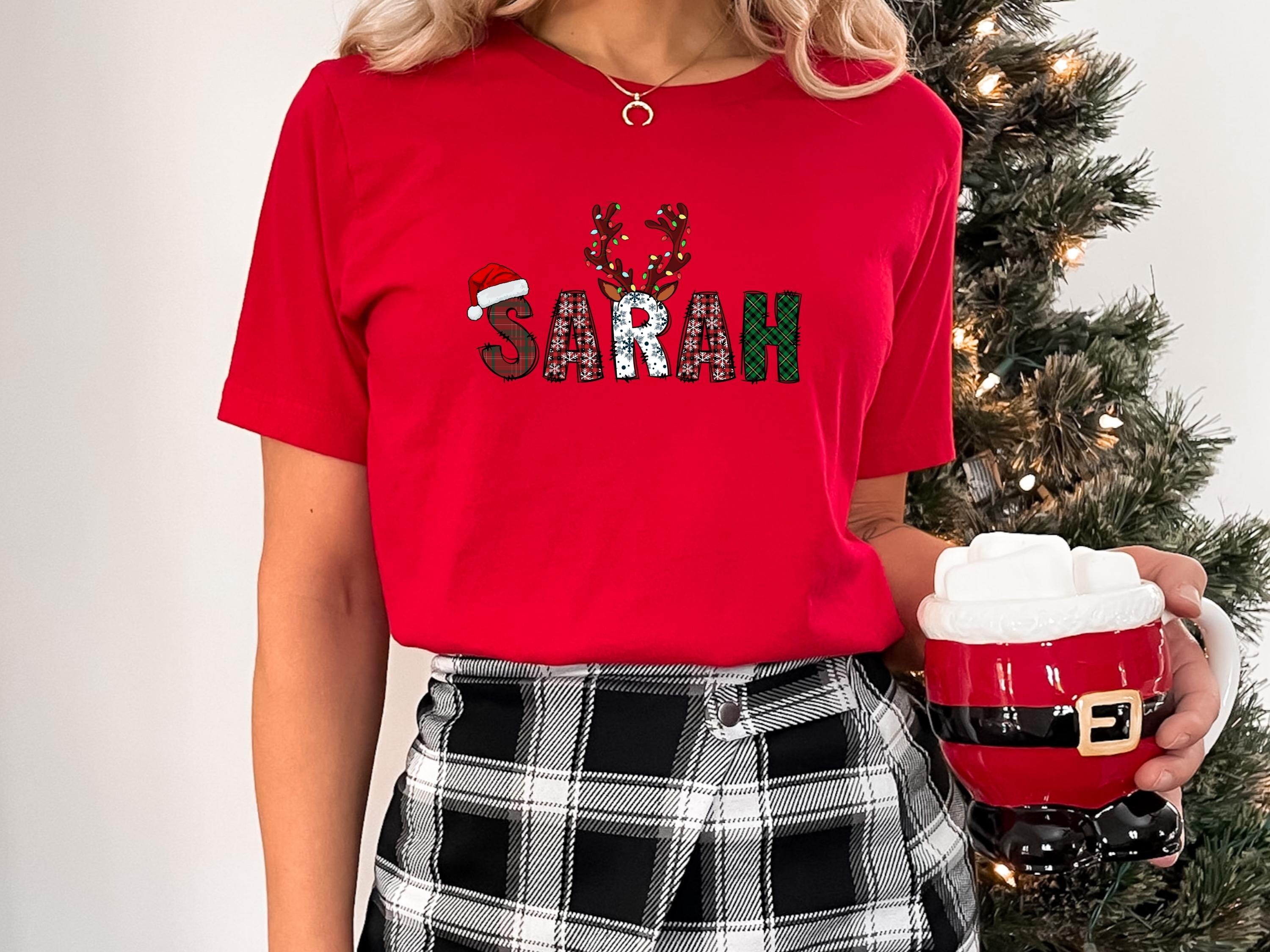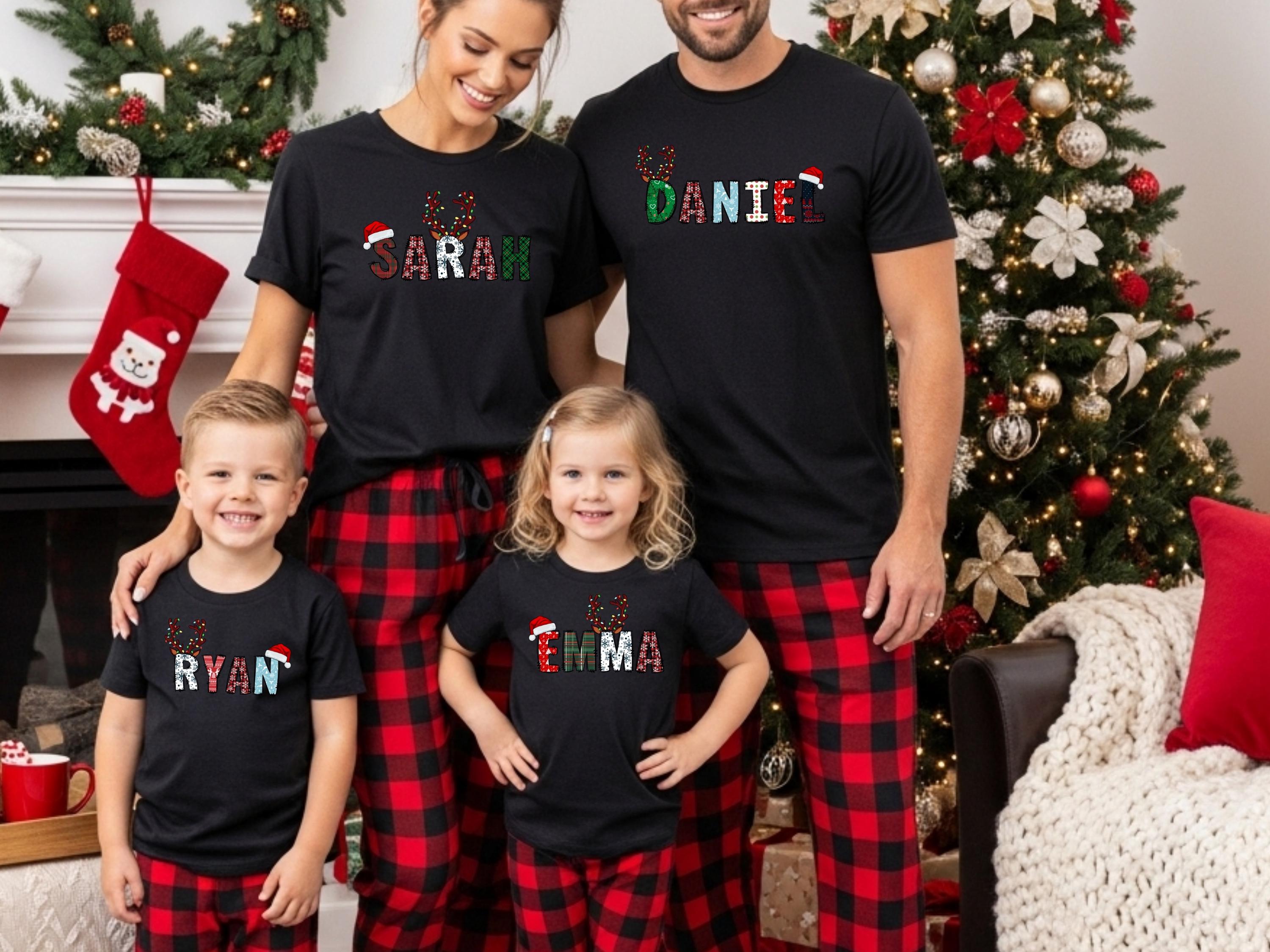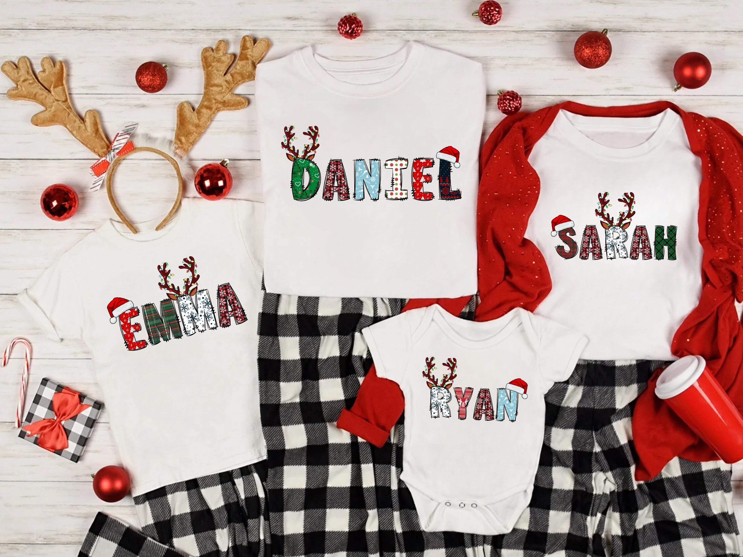 Family Christmas Name Shirt, Doodle Alphabet Family Christmas Shirt, Personalized Christmas Family T-Shirt, Custom Christmas Shirt With Name