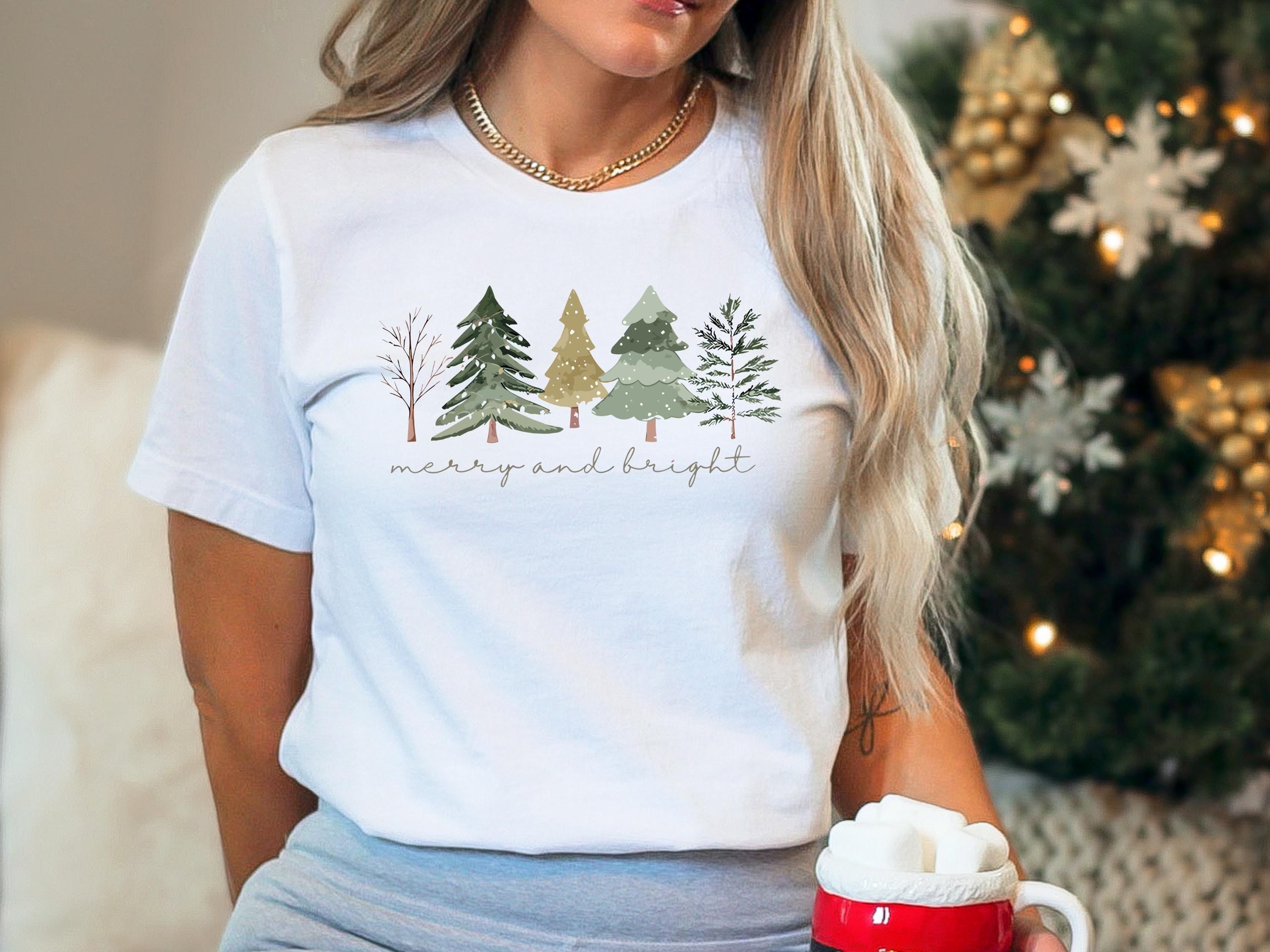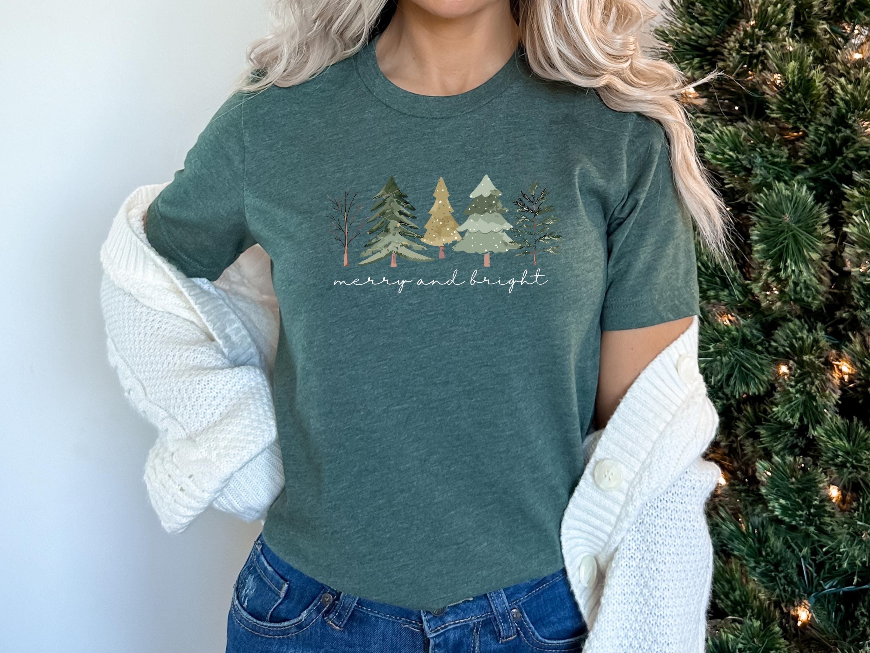 Merry and Bright Trees, Women's Christmas Shirt, Womans Holiday Shirt,Christmas Gift,Chic Winter Shirt,Cute Holiday Tee,Christmas Tree Shirt