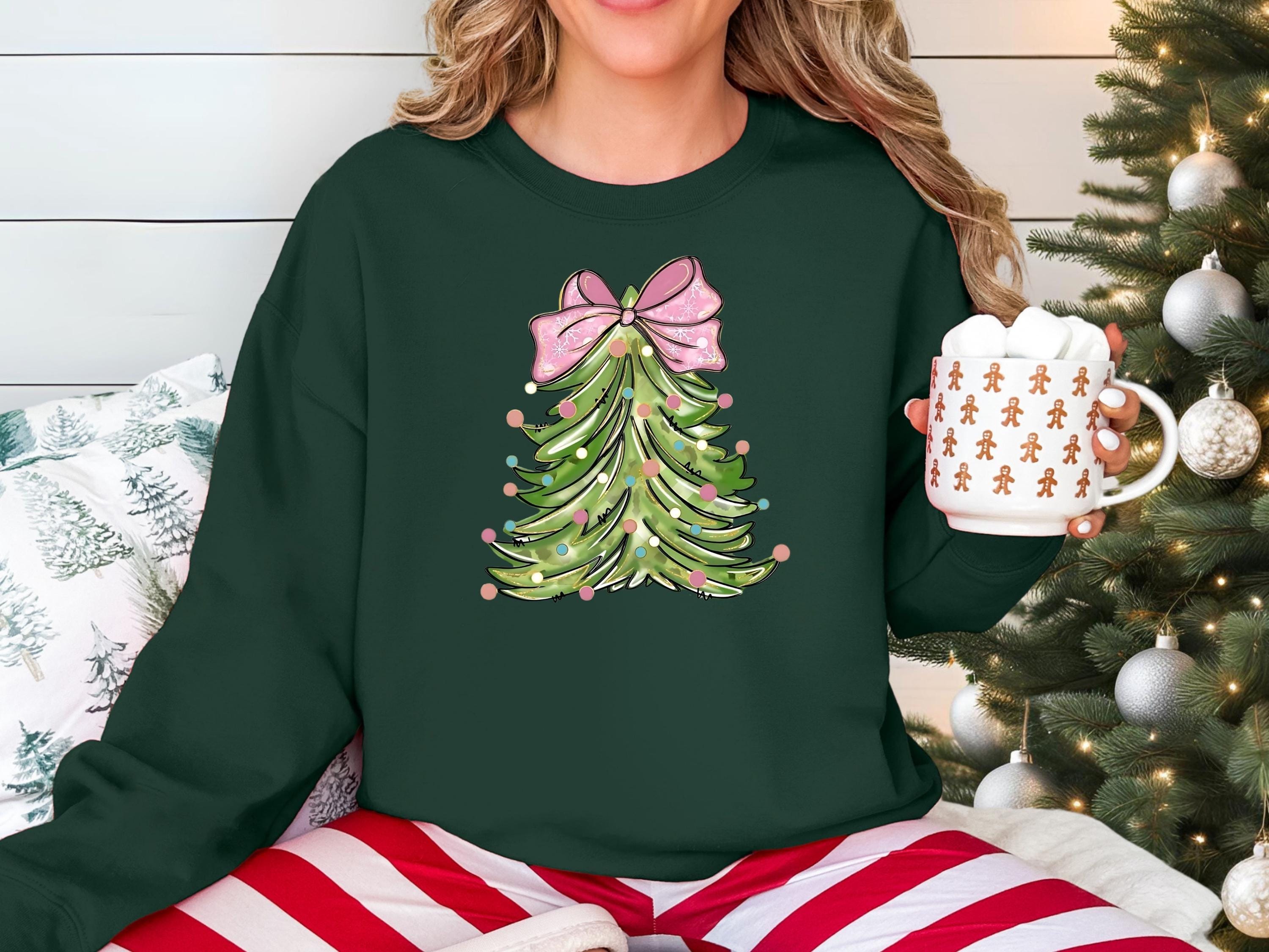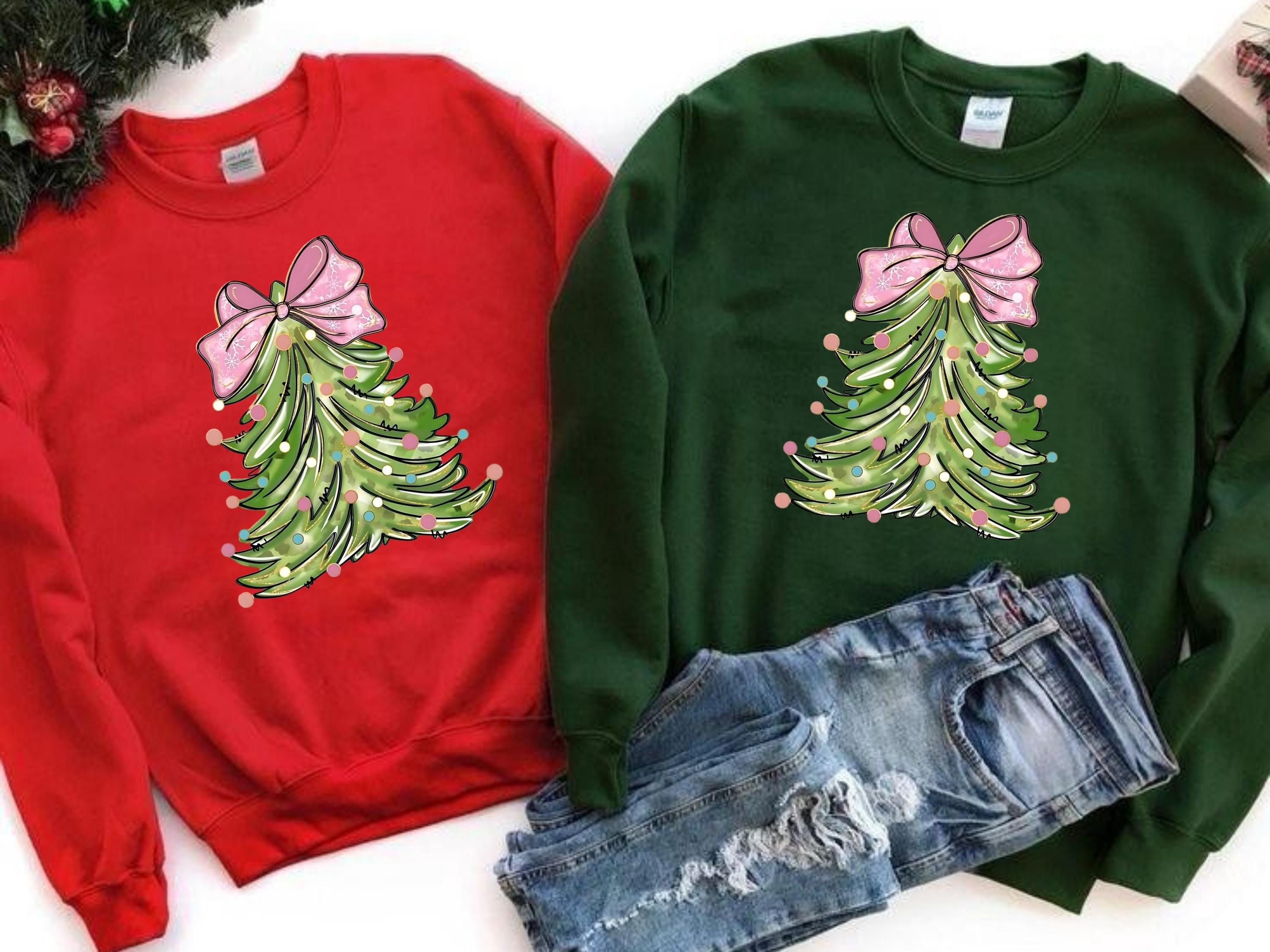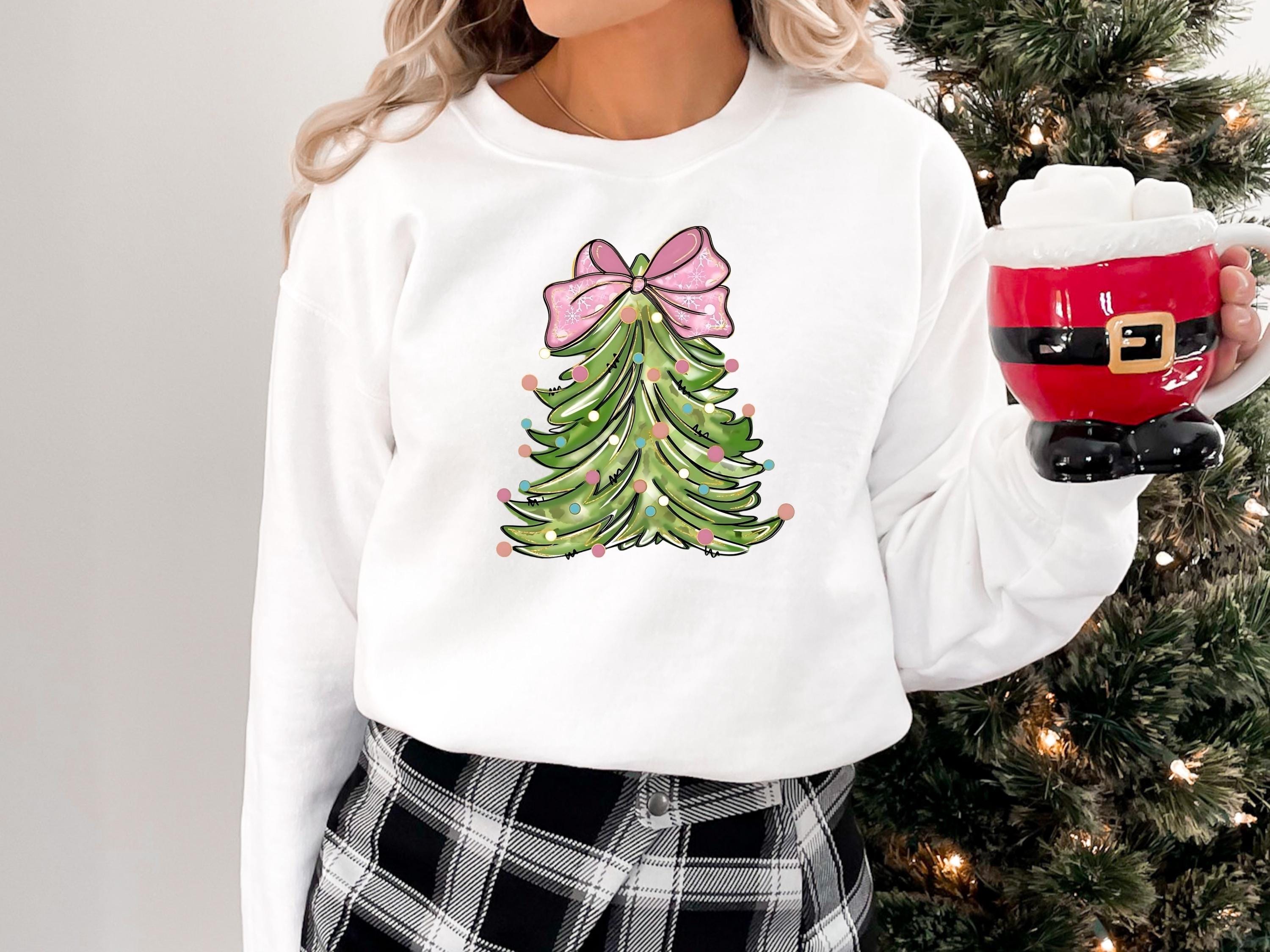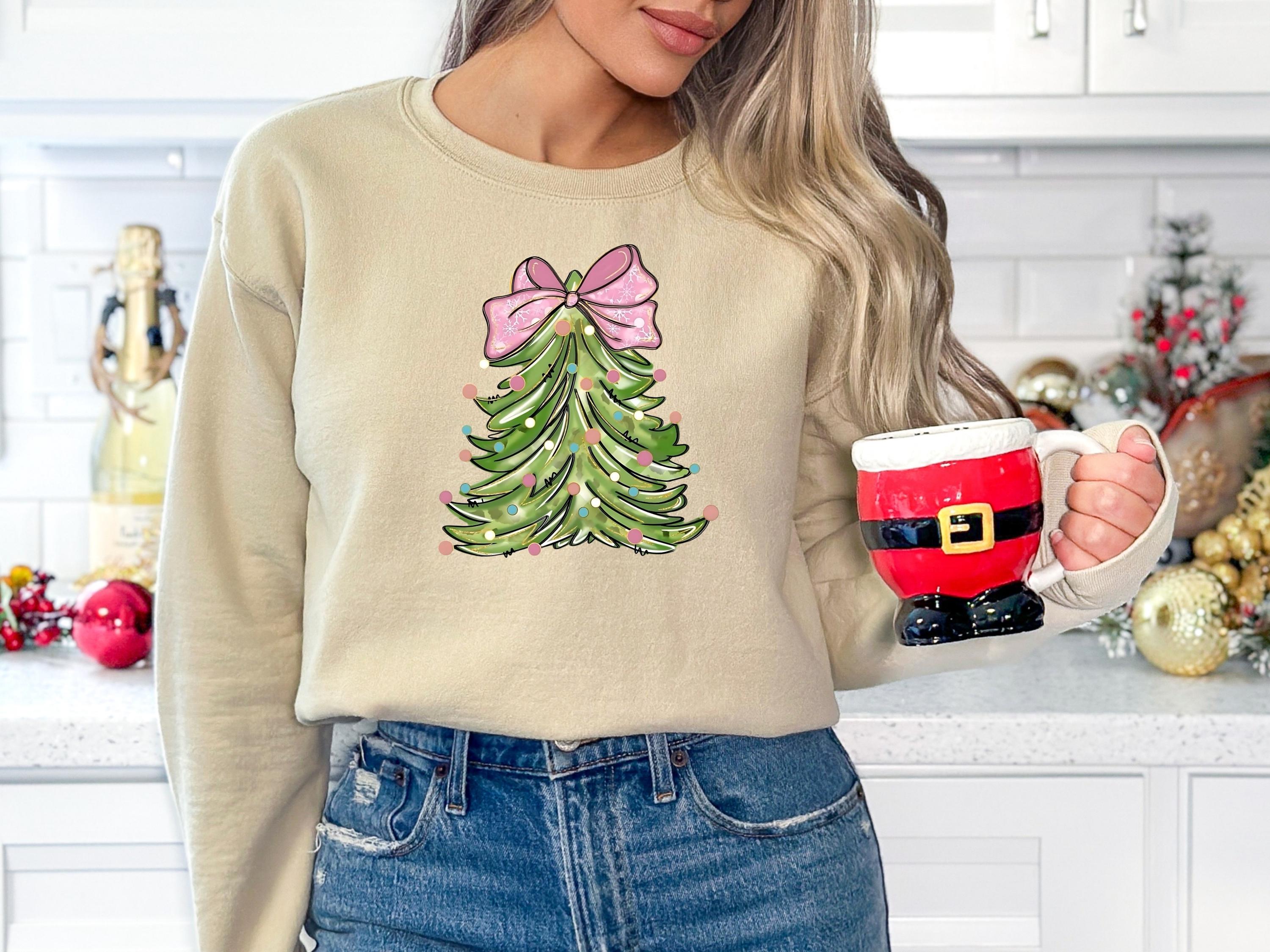 Christmas Tree Bow Shirt, Christmas Sweatshirt for Women, Christmas Tree Tshirt, Christmas Coquette Christmas Shirt