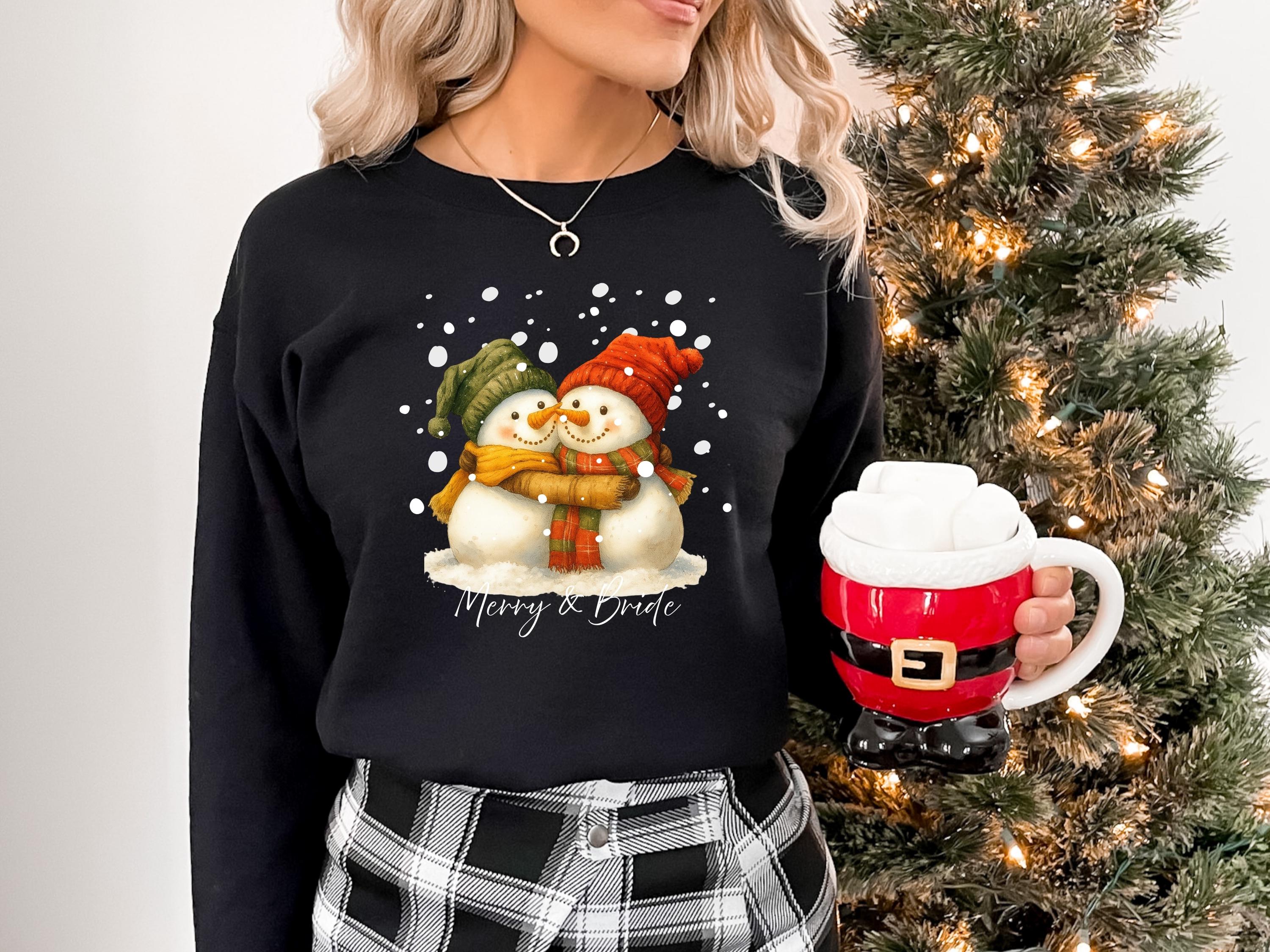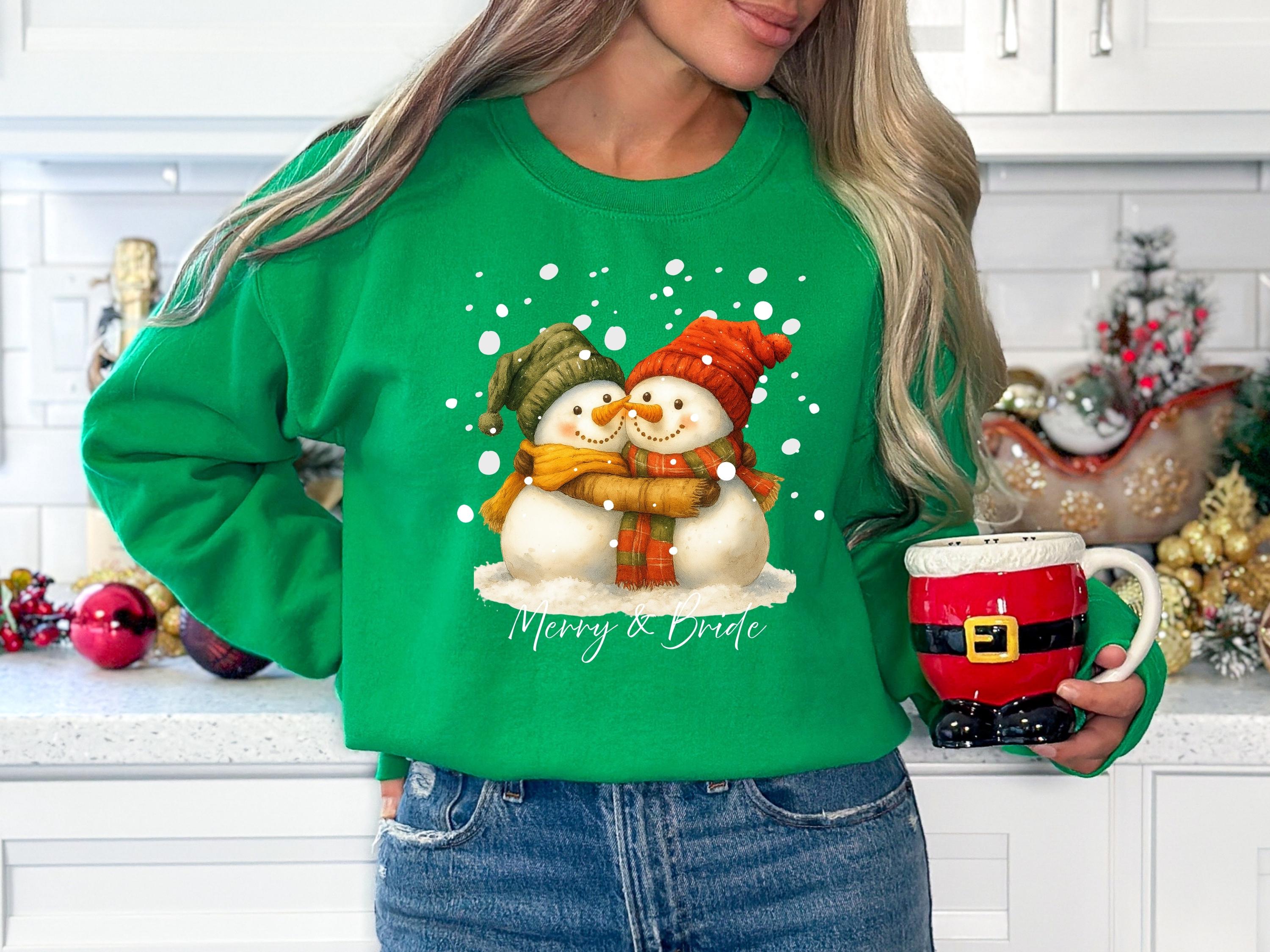 Merry and Bright Snowman, Womens Christmas Shirt, Womans Holiday Shirt, Christmas Gift, Winter Shirt,Cute Holiday Tee, Christmas Snow Hoodie