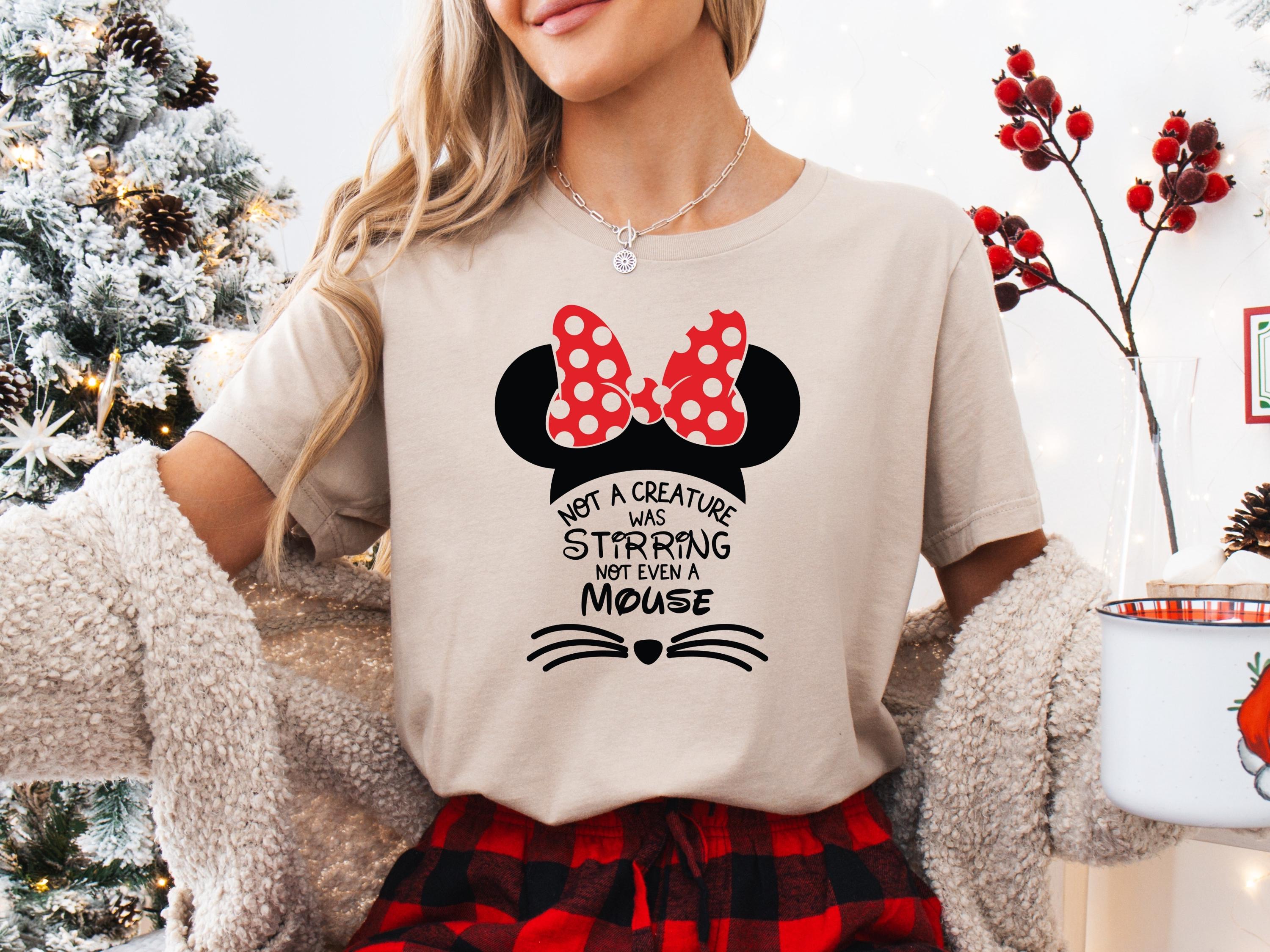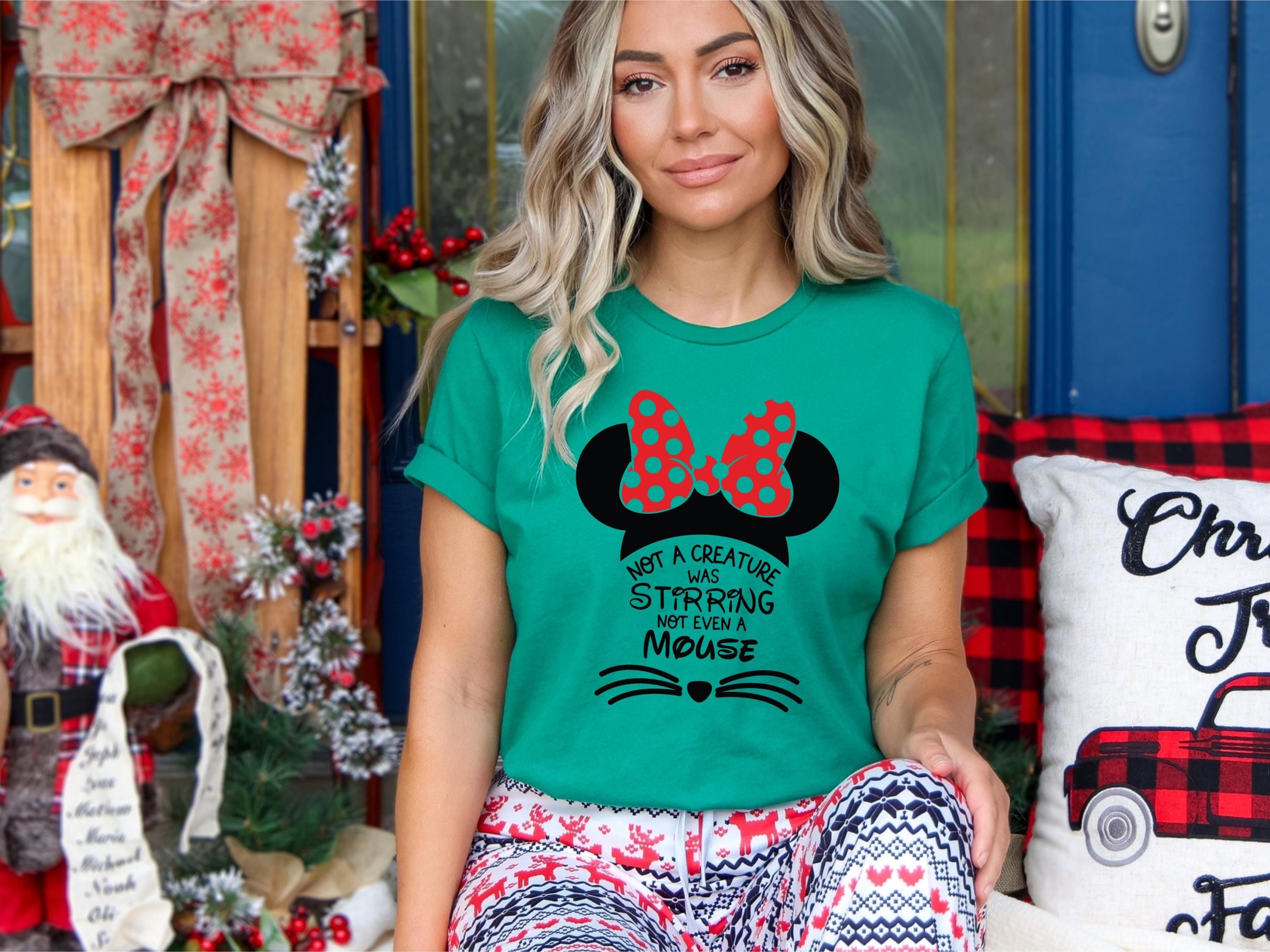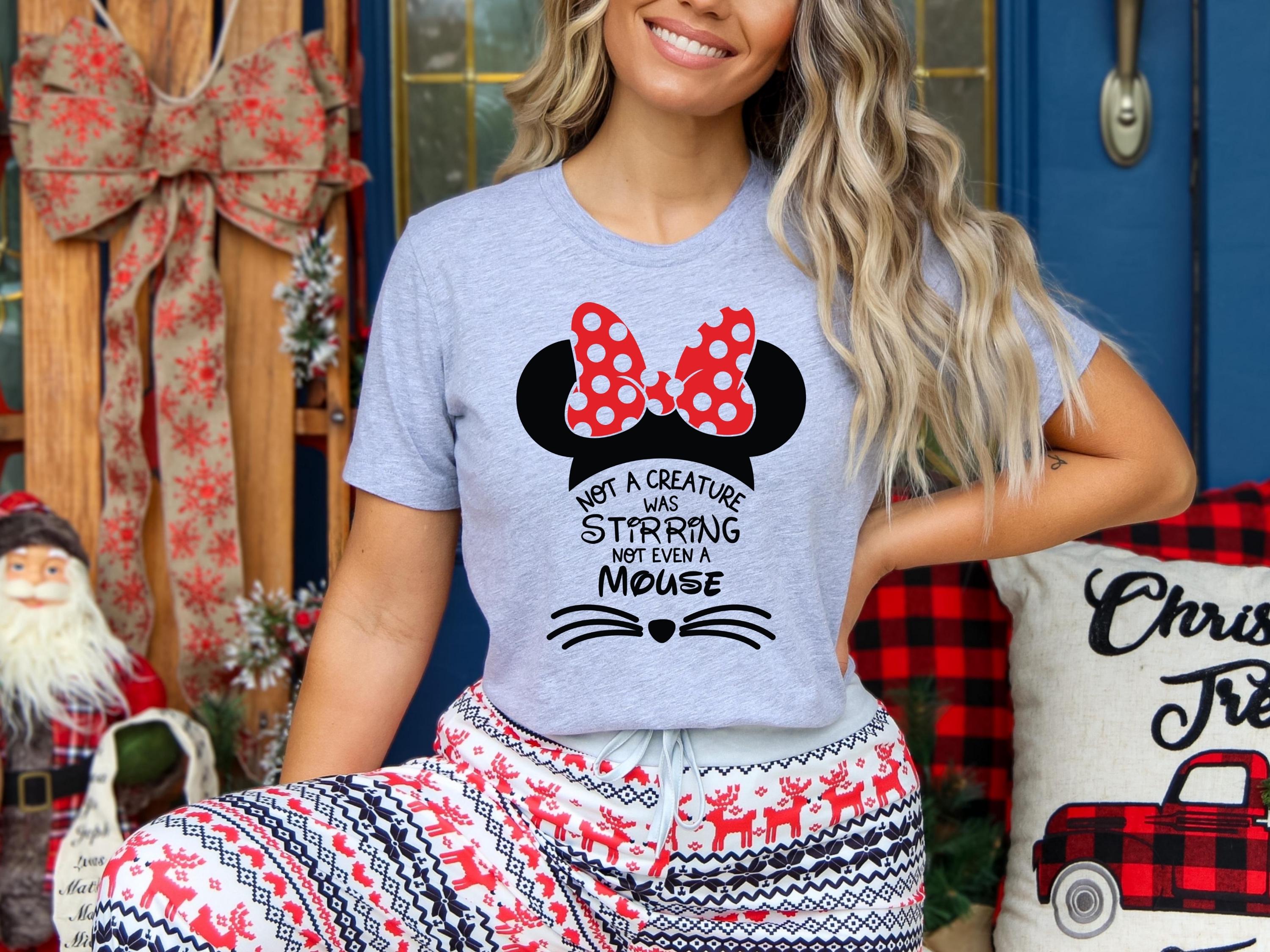 Christmas Graphic T-Shirt โ Cute Mouse Ears with Red Bow โ Holiday Pajama Top โ Xmas Shirt for Women Matching Family Outfit