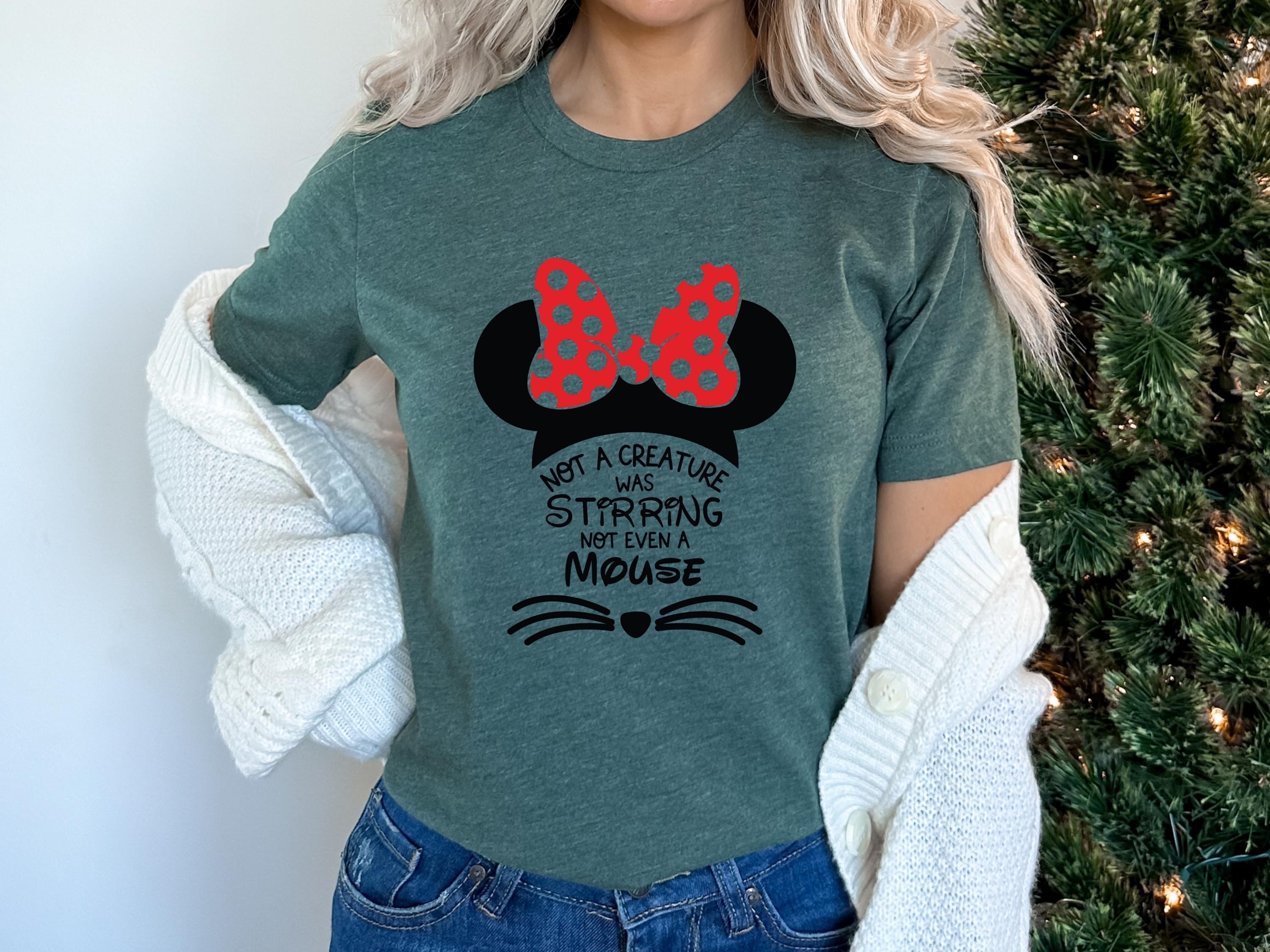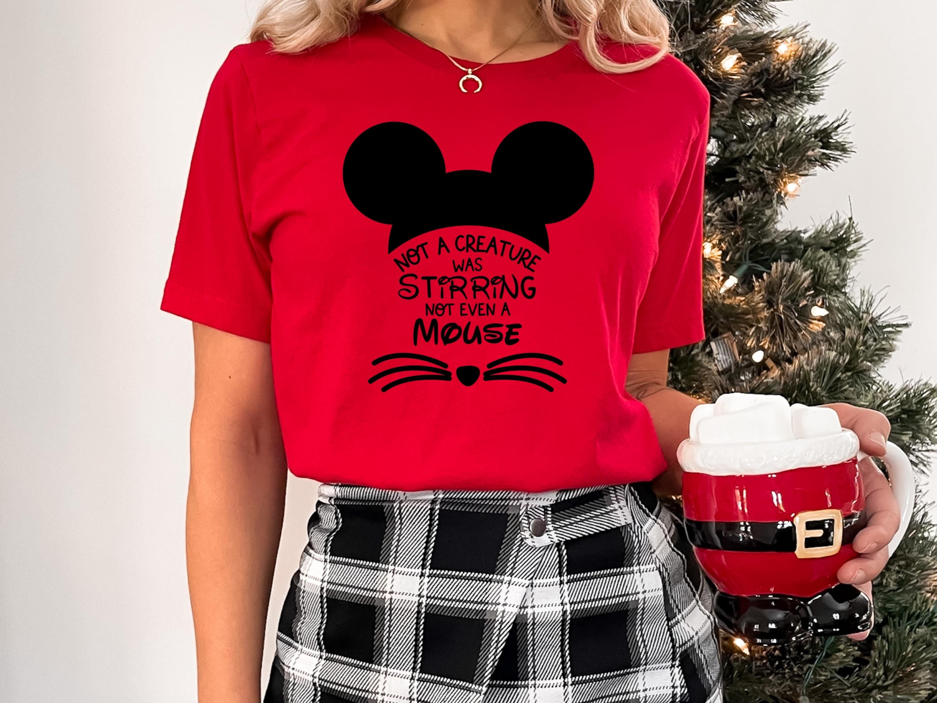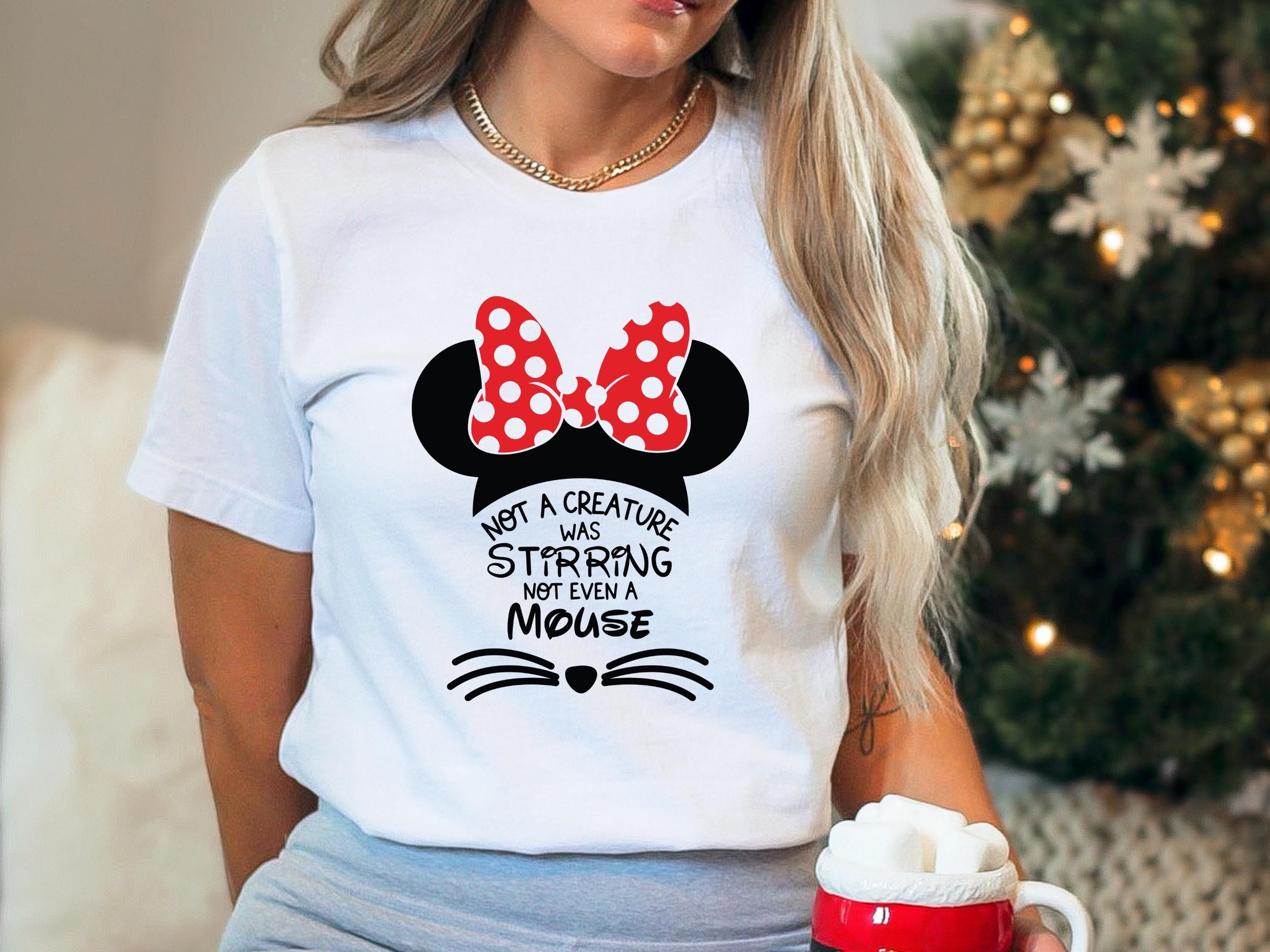 Christmas Graphic T-Shirt โ Cute Mouse Ears with Red Bow โ Holiday Pajama Top โ Xmas Shirt for Women Matching Family Outfit