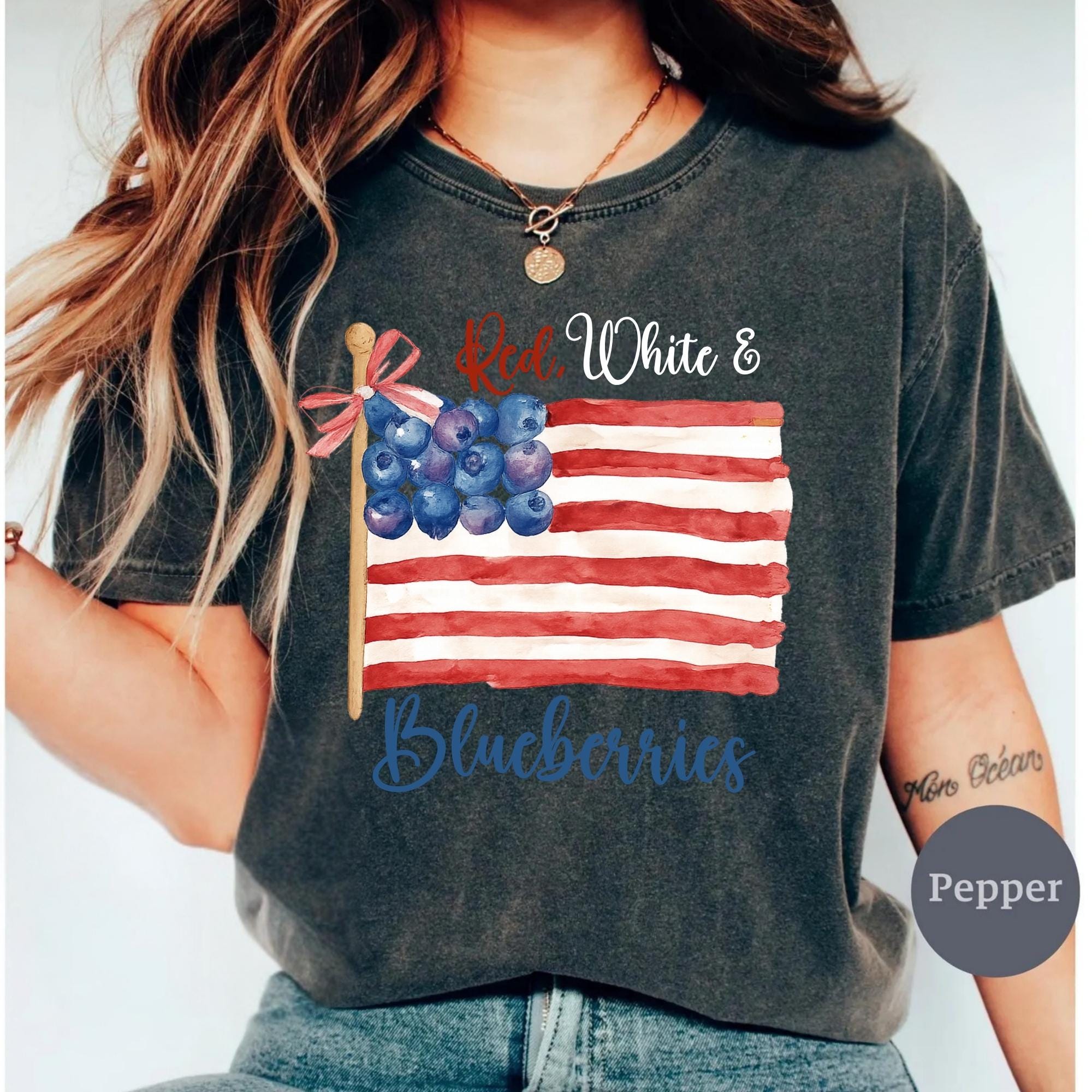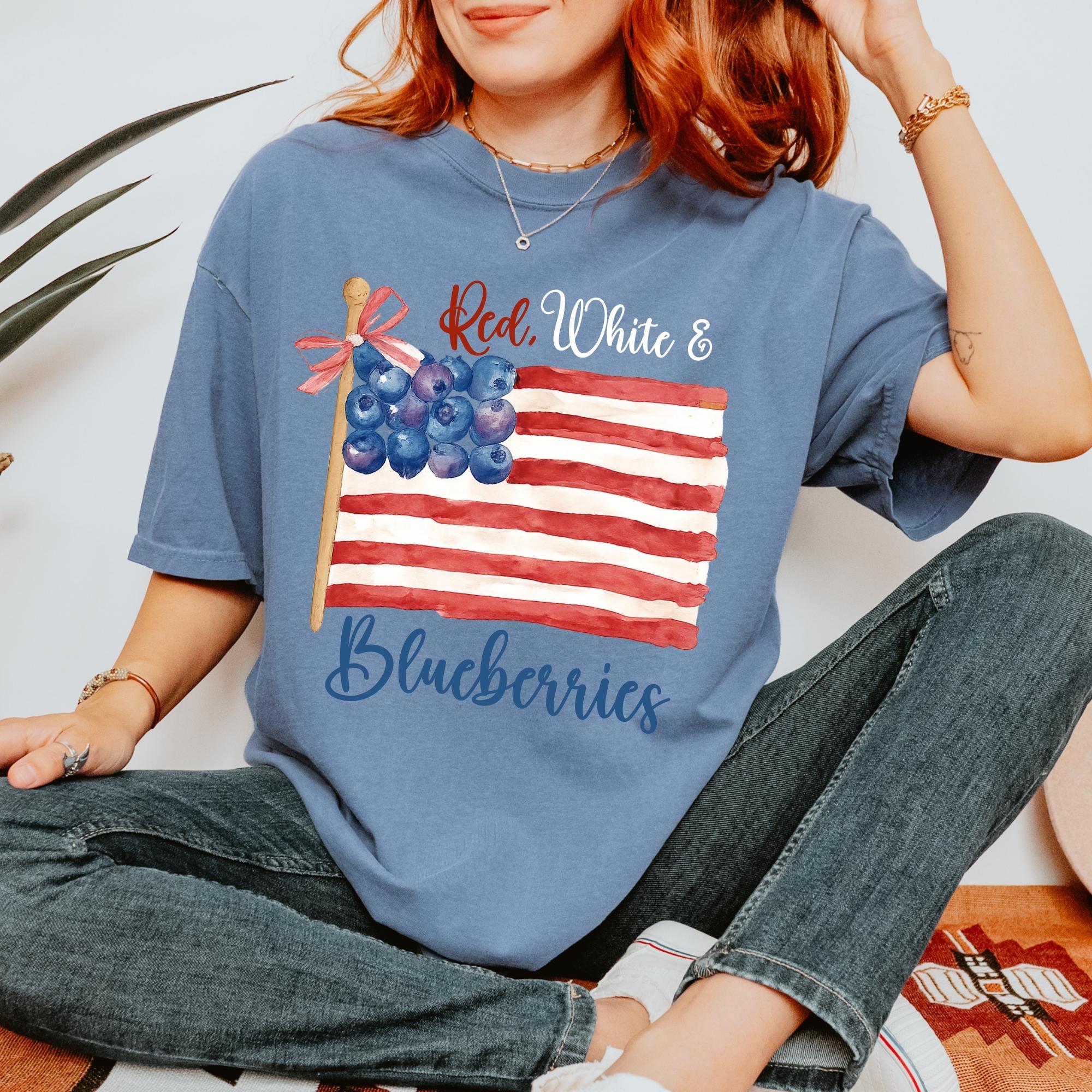 Red, White and Blueberries T-Shirt | Blueberry Budget, Charlie Kirk Inspired, USA Comfort Colors T-Shirt, Freedom USA Flag Shirt