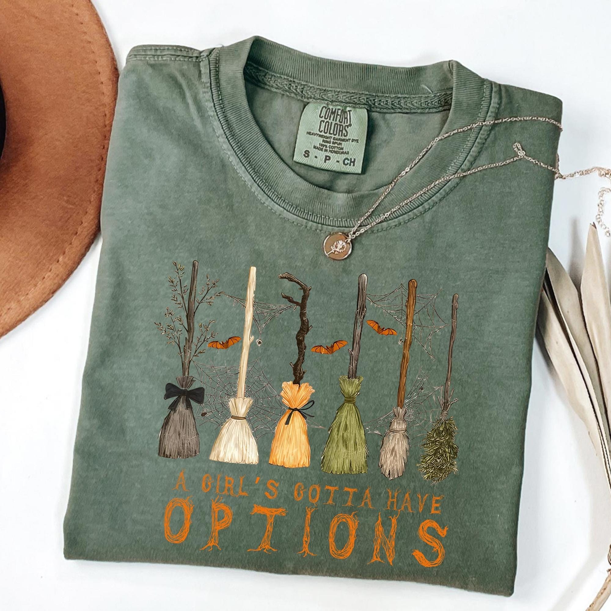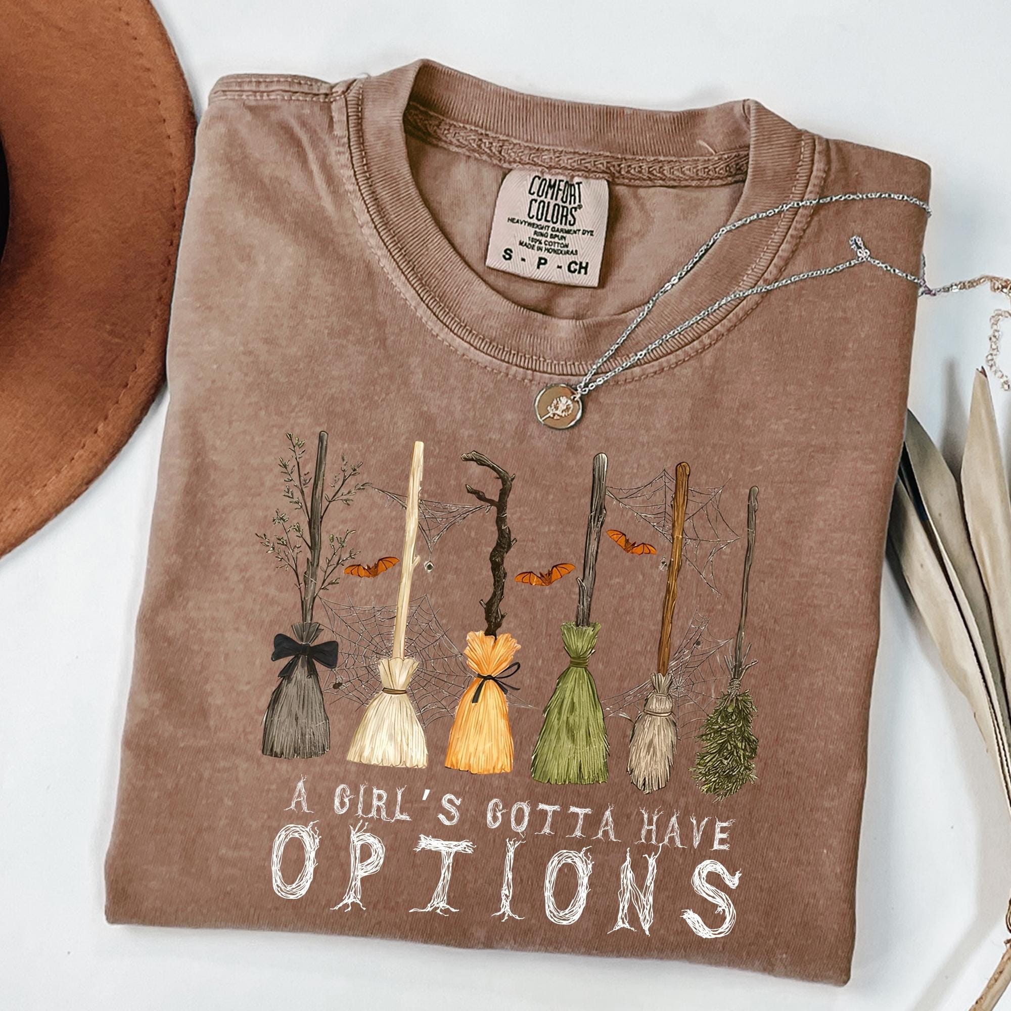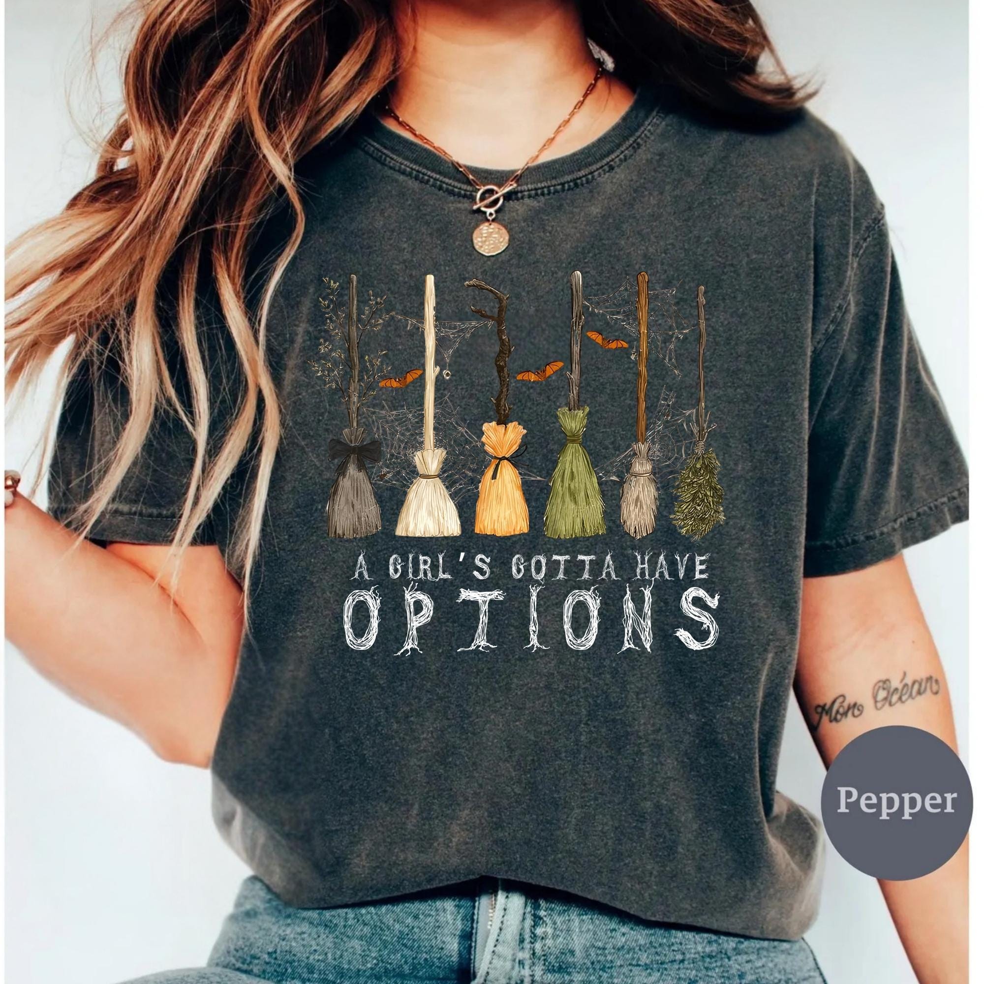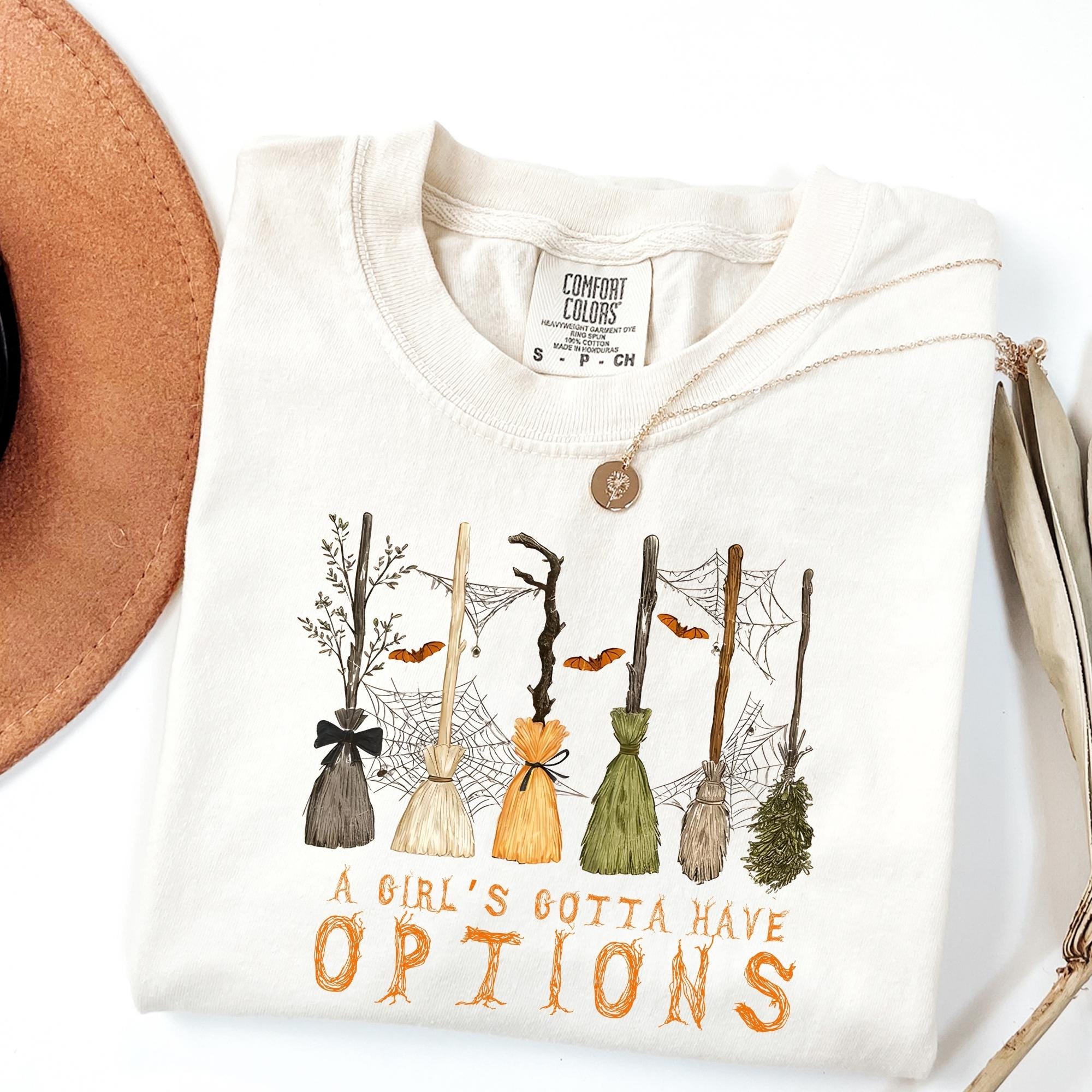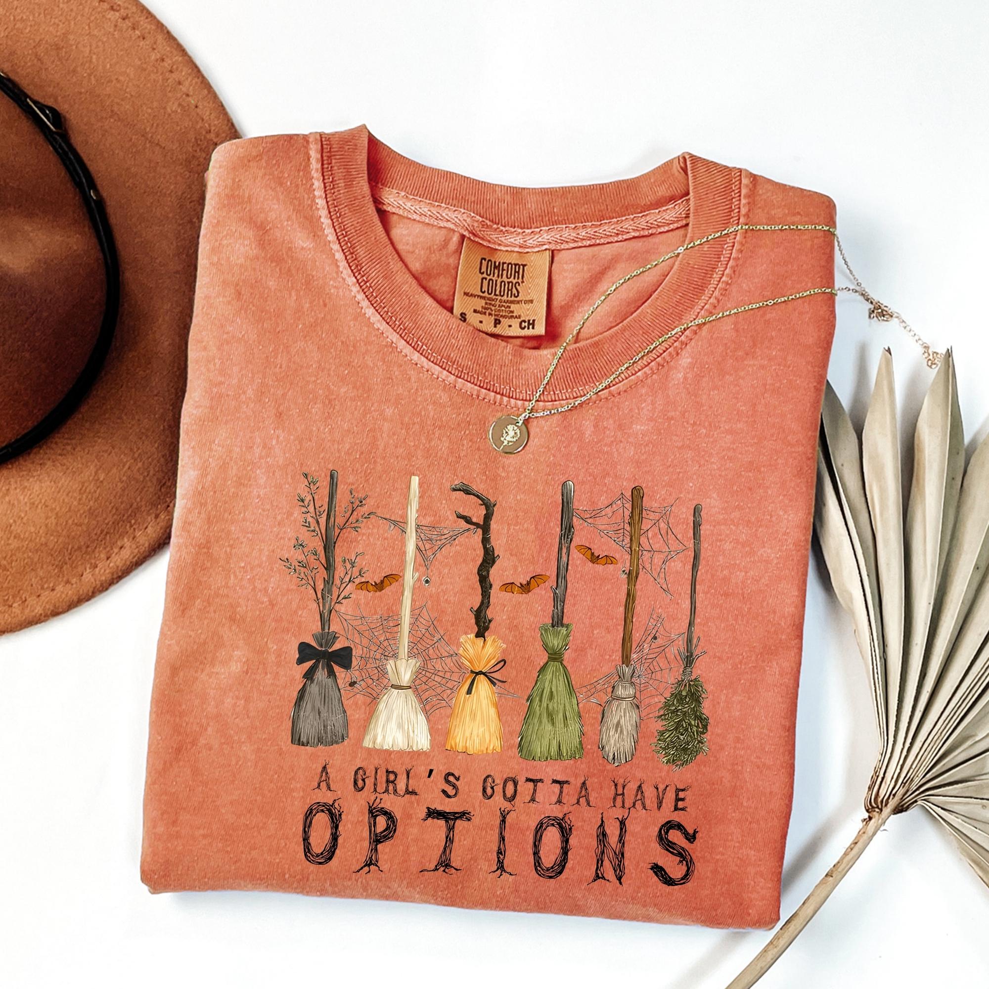 Comfort Colors A Girl Gotta Have Options Shirt, Retro Halloween Tee,Witches Halloween Tee, Spooky Season Feeling Witchy Tee,Trendy Halloween