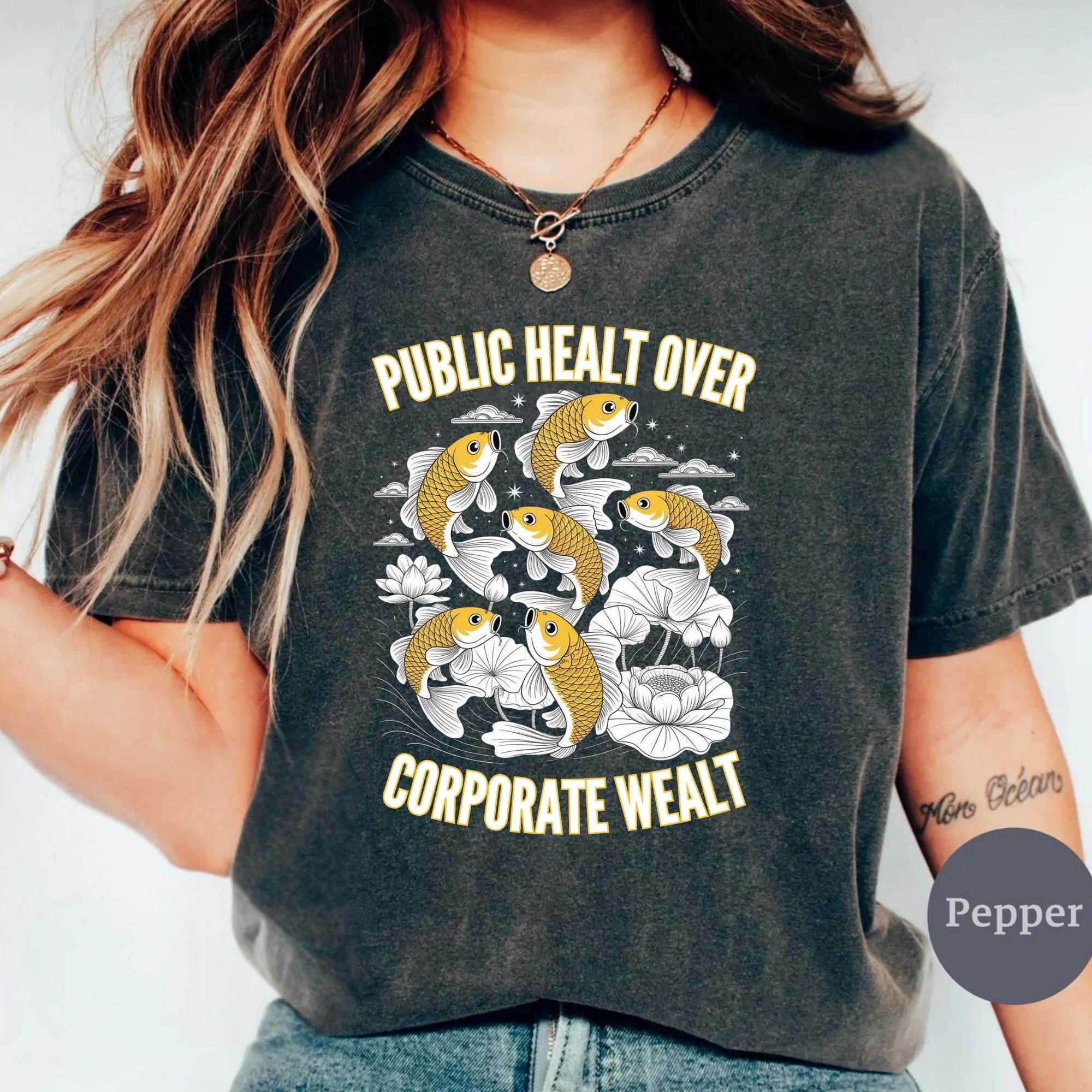 Boho Public Health Over Corporate Wealth Comfort Colors Shirt, Social Justice Anti Oligarchy Activism Anti Fascism Shirt, Resistance