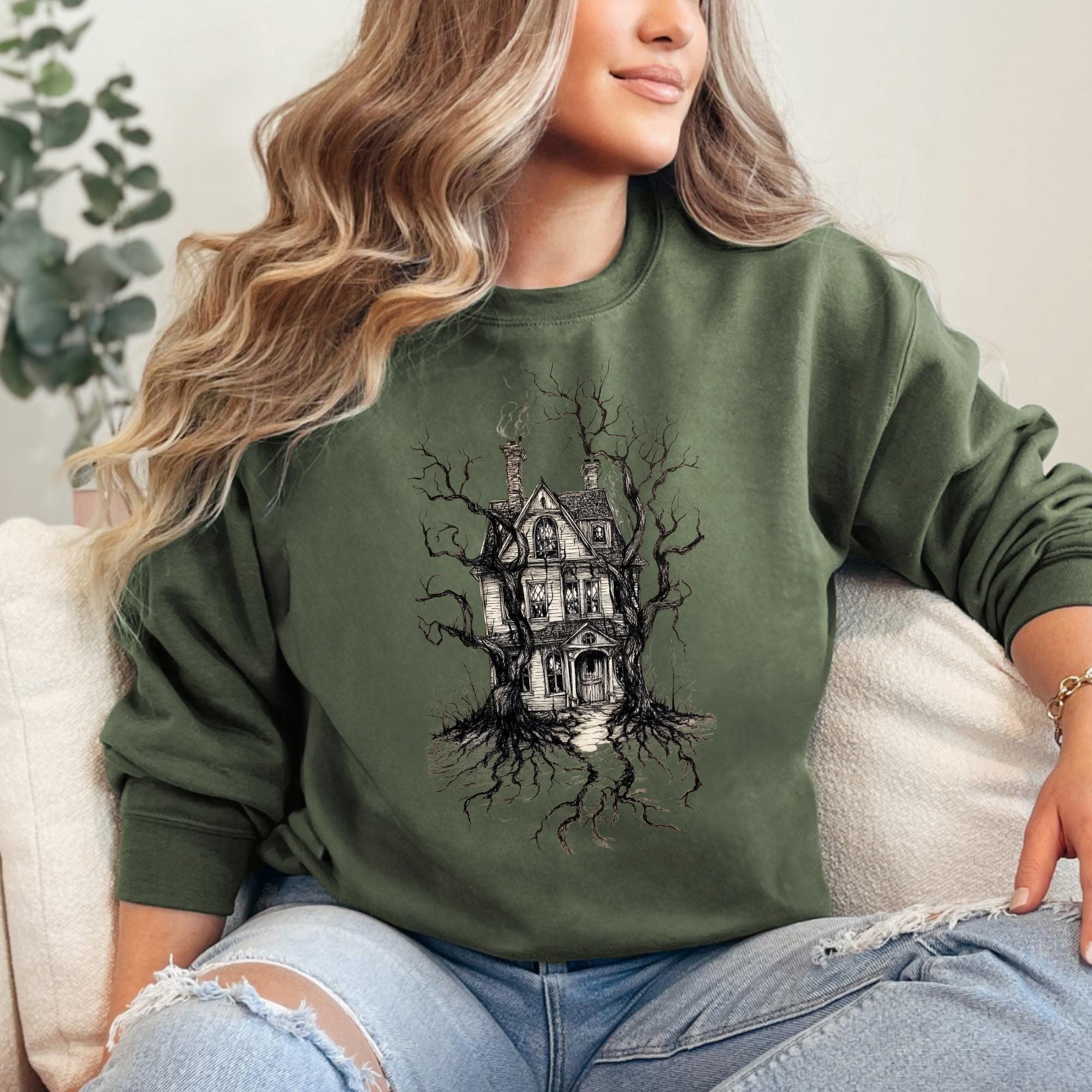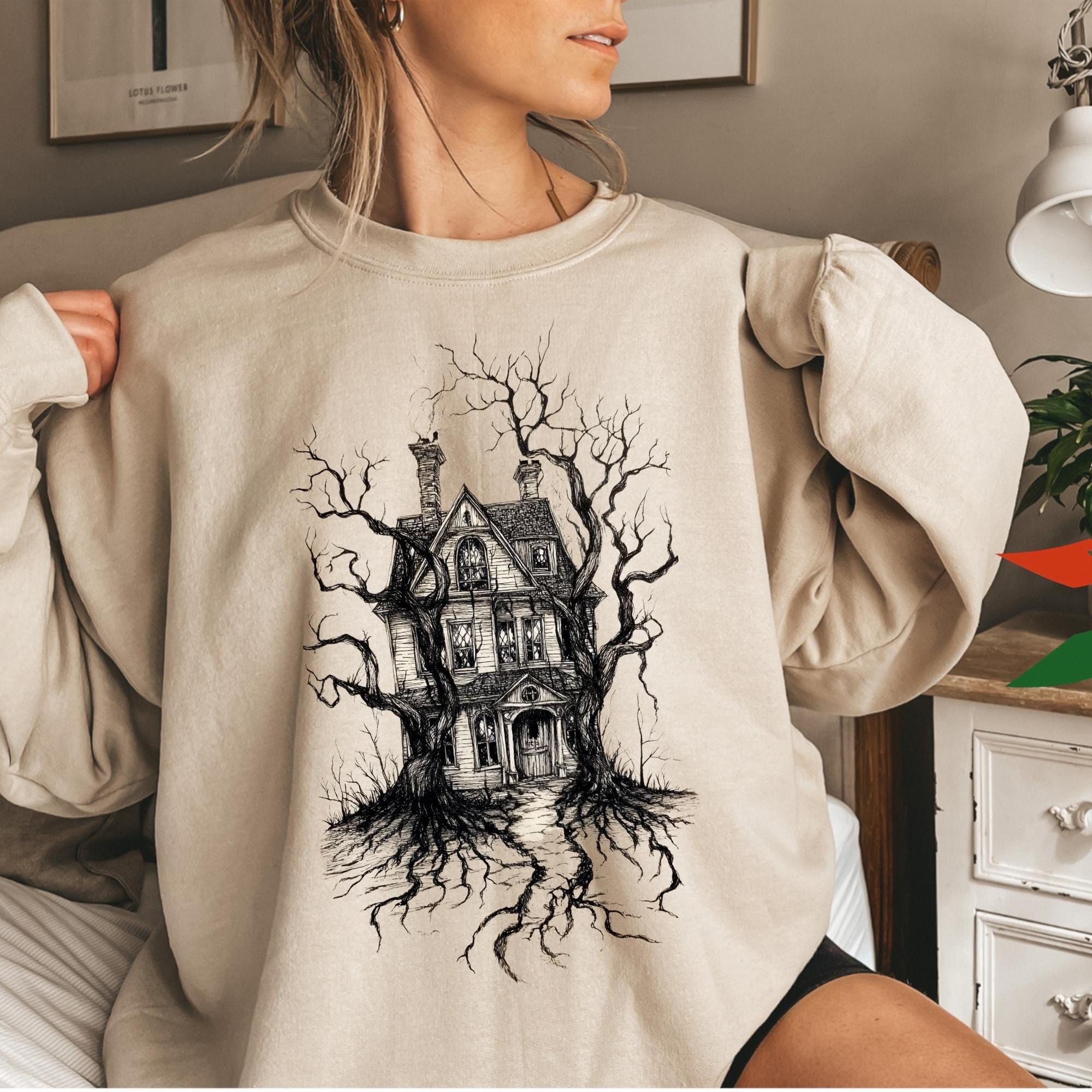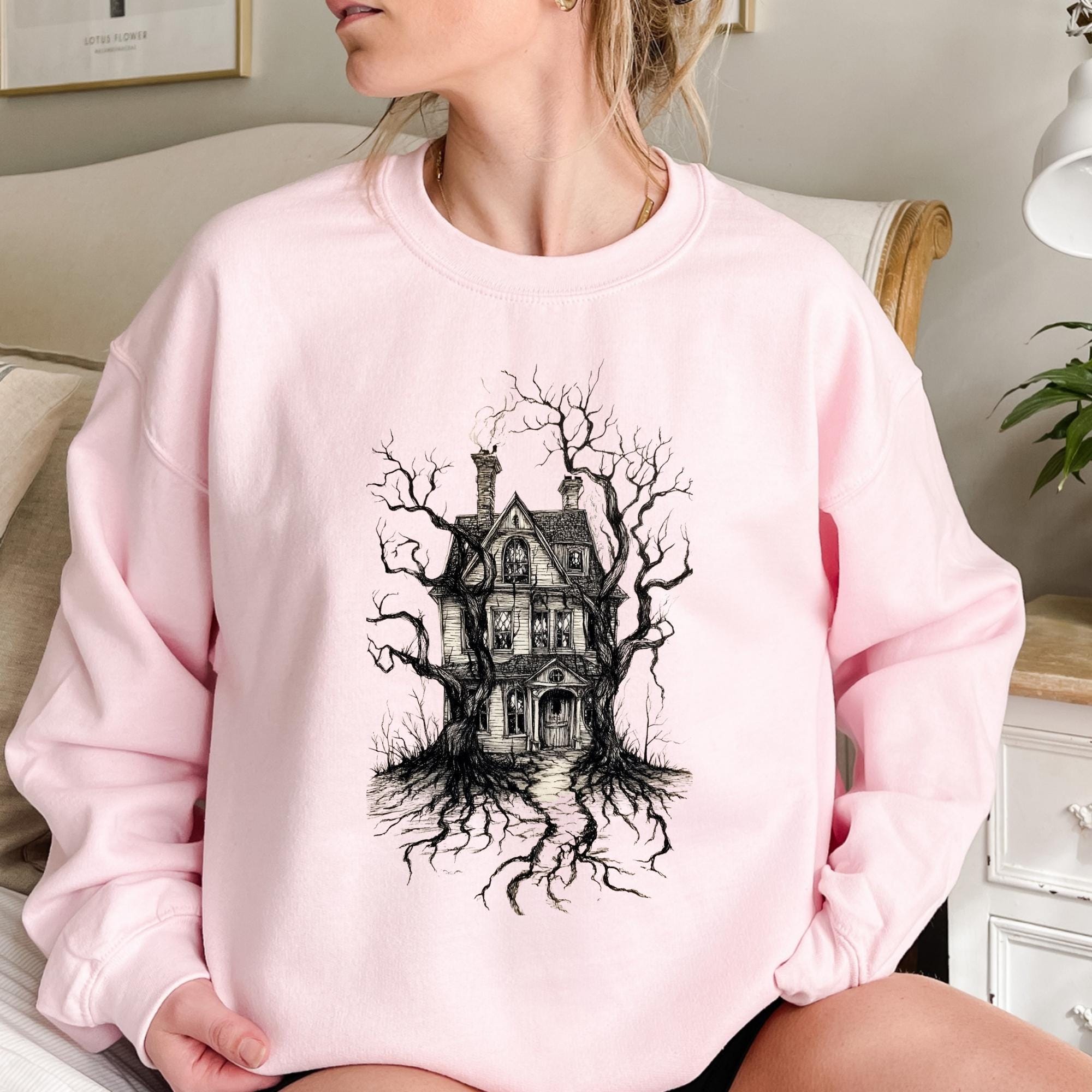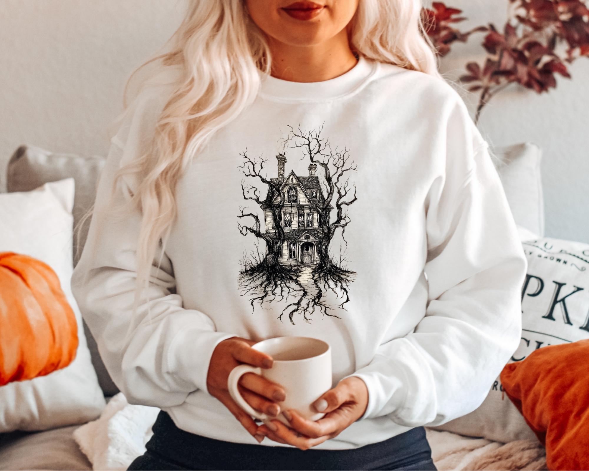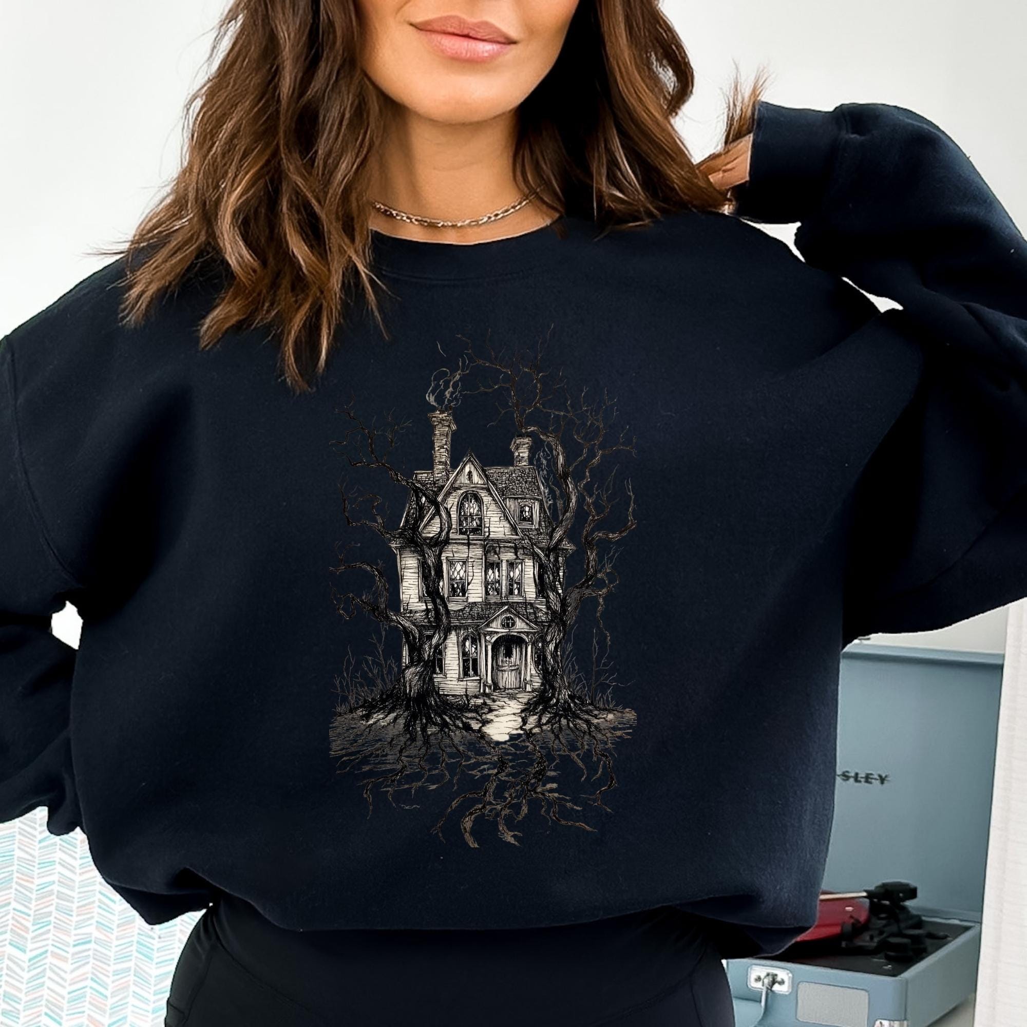 Halloween Sweatshirt, Halloween Haunted House Shirt, Retro Halloween Bats Shirt, Halloween Gift, Flying Bats Shirt, Halloween Costume Shirt