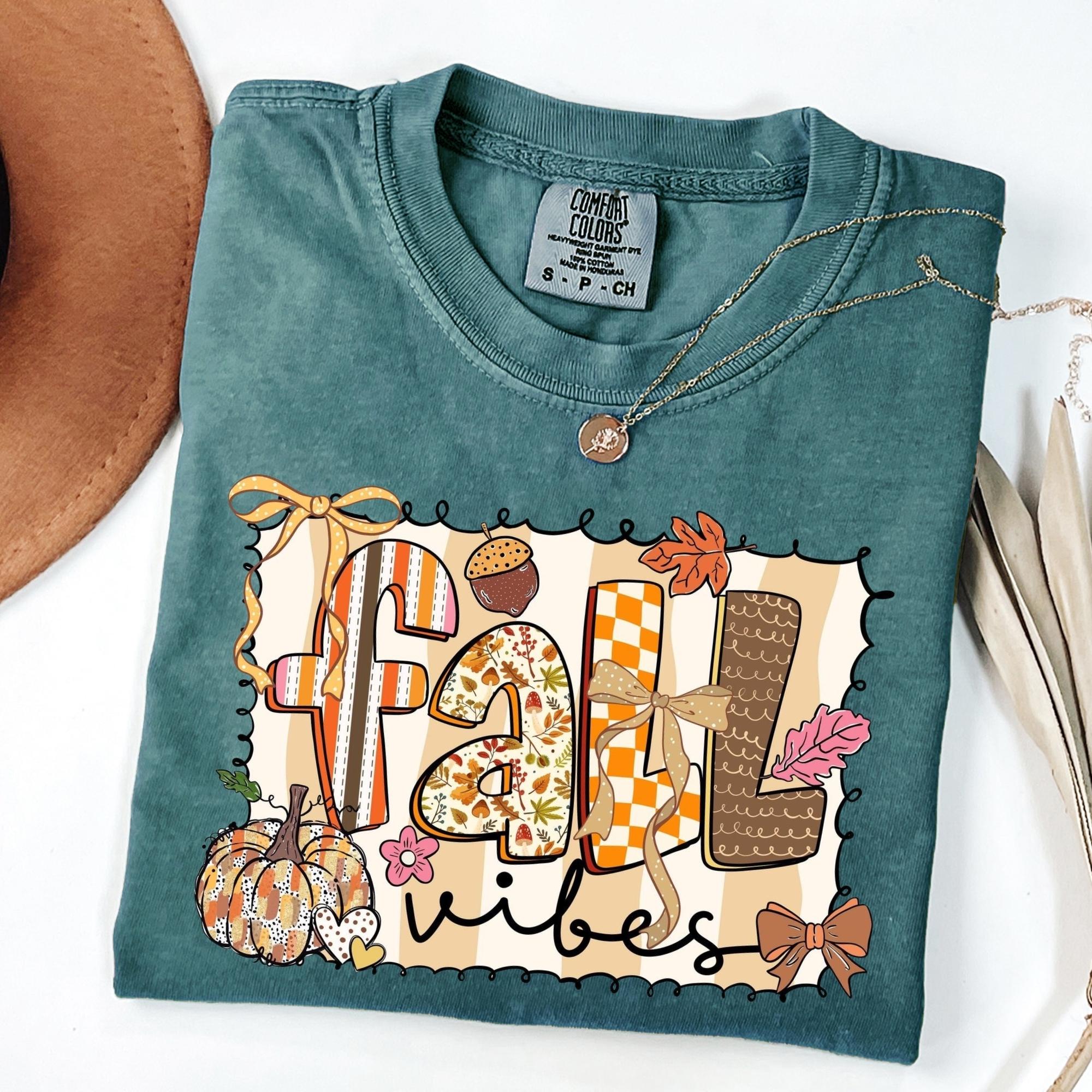Comfort Colors® Fall T-Shirt, Fall Coquette Bow Shirt, Floral Fall Shirt, Autumn Shirt, Checkered Fall Shirt, Fall Season Shirt