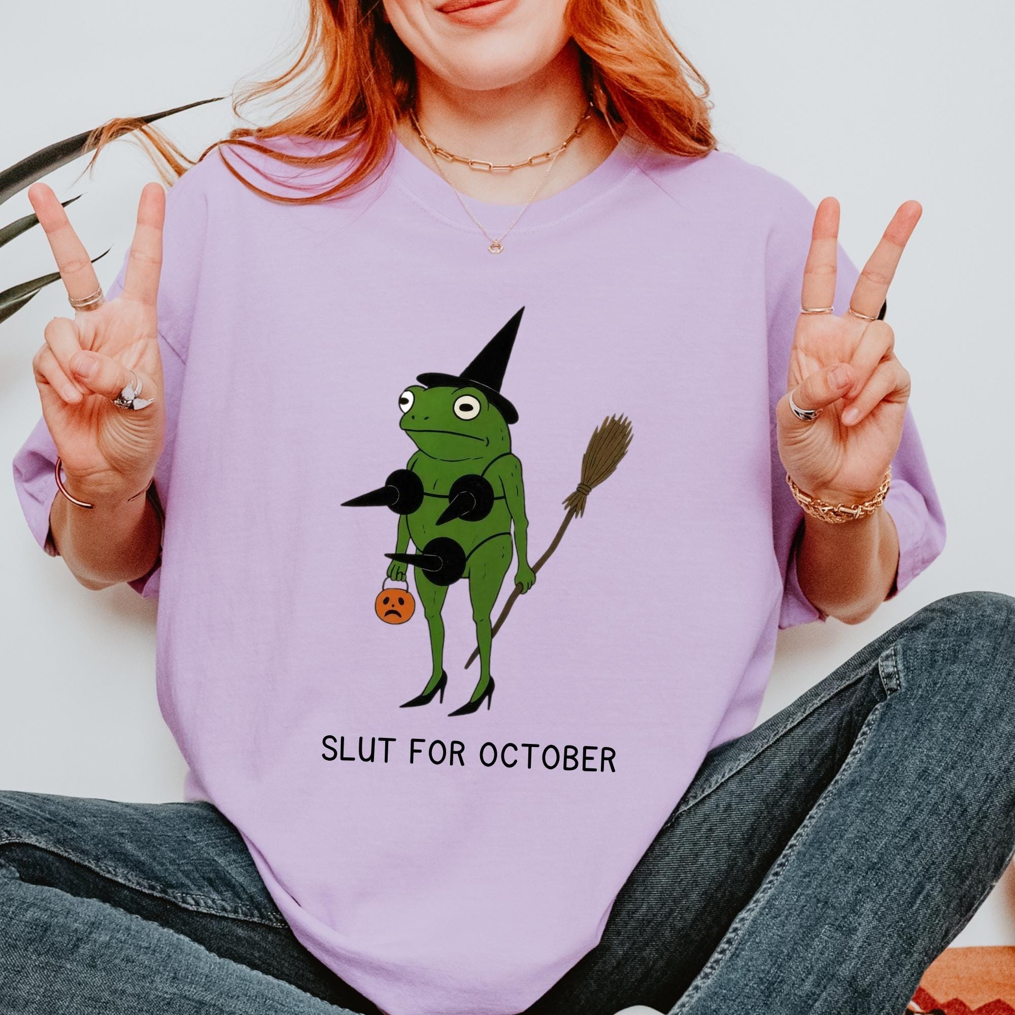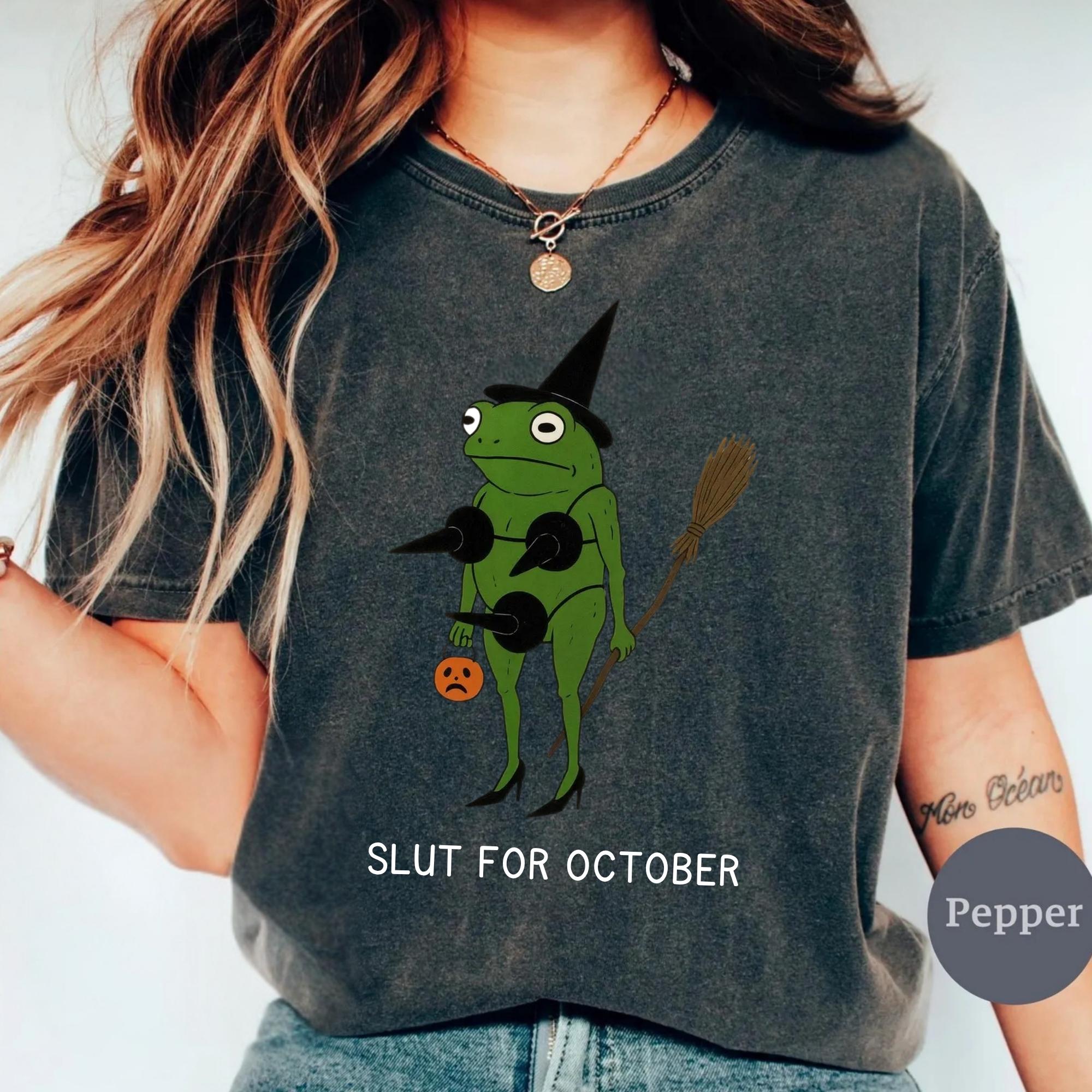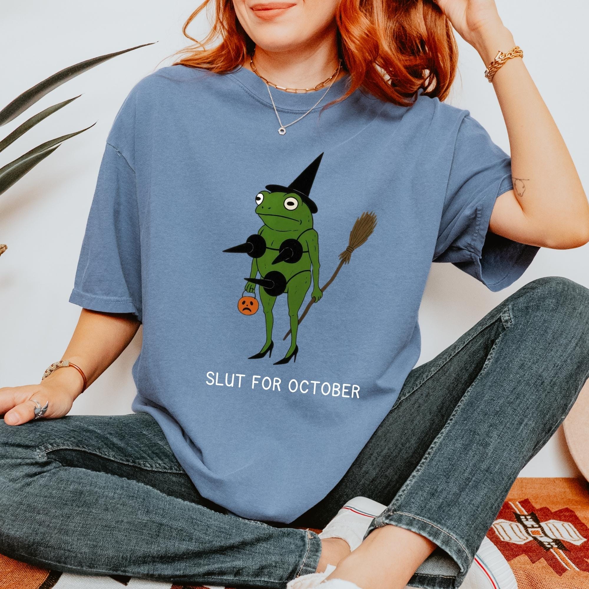 Slut For October Comfort Colors Shirt, Funny Frog Shirt, Halloween Frog Tee, Spooky Meme Frog Shirt, Funny Halloween Tee, Frog Shirt