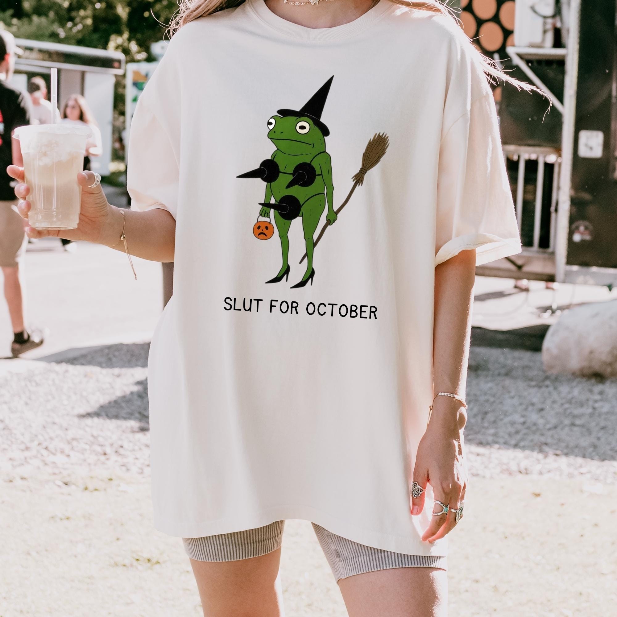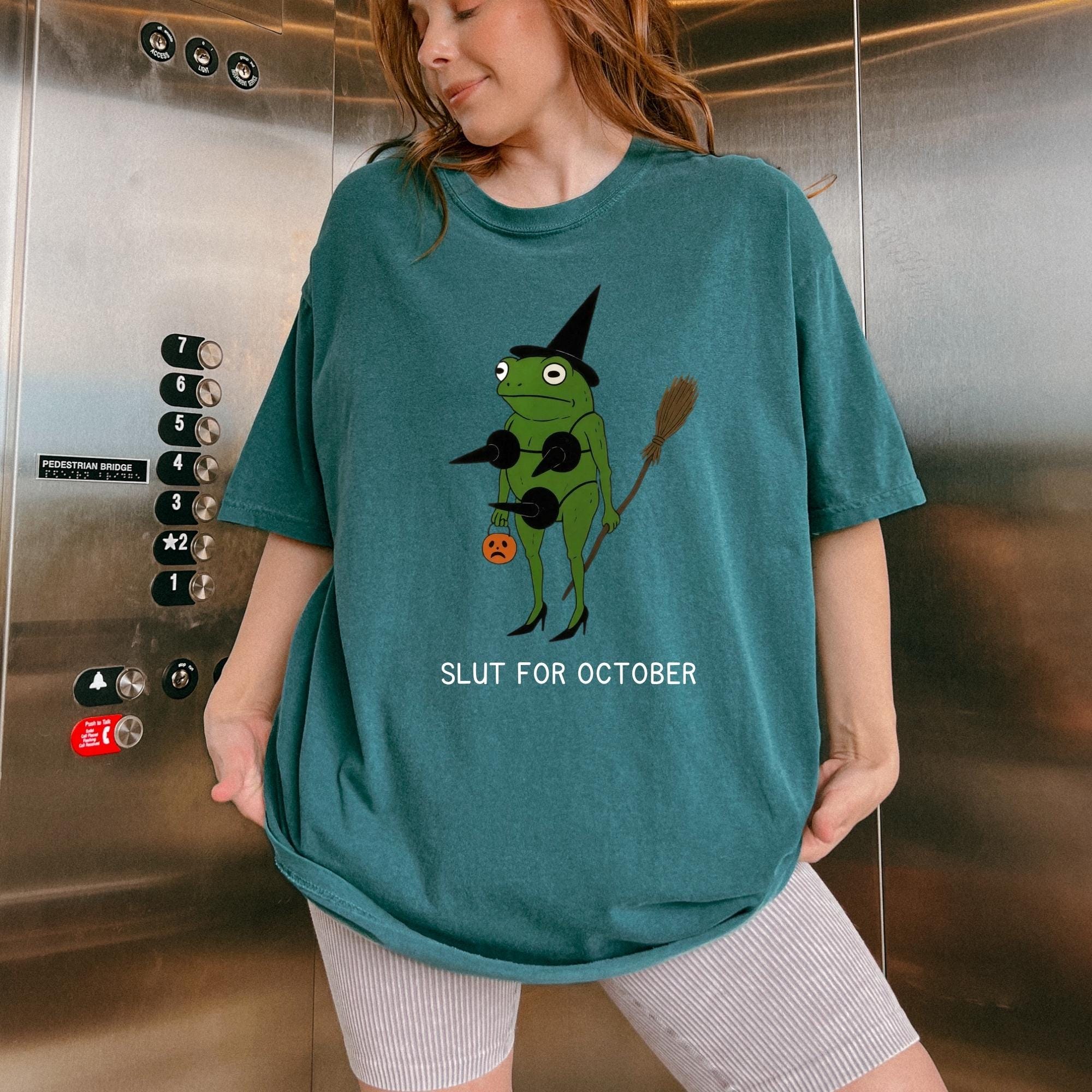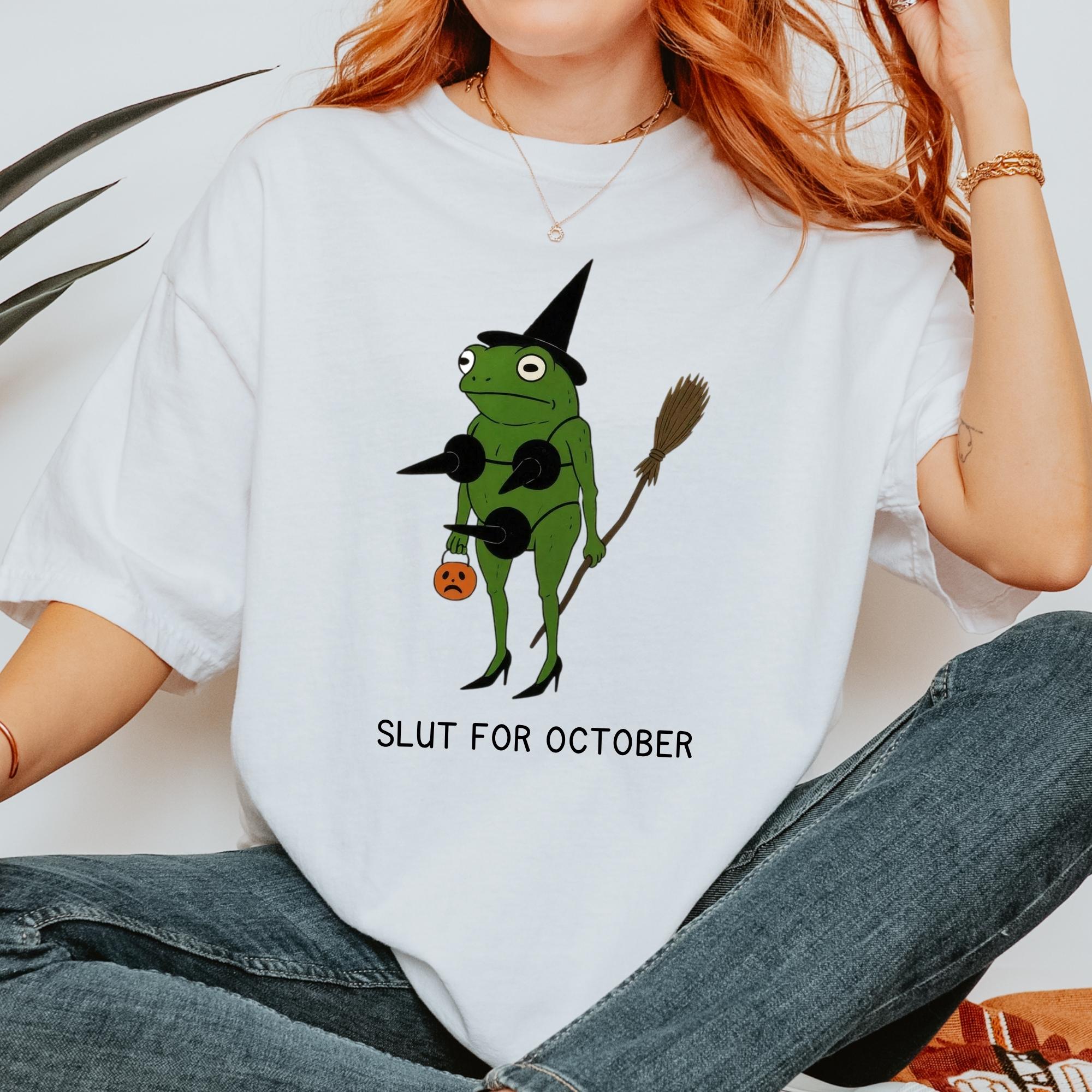 Slut For October Comfort Colors Shirt, Funny Frog Shirt, Halloween Frog Tee, Spooky Meme Frog Shirt, Funny Halloween Tee, Frog Shirt