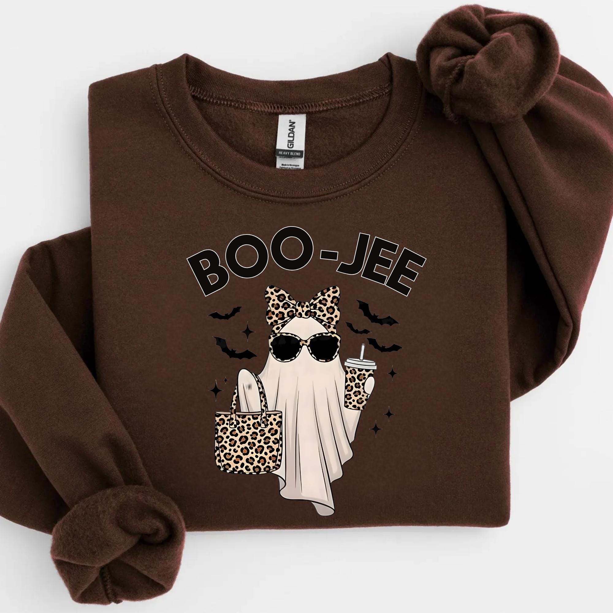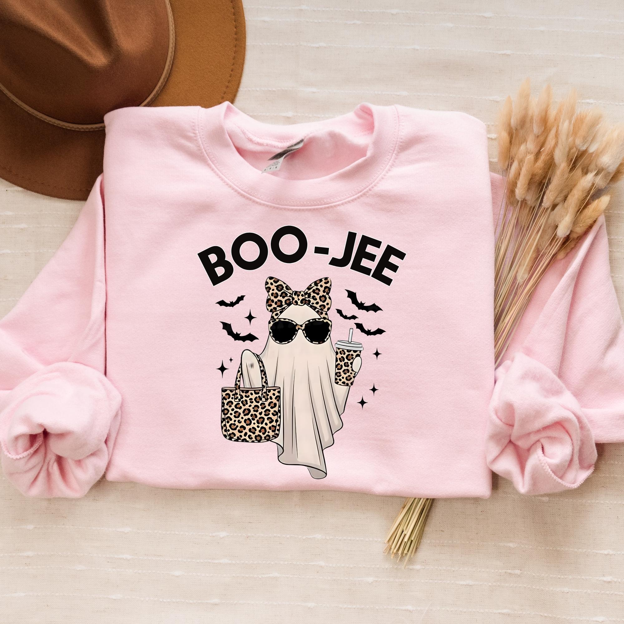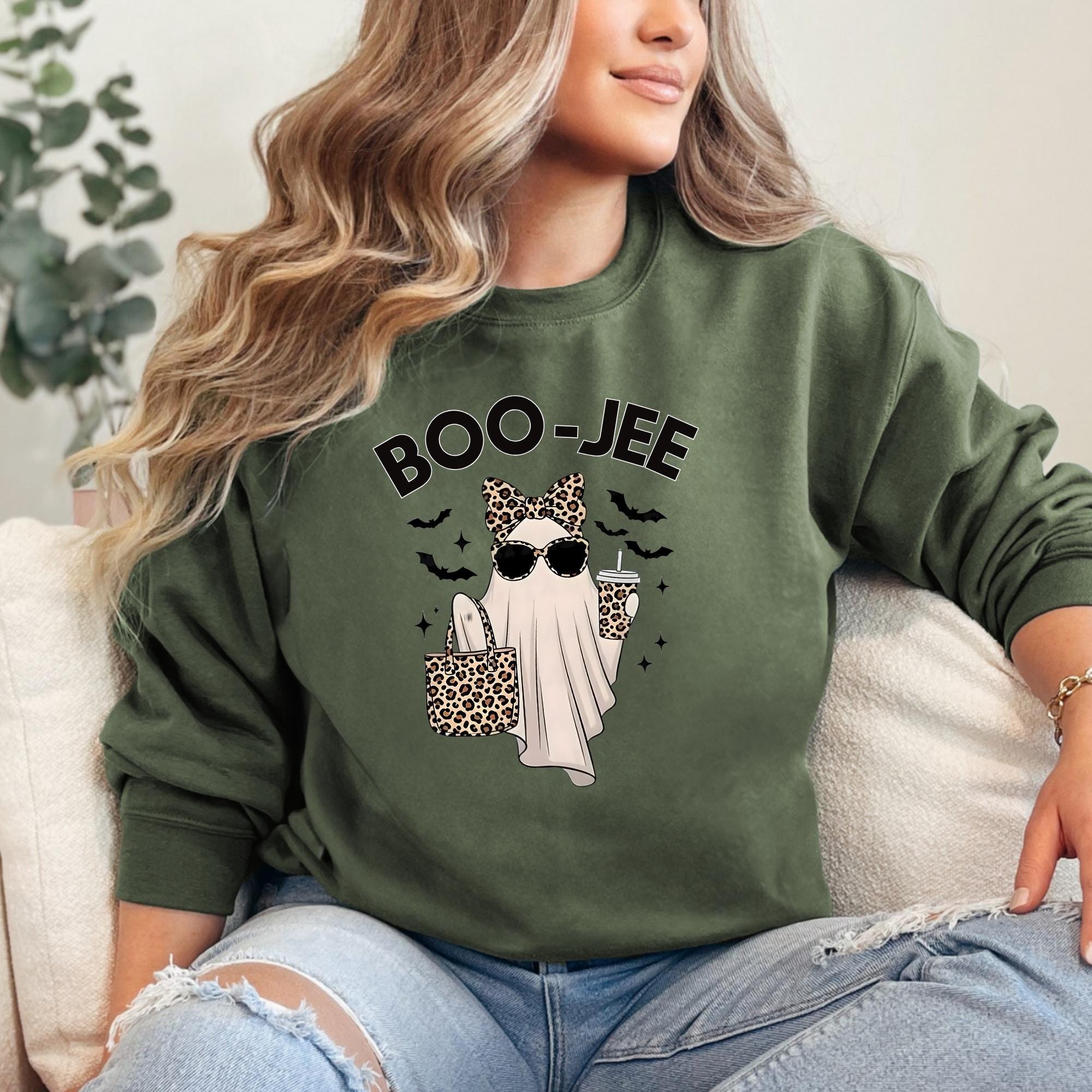 Boo-Jee Ghost Sweatshirt, Leopard Ghost Sweatshirt, Ghost Coffee Shirt, Funny Fall Shirt, Ghost Tee, Girly Halloween Gift, Boojee Shirt ๐ Your Everyday Go-To โ Unique Design Unisex SweatShirt and Hoodie