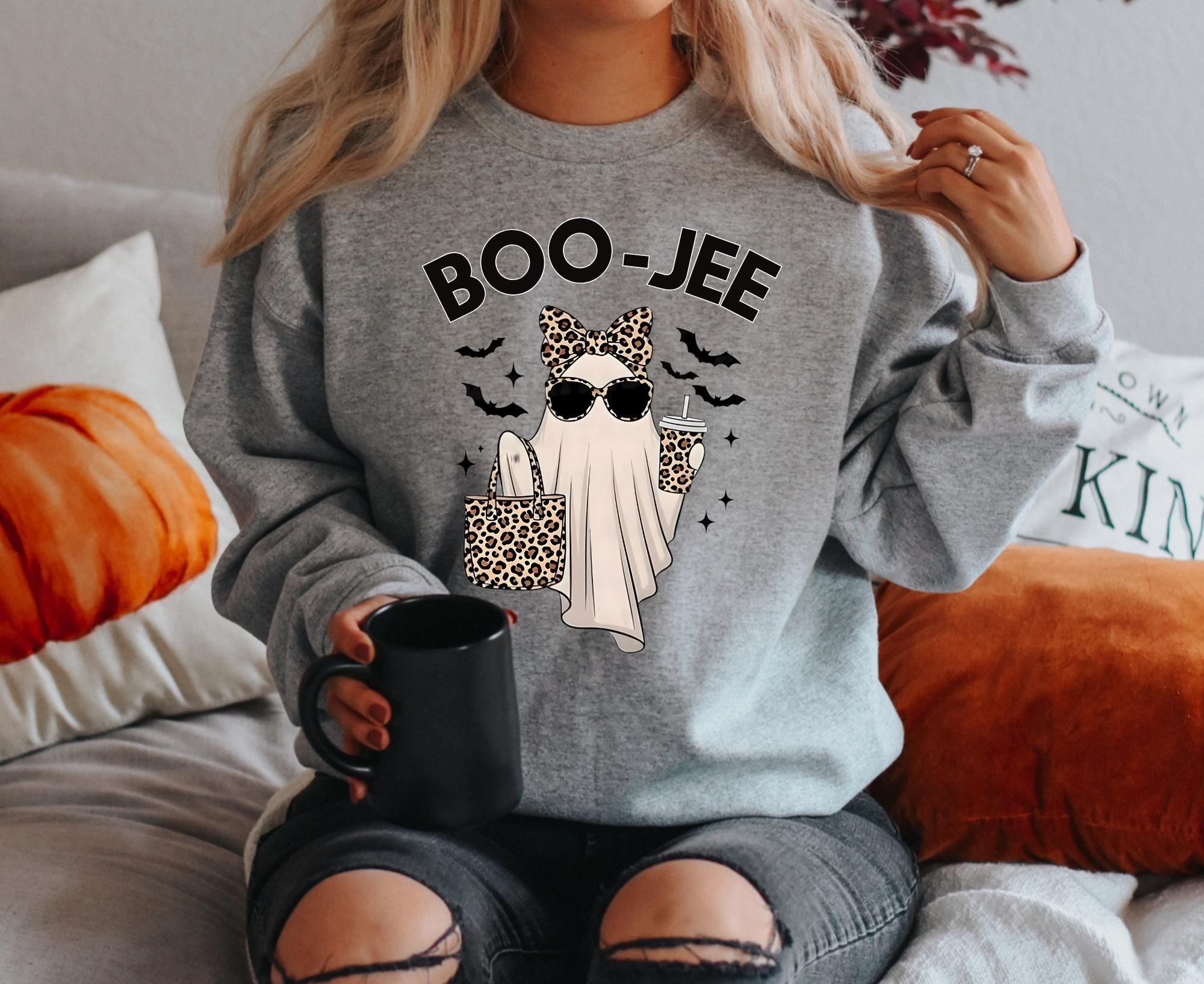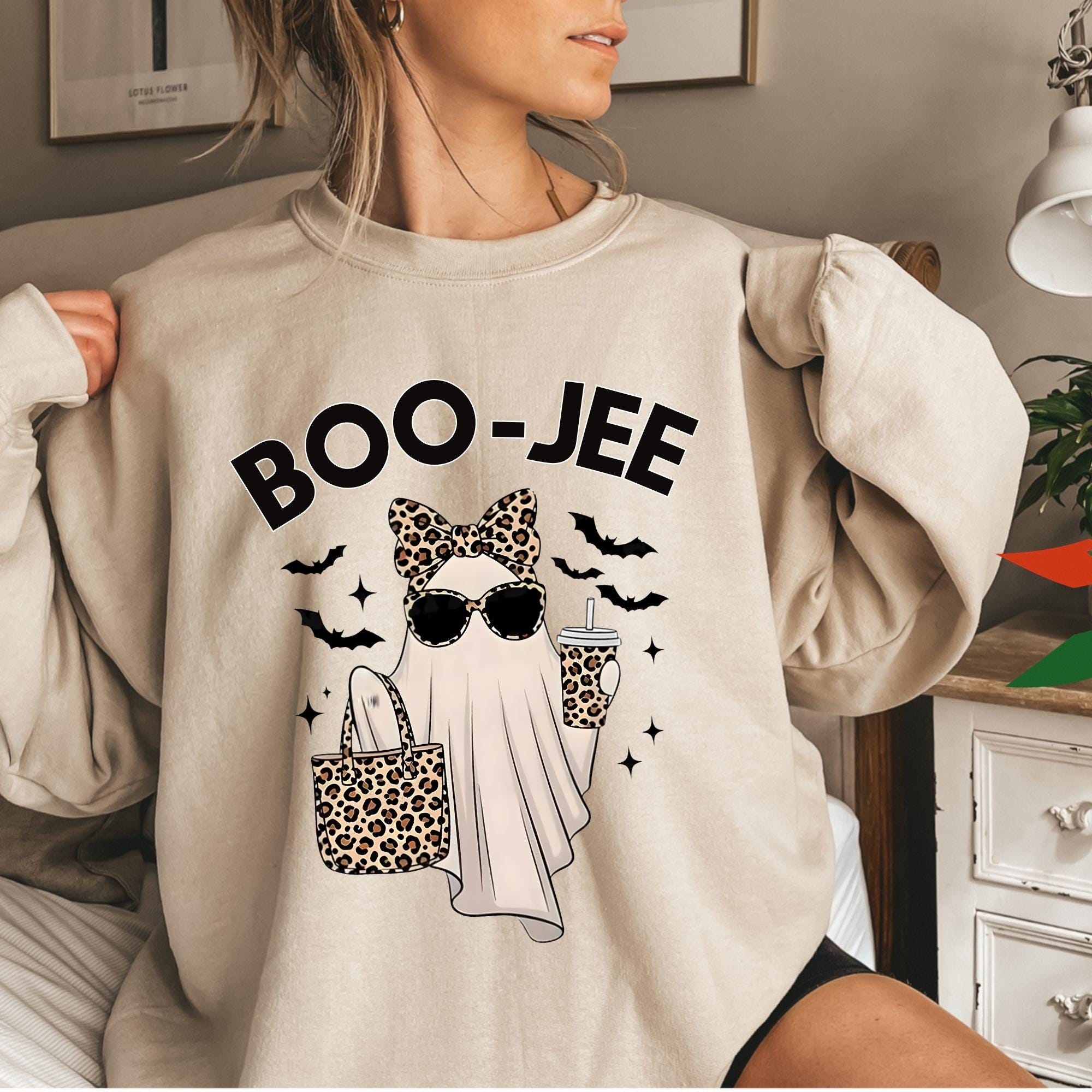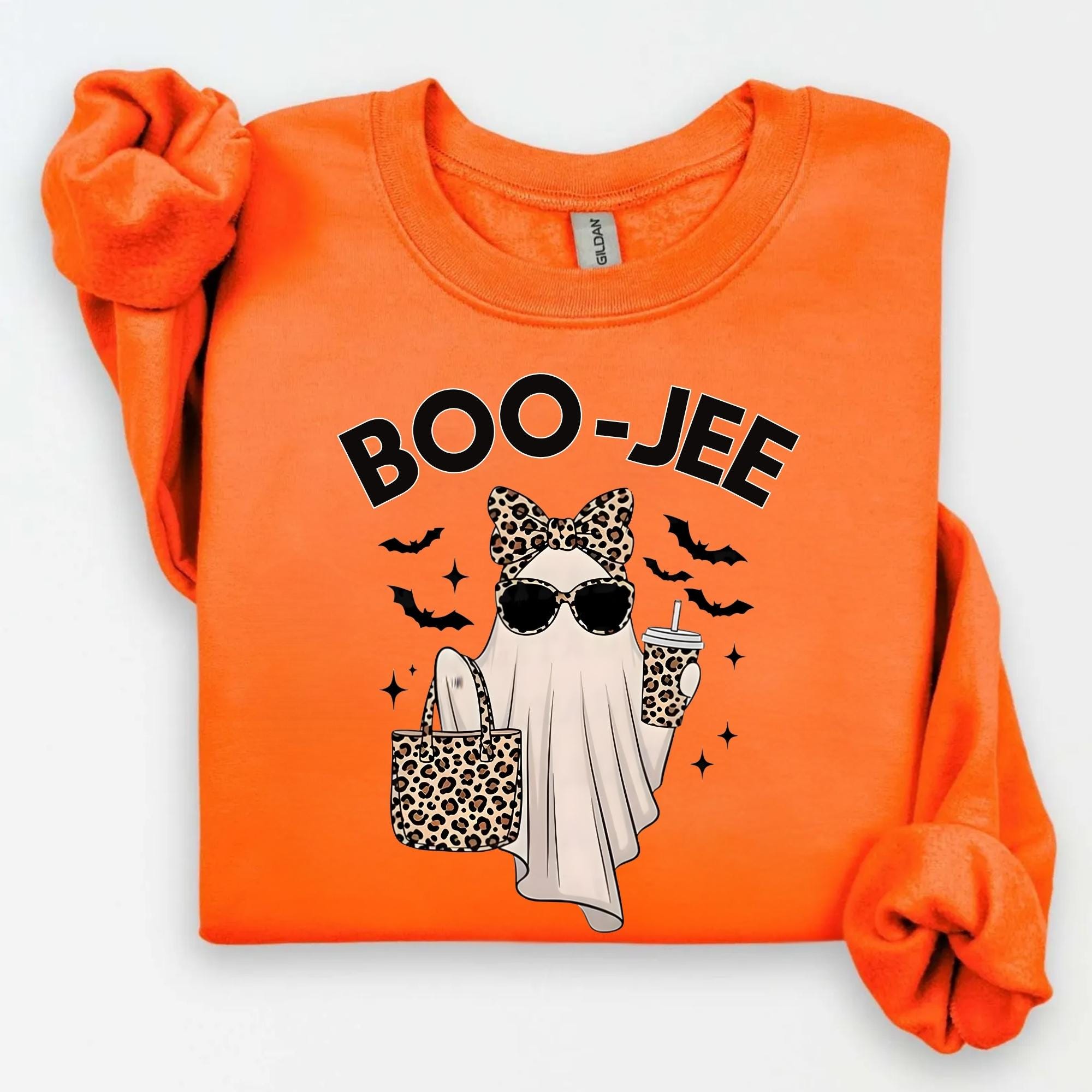 Boo-Jee Ghost Sweatshirt, Leopard Ghost Sweatshirt, Ghost Coffee Shirt, Funny Fall Shirt, Ghost Tee, Girly Halloween Gift, Boojee Shirt ๐ Your Everyday Go-To โ Unique Design Unisex SweatShirt and Hoodie