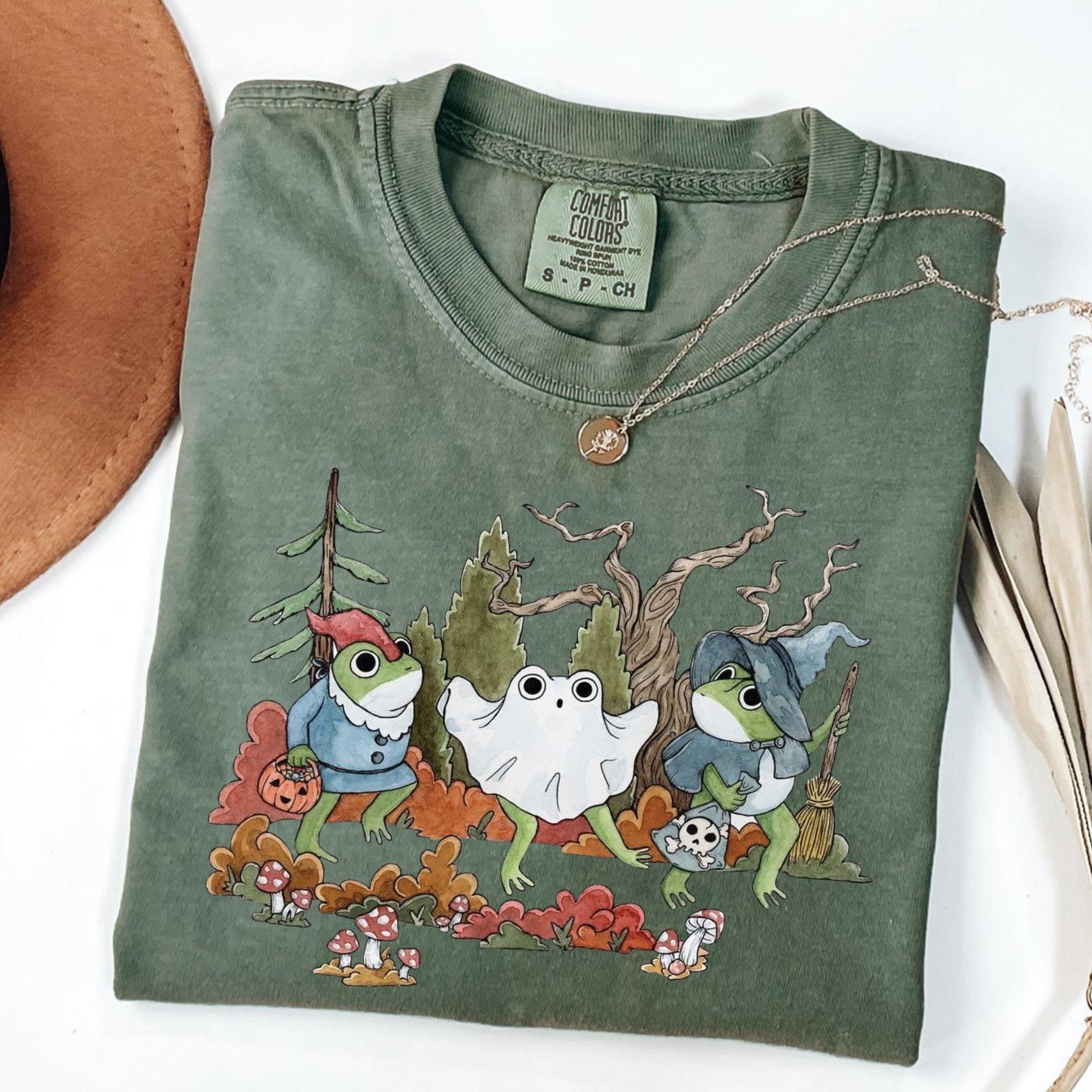 Frog Halloween Comfort Colors Shirt, Unisex Oversize Cotton Toad Sweatshirt, Nature Sweater, Frog Halloween Shirt, Frog Ghost Shirt
