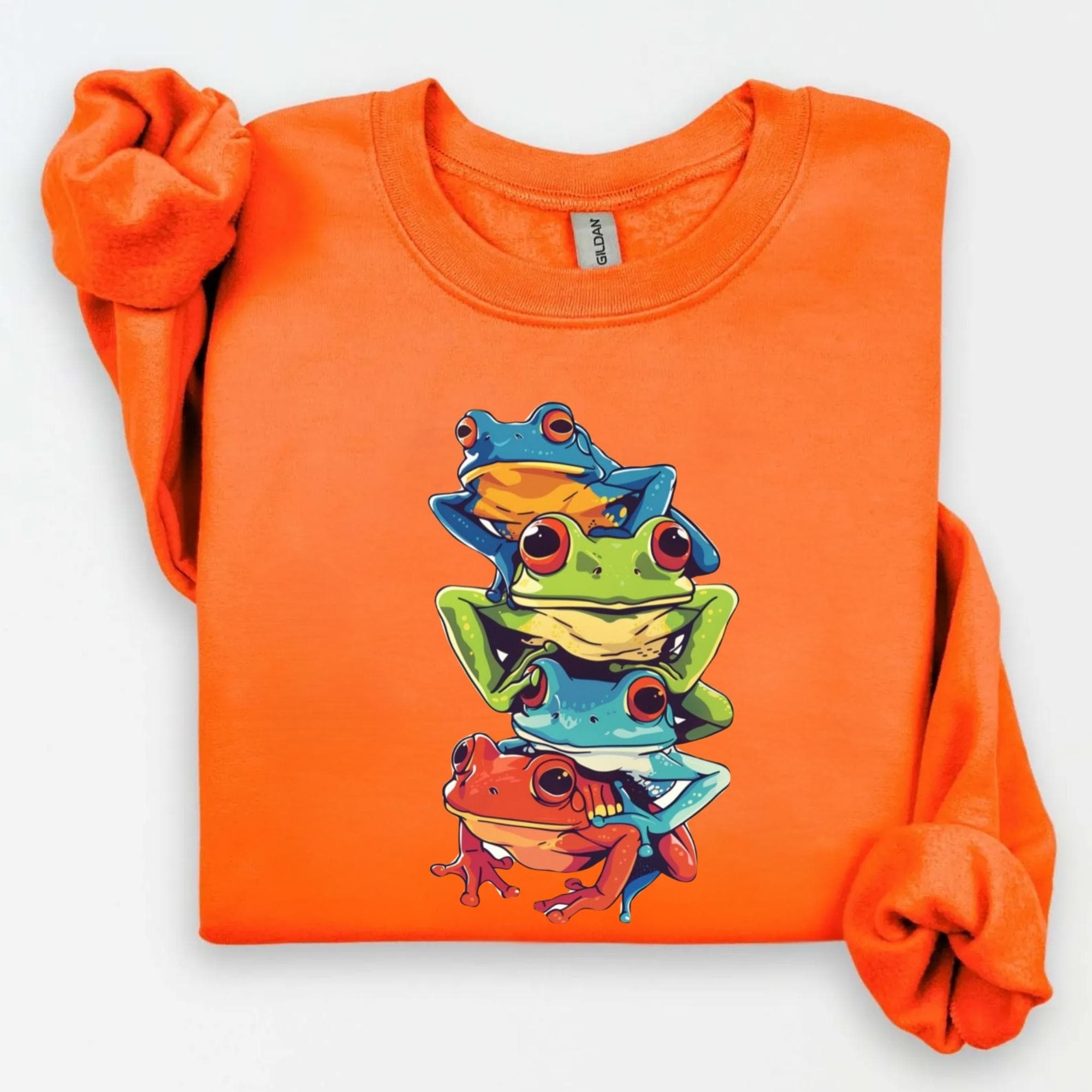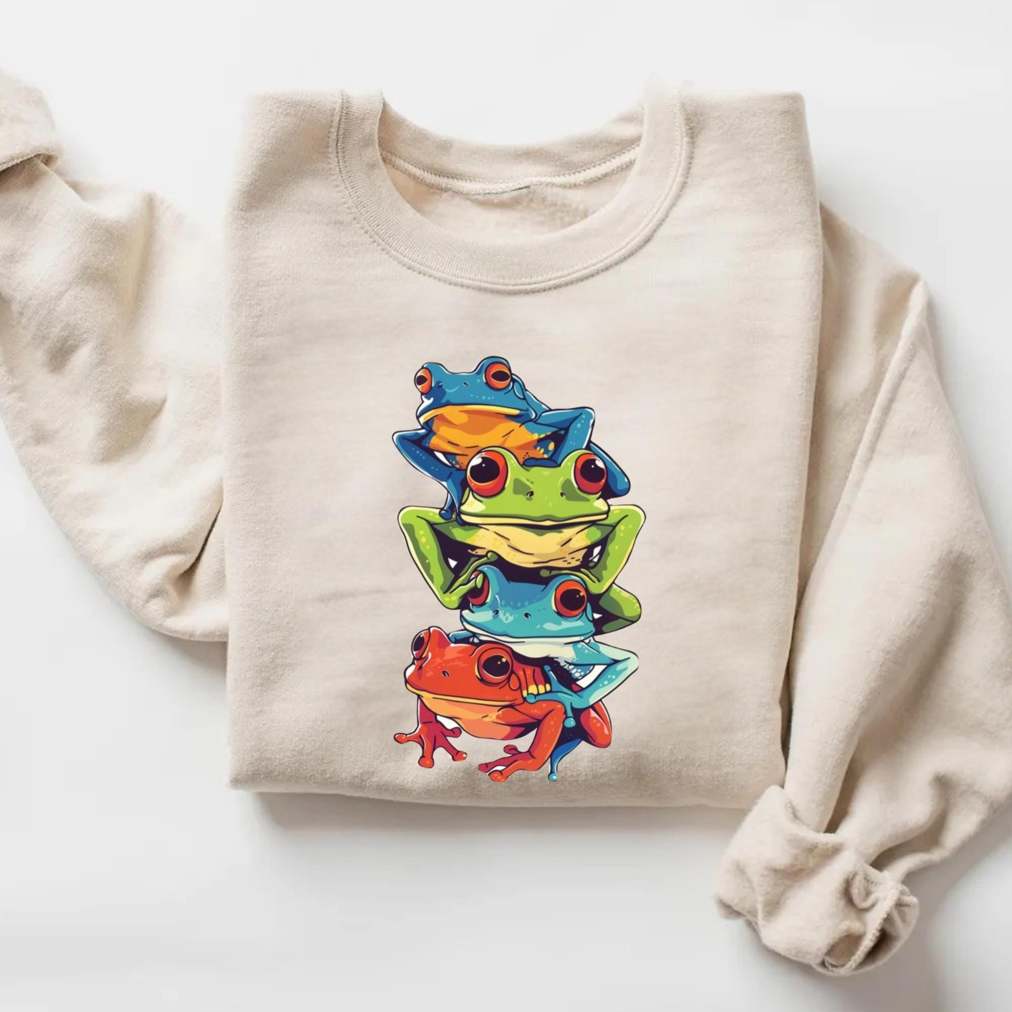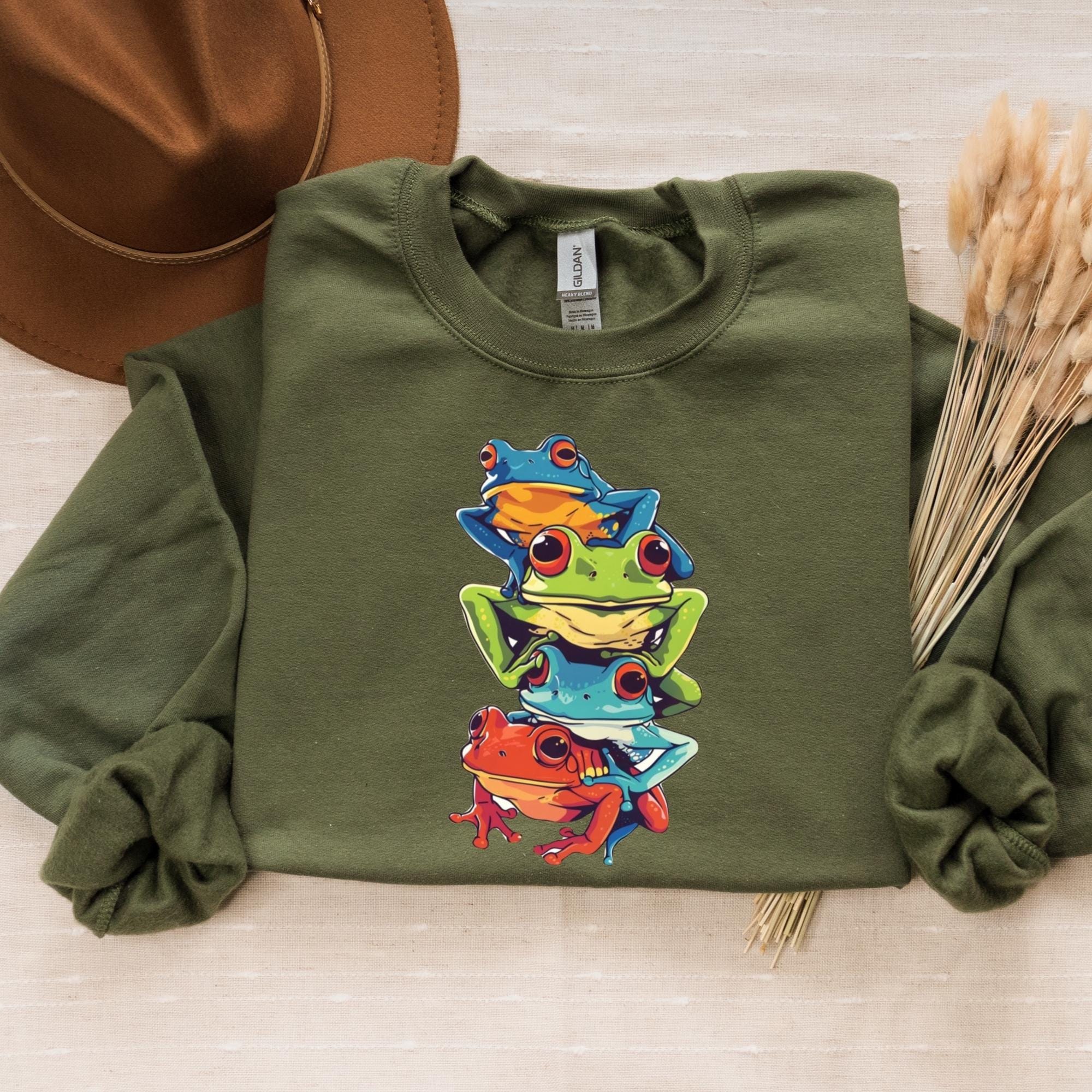 Frogs Graphic Sweatshirt, Unisex Oversize Cotton Toad Frog Sweatshirt, Nature Sweater, Frog Hoodie, Frog Loves Sweatshirt