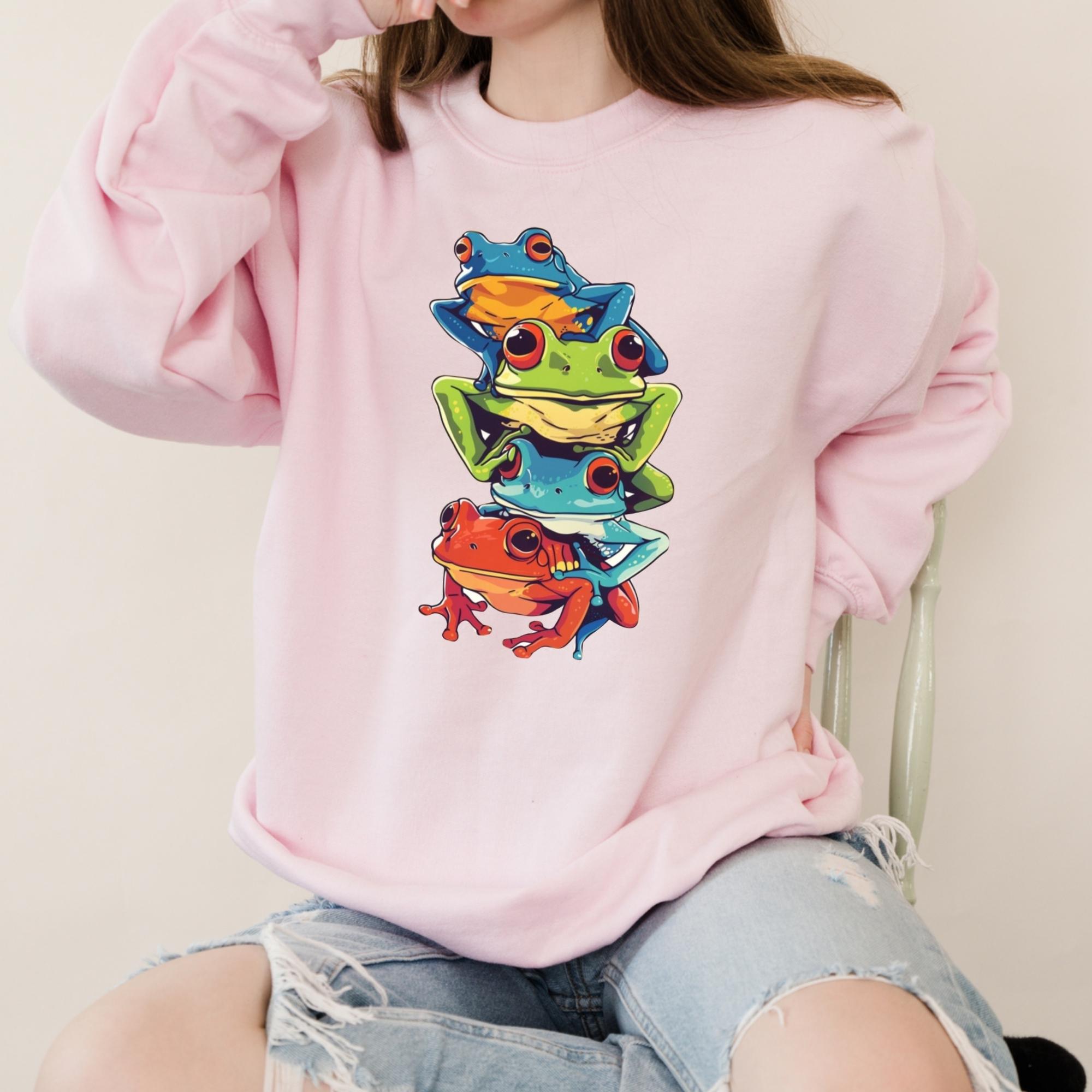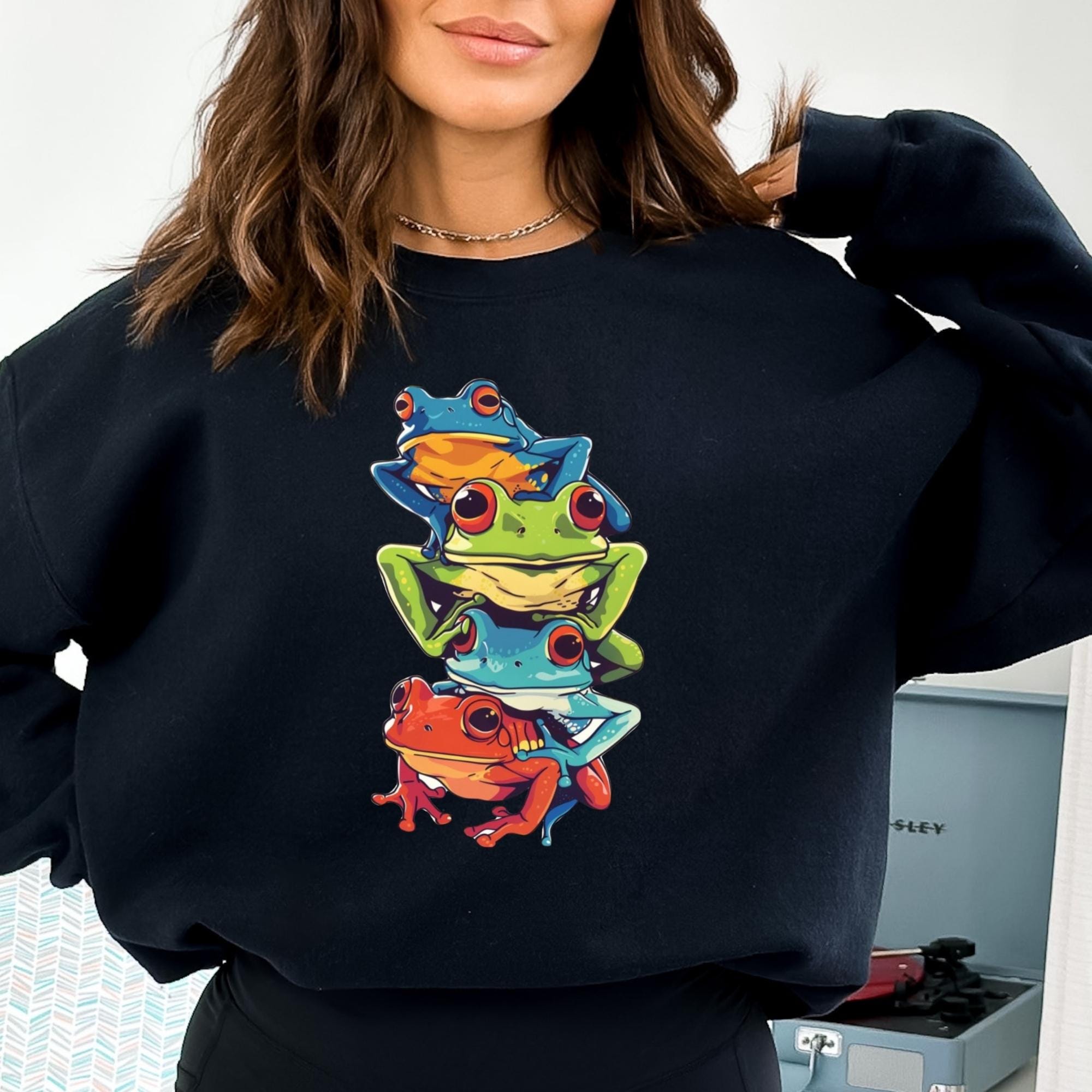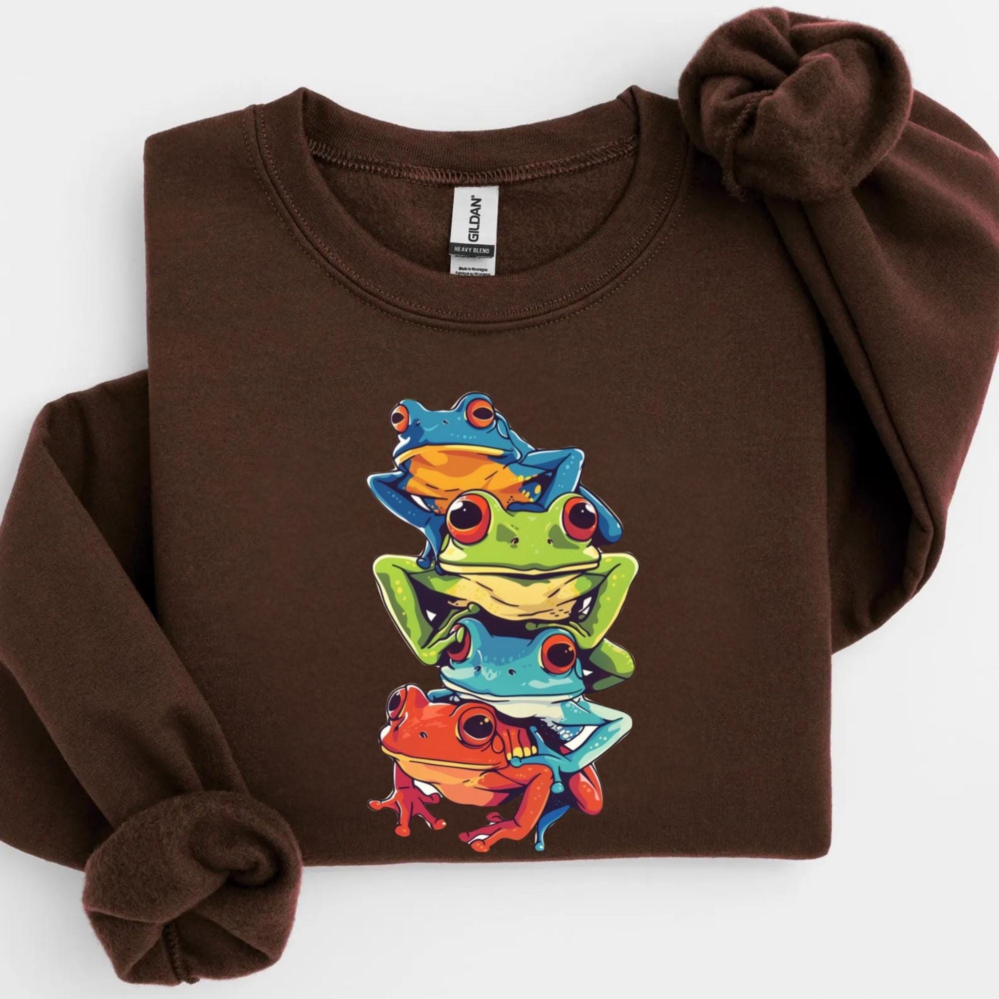 Frogs Graphic Sweatshirt, Unisex Oversize Cotton Toad Frog Sweatshirt, Nature Sweater, Frog Hoodie, Frog Loves Sweatshirt