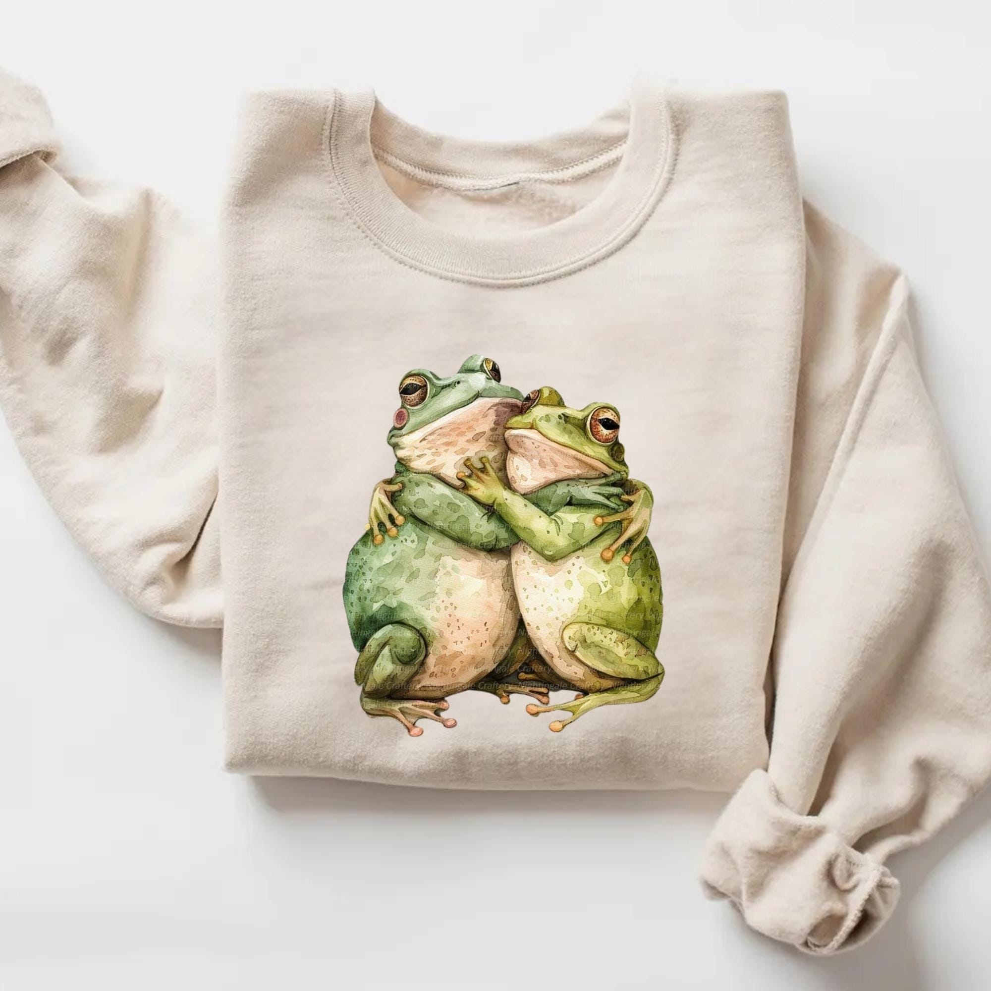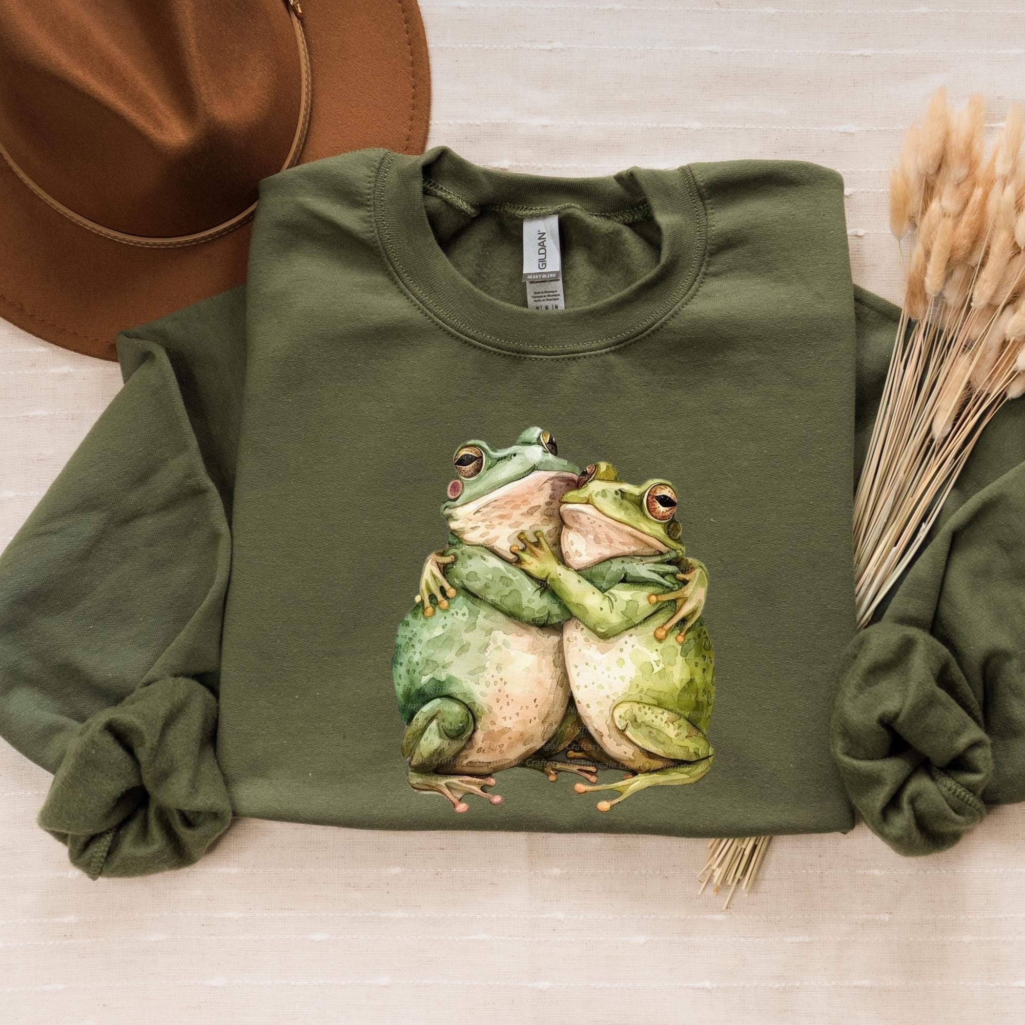 Frog 90s Graphic Sweatshirt, Unisex Oversize Cotton Toad Frog Sweatshirt, Nature Sweater, Frog Hoodie, Frog Loves Sweatshirt