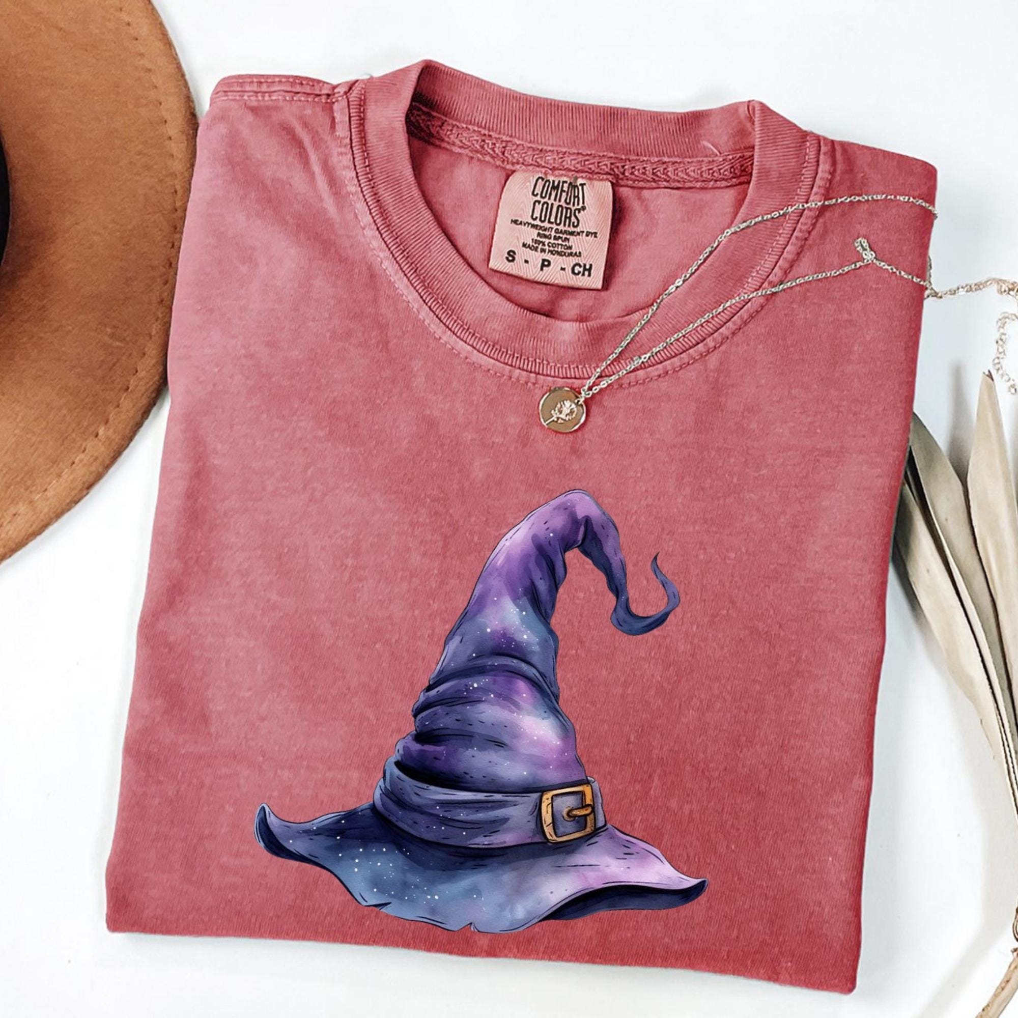 Witches Hat Comfort Colors Shirt, Halloween Shirt For Women Unisex Graphic Tee,Halloween T Shirts For Halloween Funny Witch Halloween Shirt