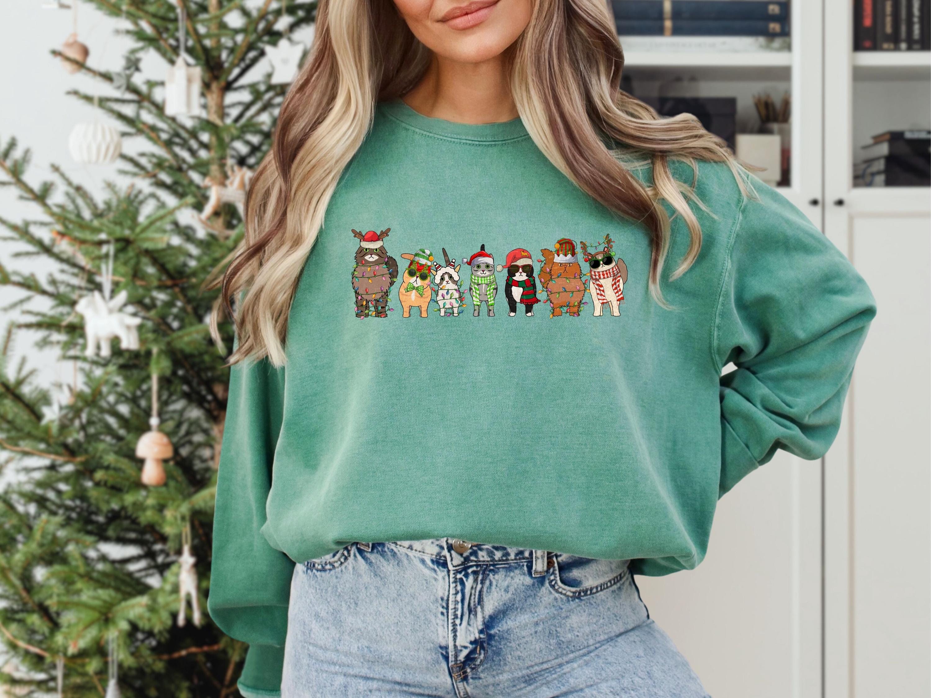 Cute Cat Christmas Comfort Colors Shirt, Cat Lover Gift For Christmas, Womens Christmas Sweatshirt, Holiday Sweatshirt, Cat Mommy Shirt
