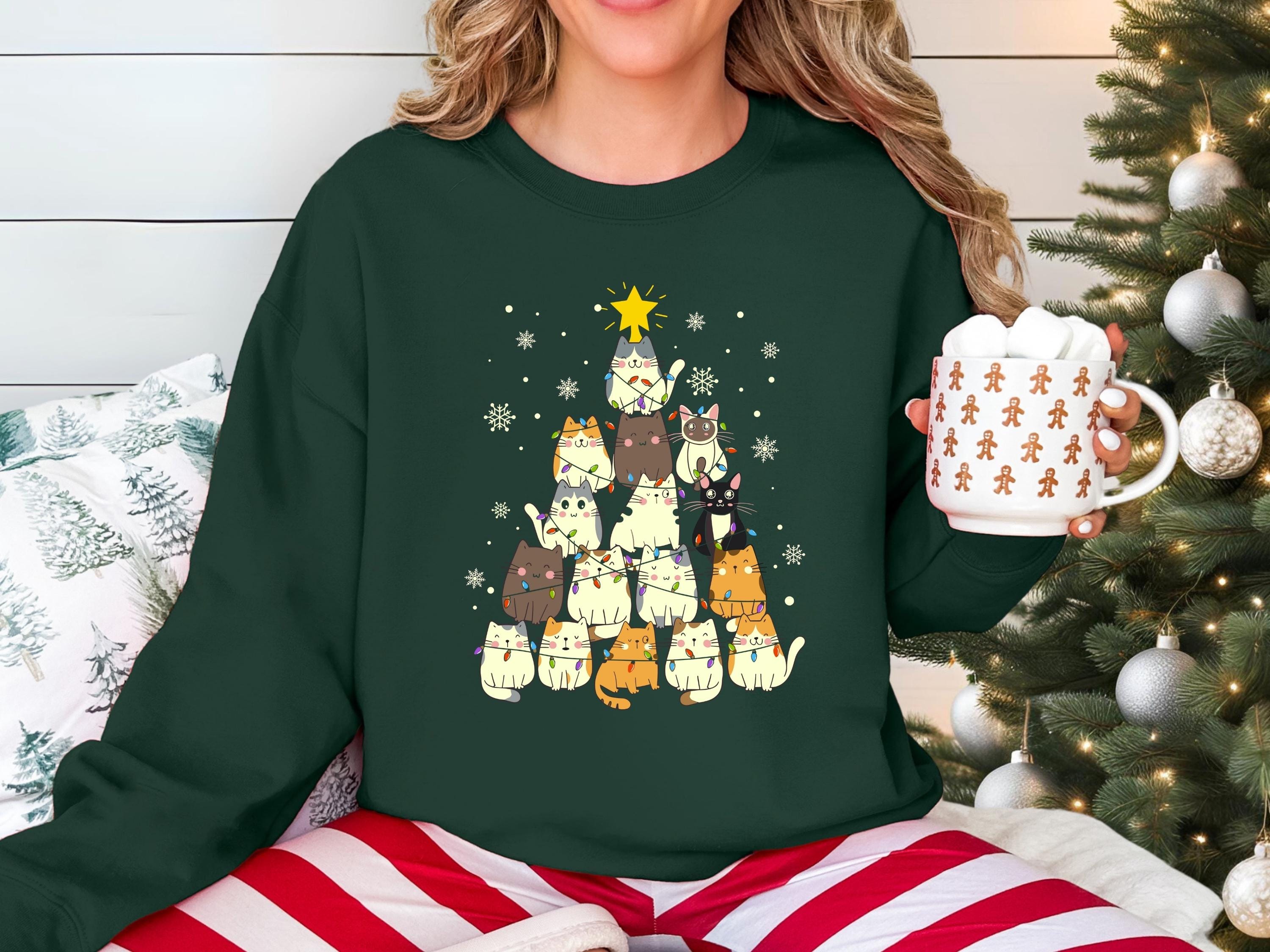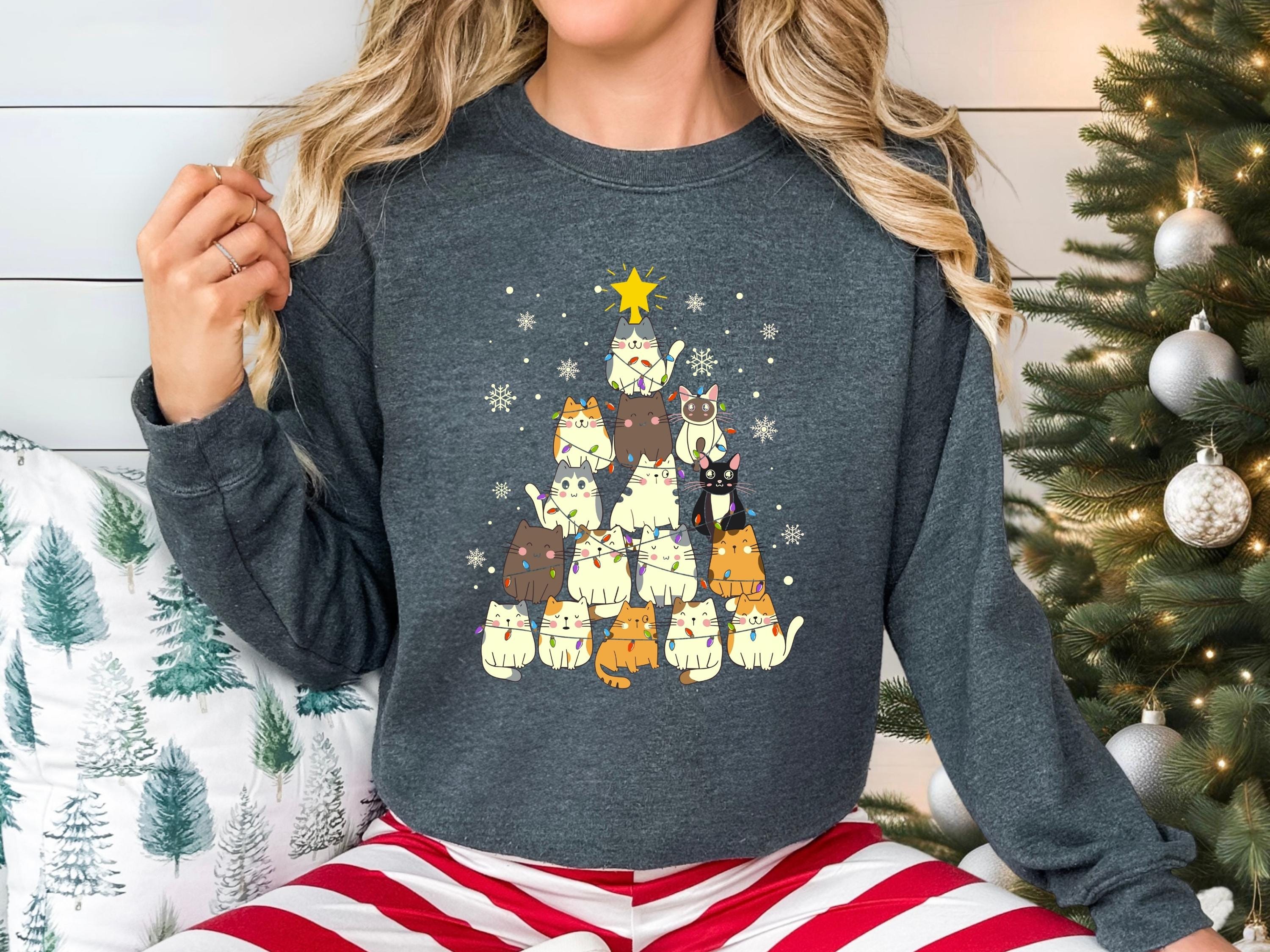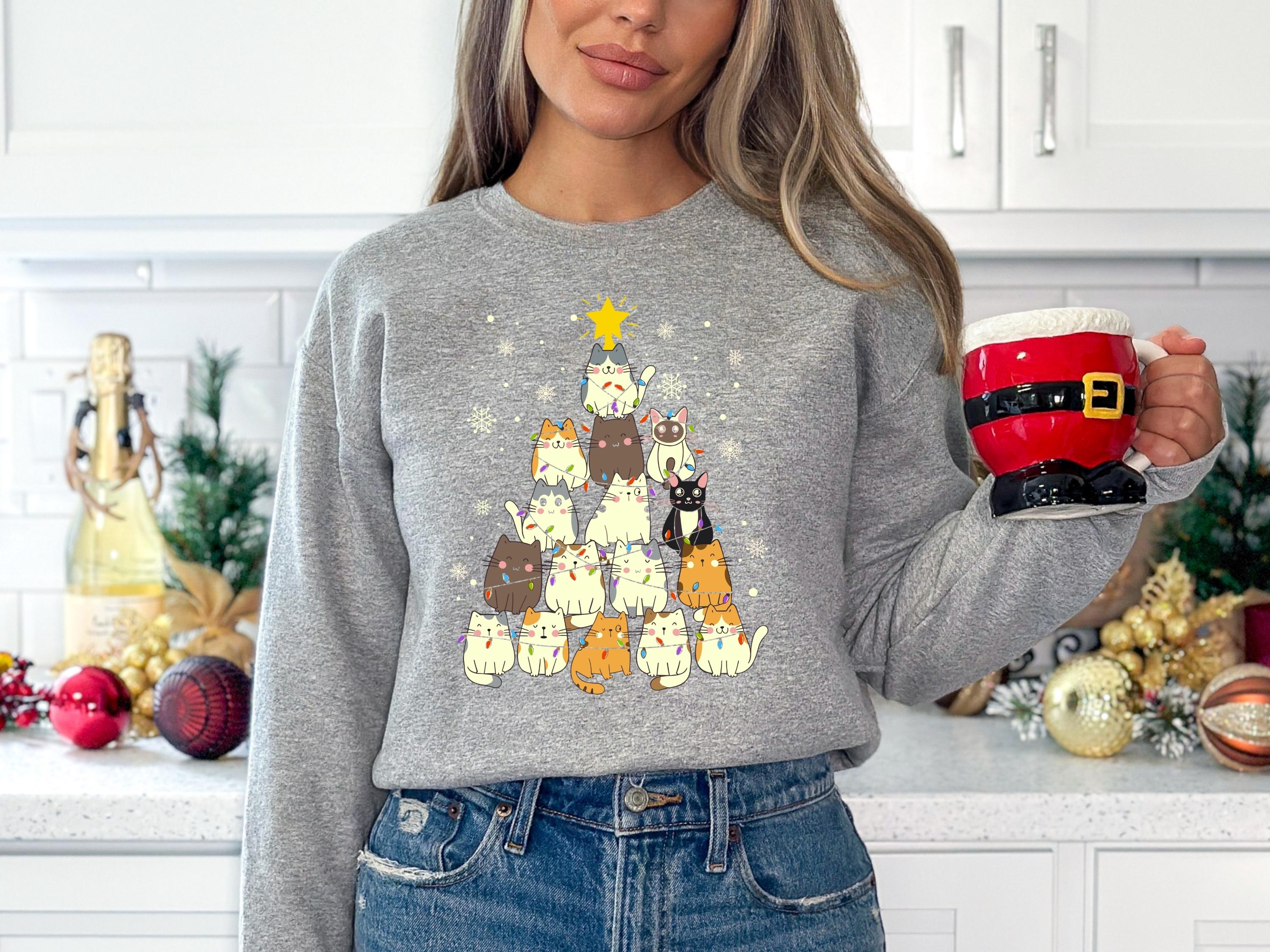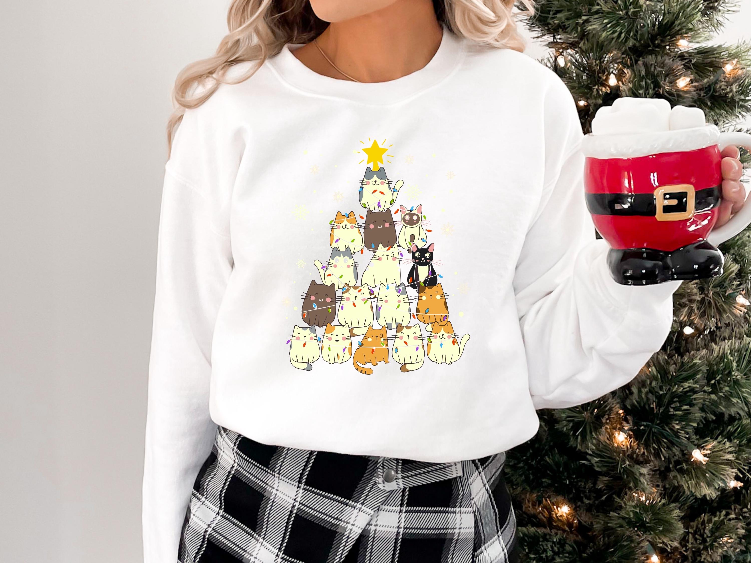 Christmas Cat Tree Sweatshirt, Christmas Cats Sweatshirt, Meow Christmas Sweatshirt, Cat Lover Gift, Holiday Crewneck, Cute Christmas
