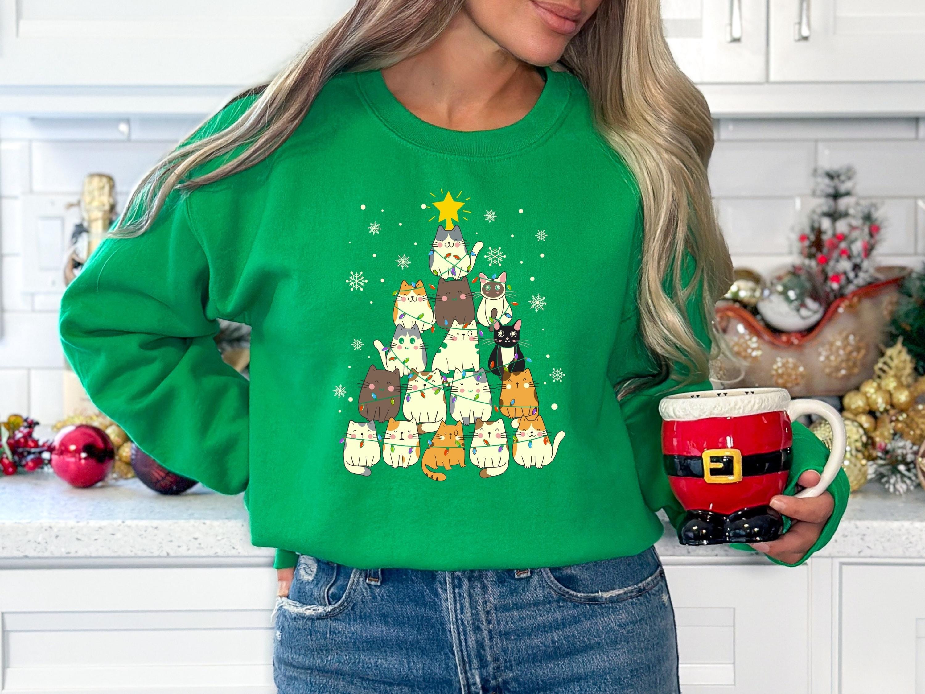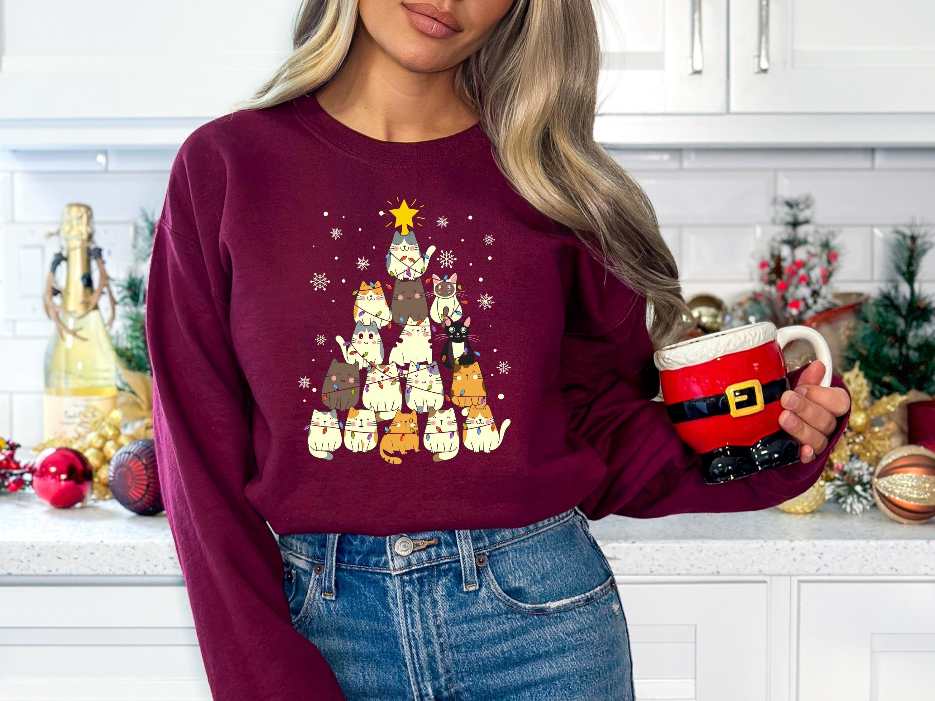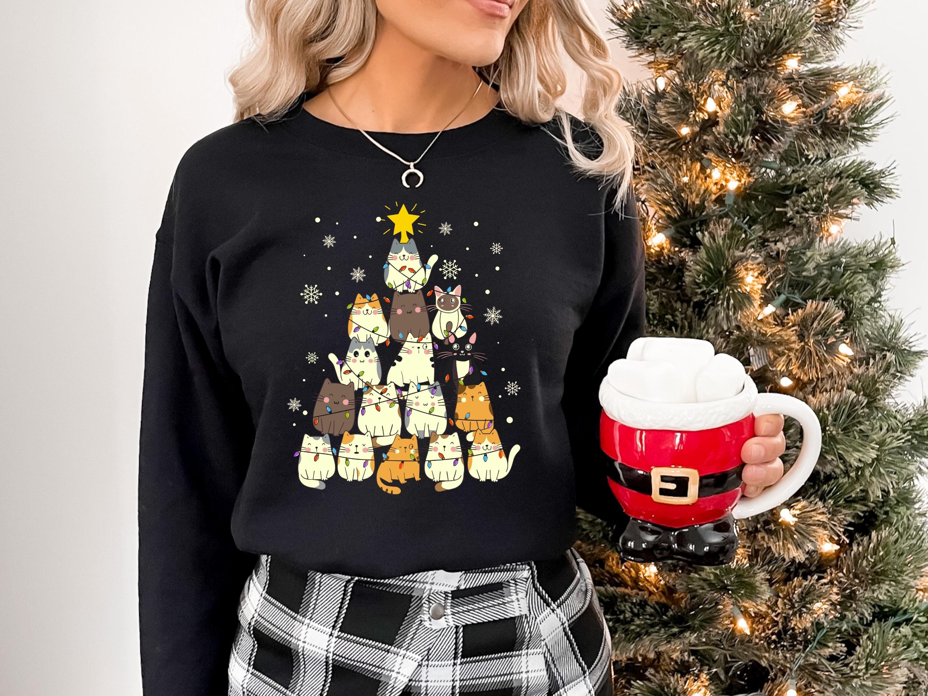 Christmas Cat Tree Sweatshirt, Christmas Cats Sweatshirt, Meow Christmas Sweatshirt, Cat Lover Gift, Holiday Crewneck, Cute Christmas
