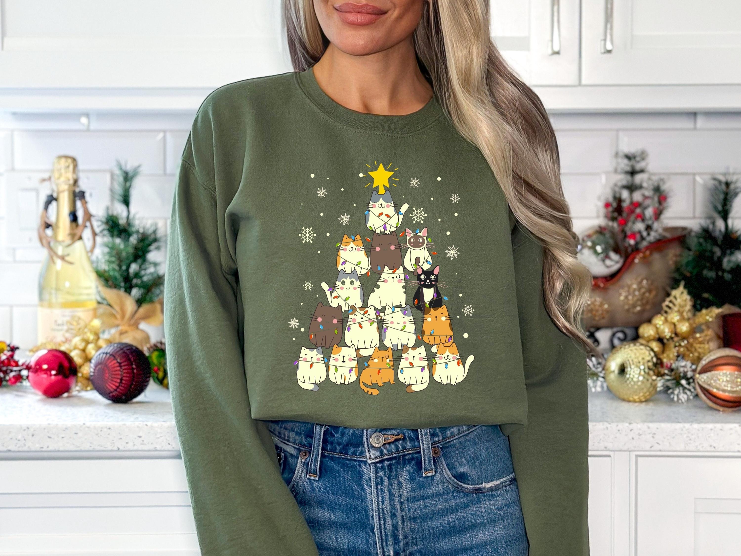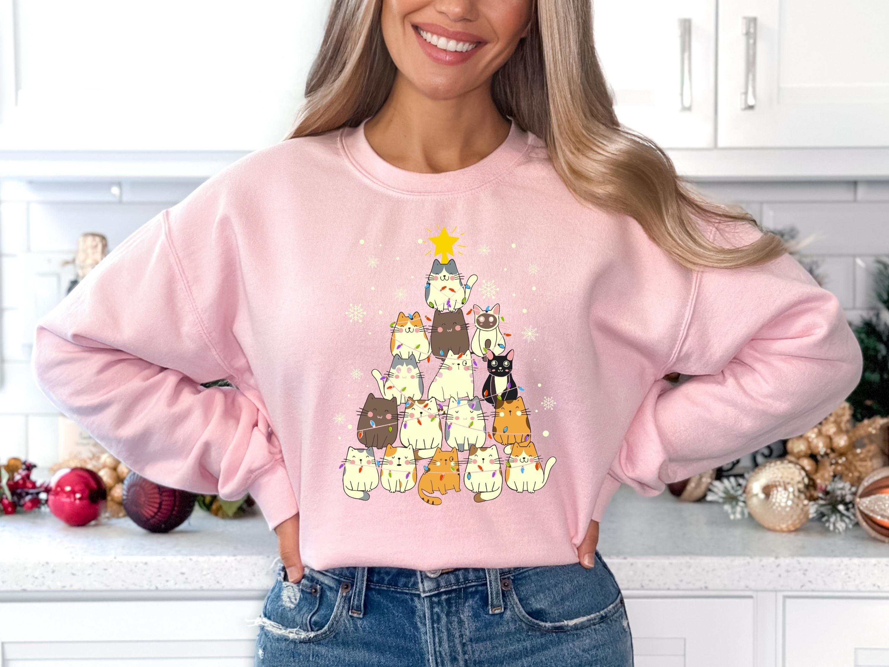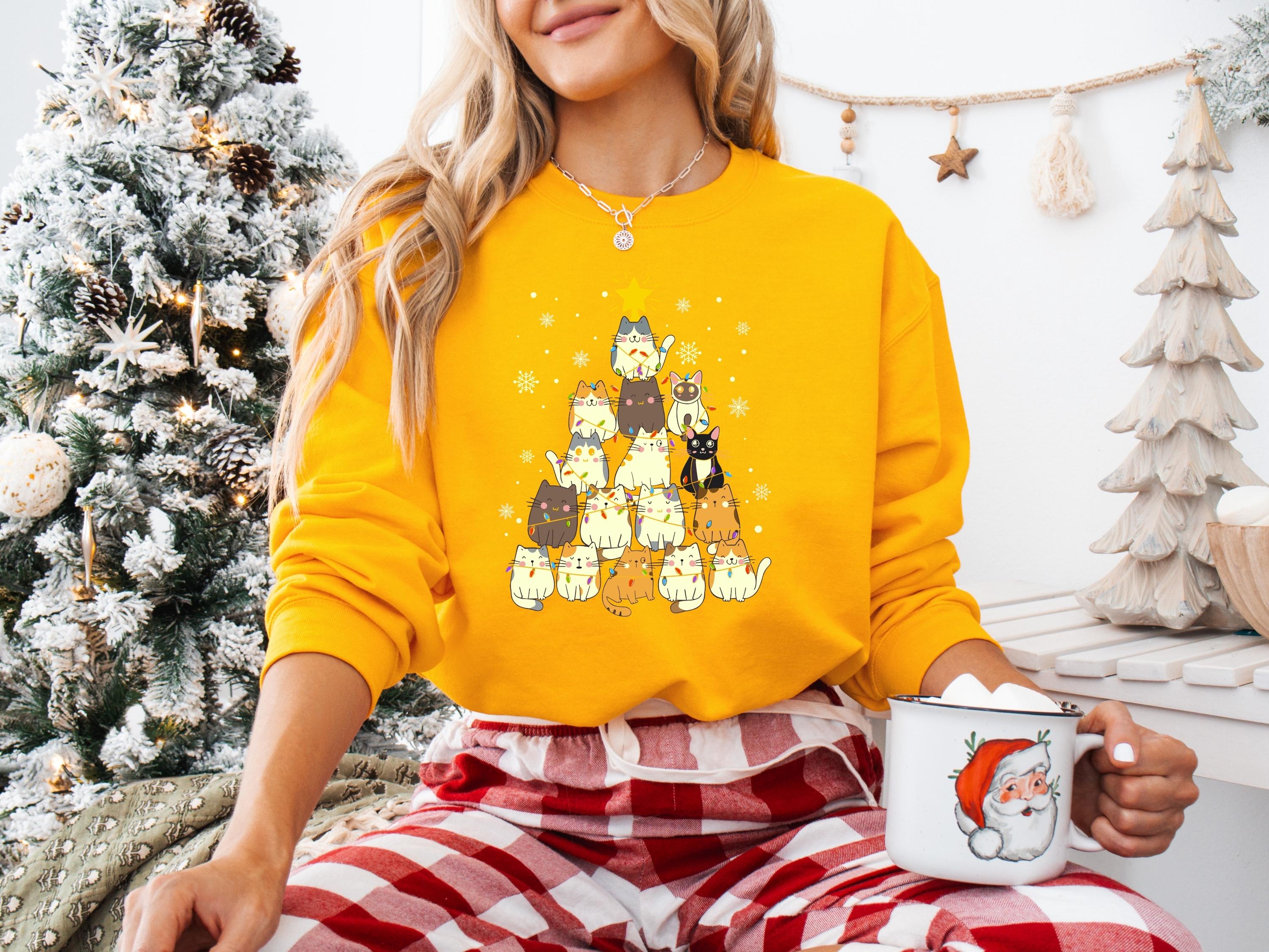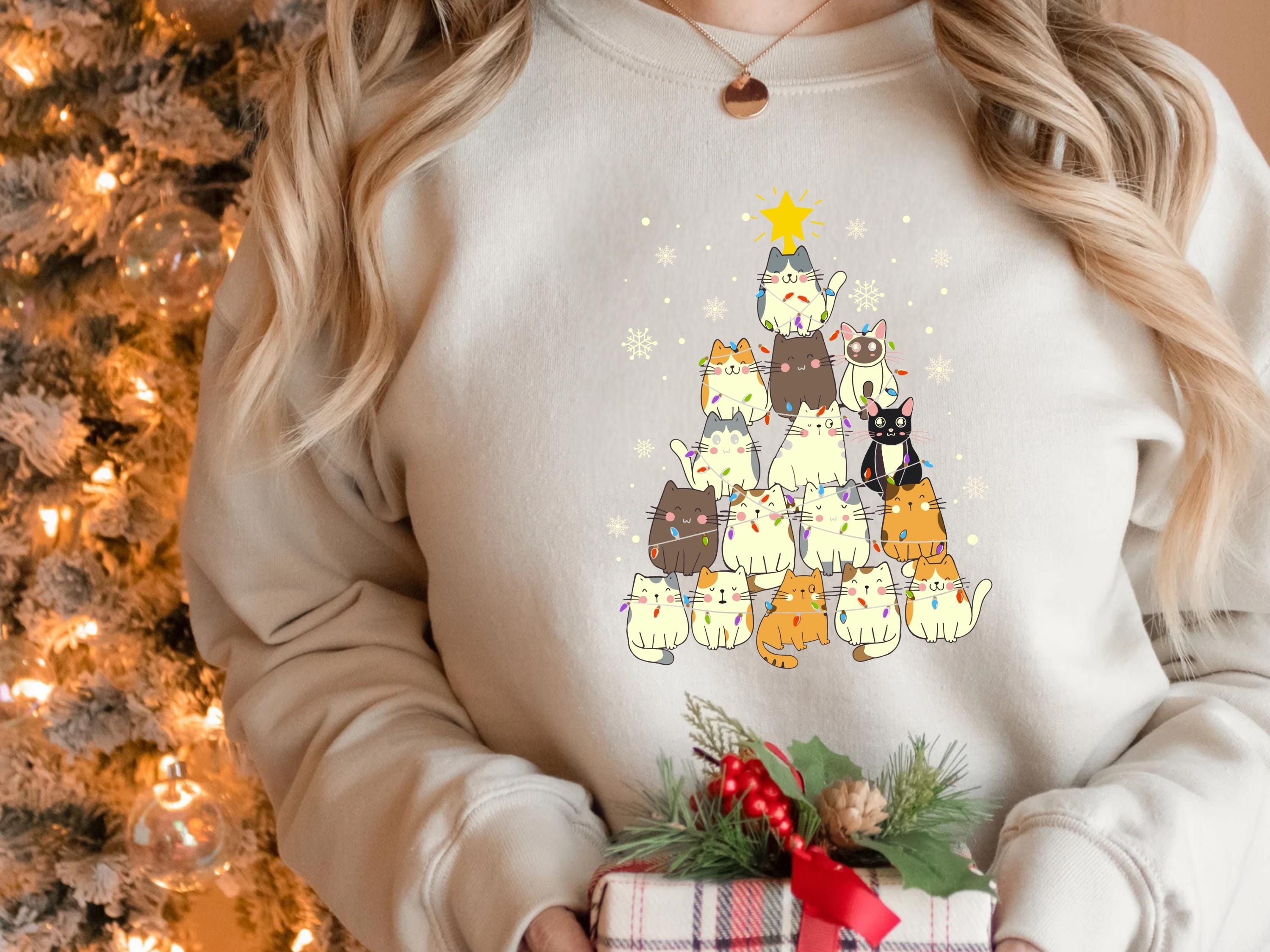 Christmas Cat Tree Sweatshirt, Christmas Cats Sweatshirt, Meow Christmas Sweatshirt, Cat Lover Gift, Holiday Crewneck, Cute Christmas