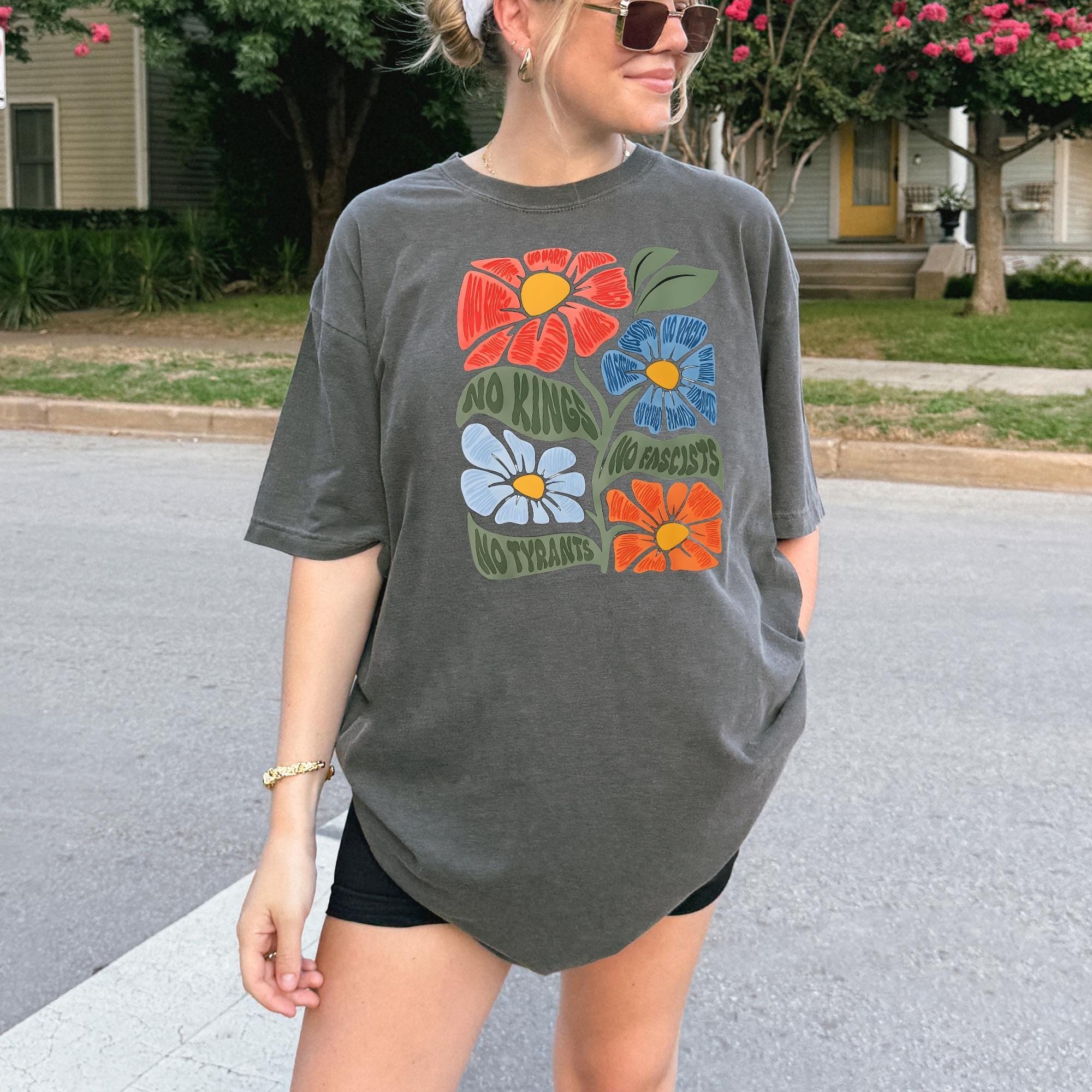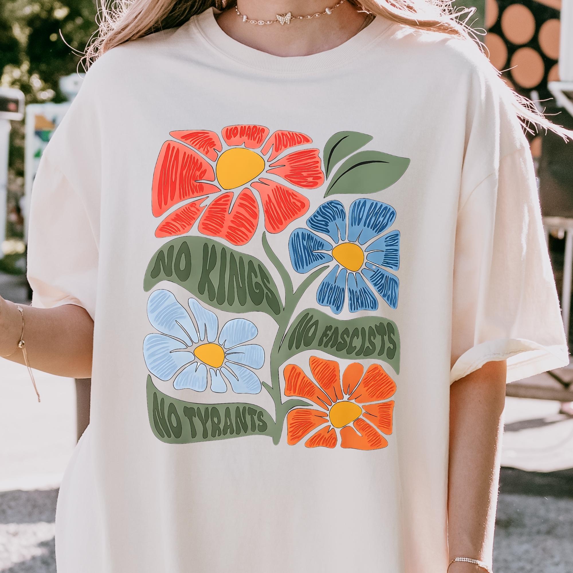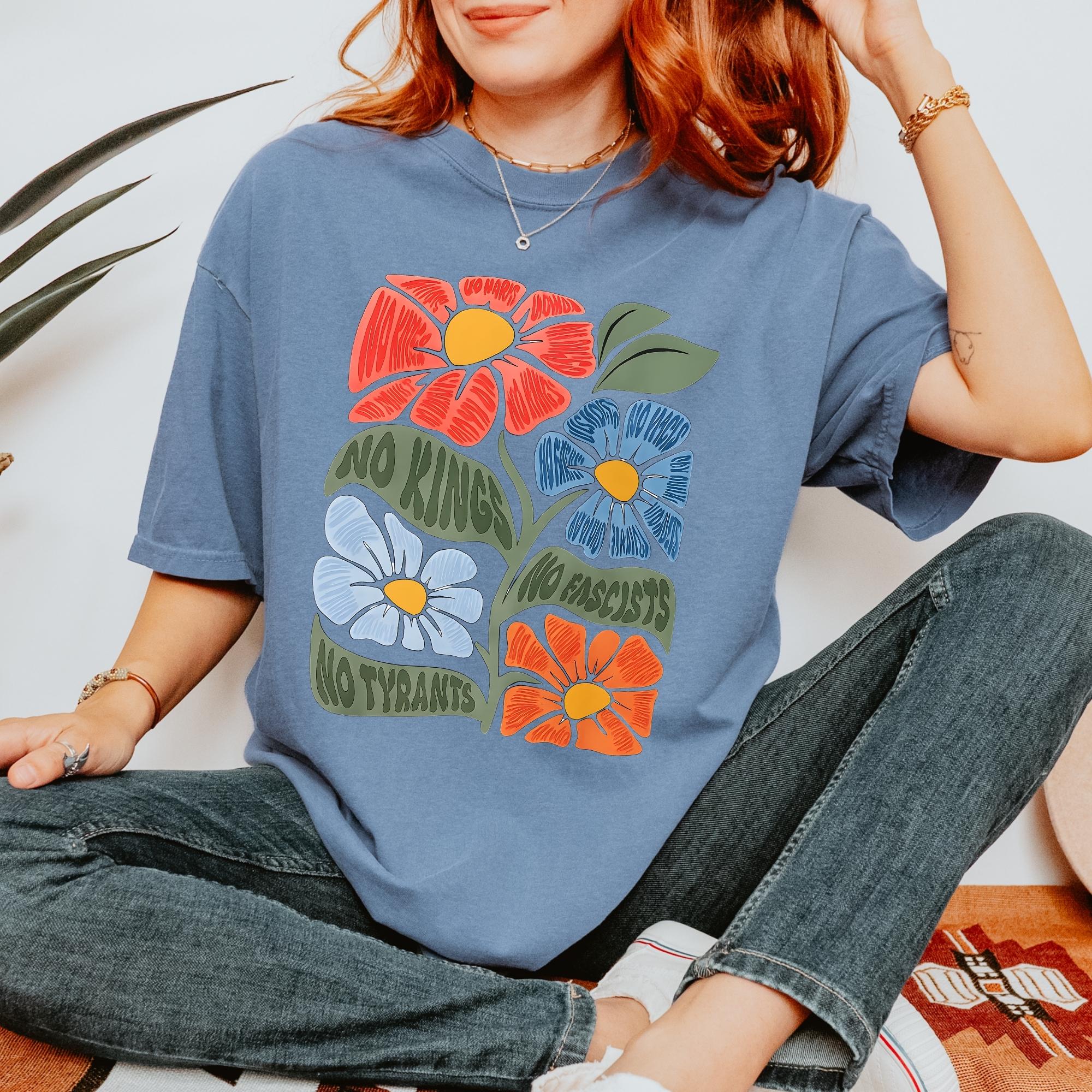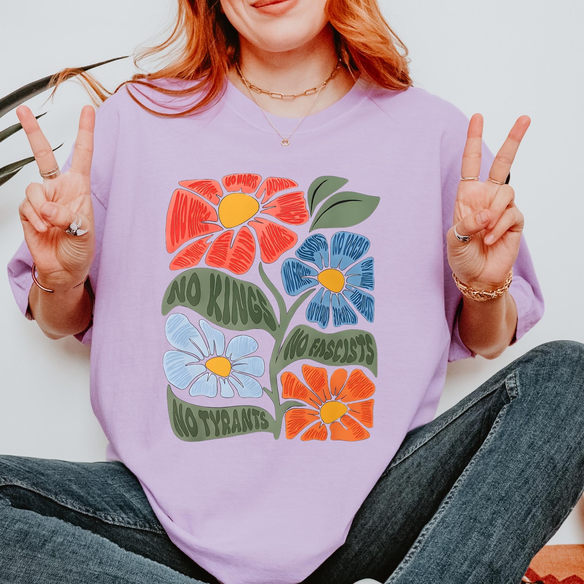 No Kings No Fascists Comfort Colors Shirt, Floral T-Shirt, Anti Trump Protest Tee, Colorful Resistance Sweatshirt, Feminist Political Shirt