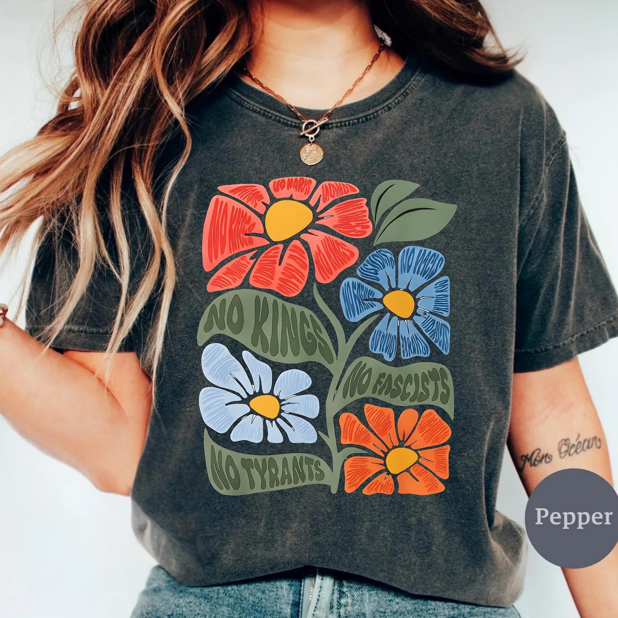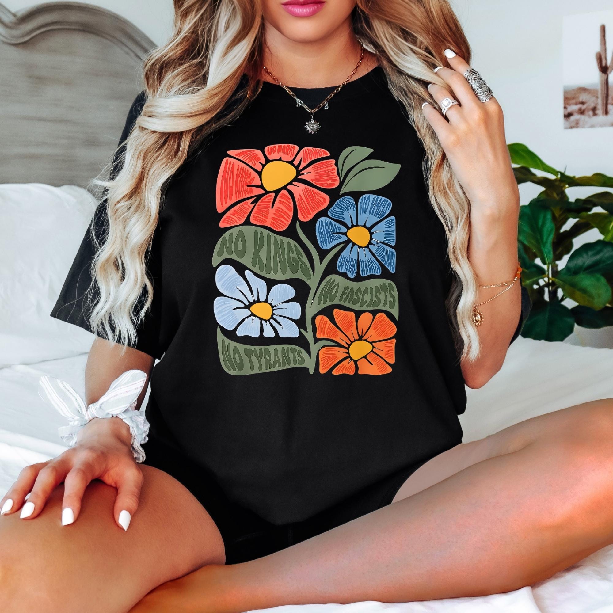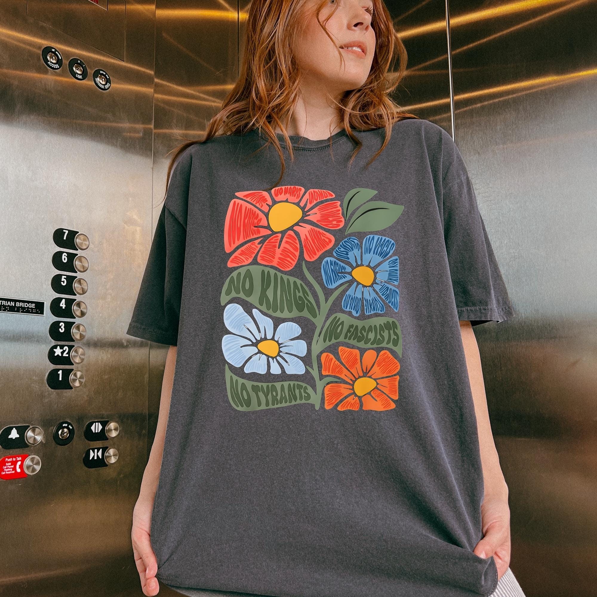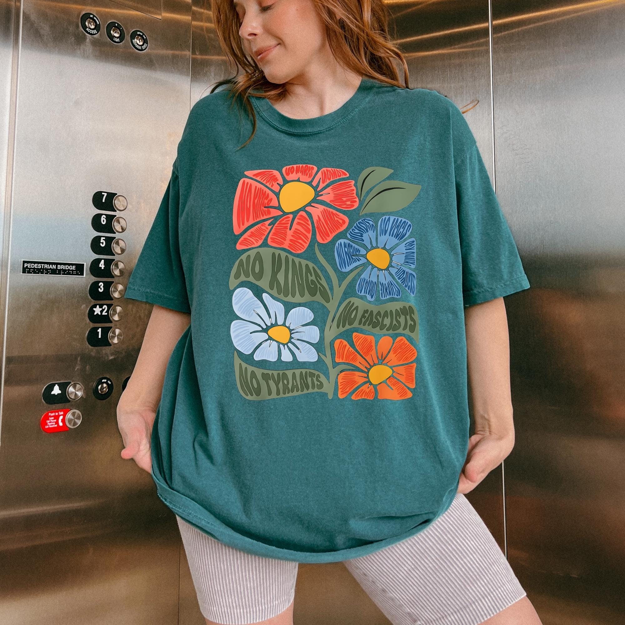 No Kings No Fascists Comfort Colors Shirt, Floral T-Shirt, Anti Trump Protest Tee, Colorful Resistance Sweatshirt, Feminist Political Shirt